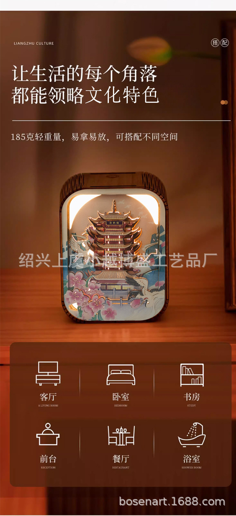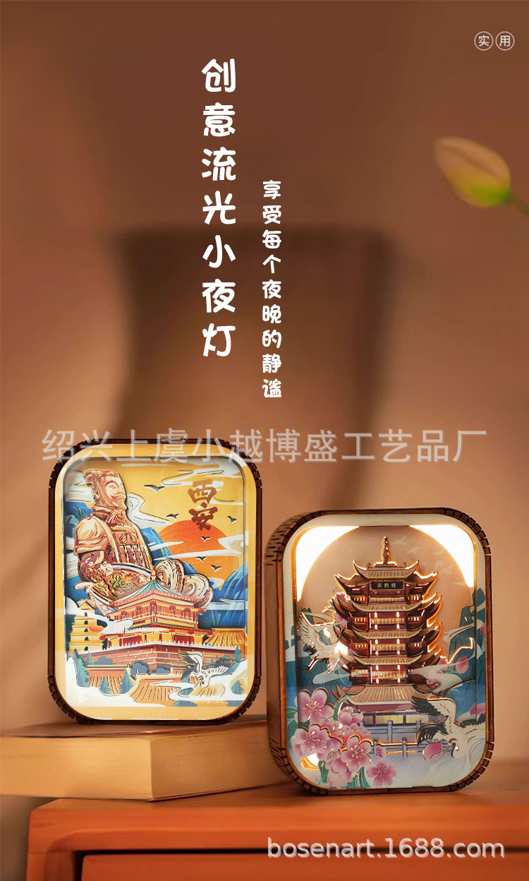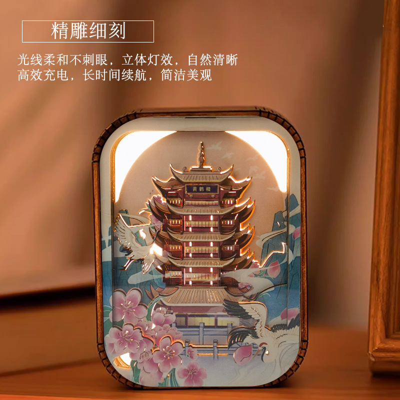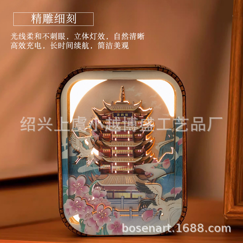 Цветные туристические достопримечательности Городская резьба по дереву Лампа Настольные украшения Атмосфера Ночные фонари в китайском стиле креативные архитектурные сувениры