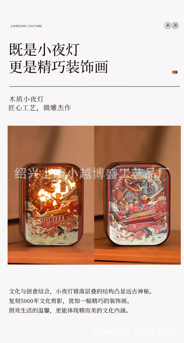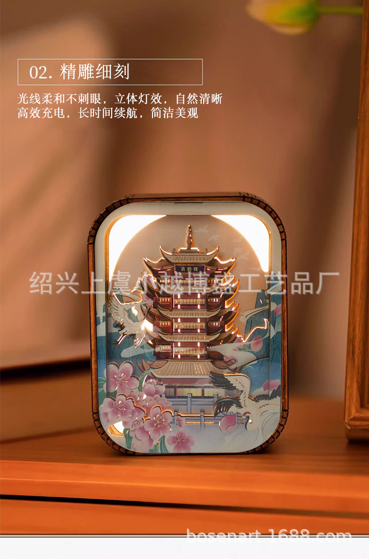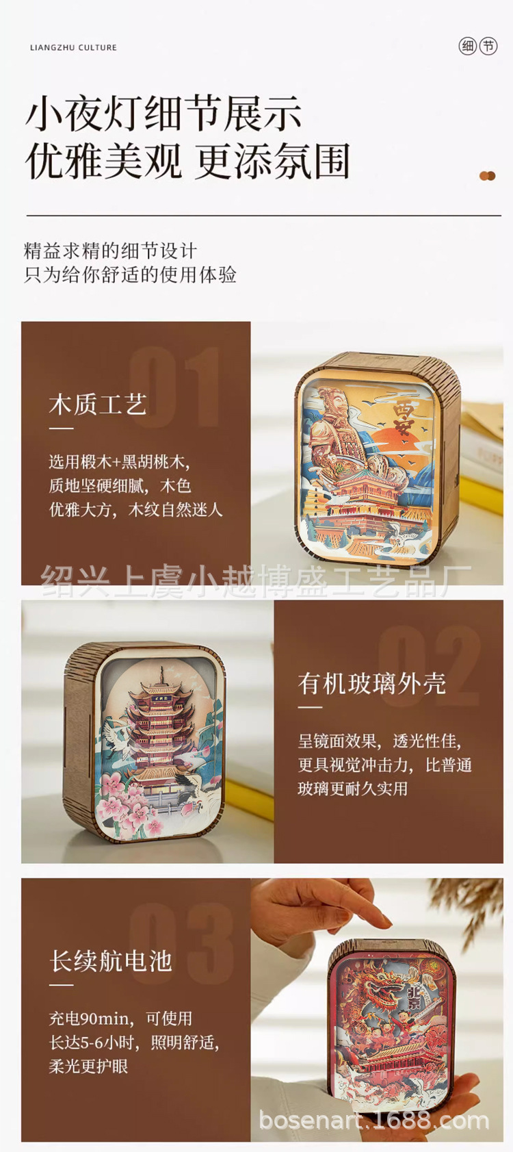 Цветные туристические достопримечательности Городская резьба по дереву Лампа Настольные украшения Атмосфера Ночные фонари в китайском стиле креативные архитектурные сувениры