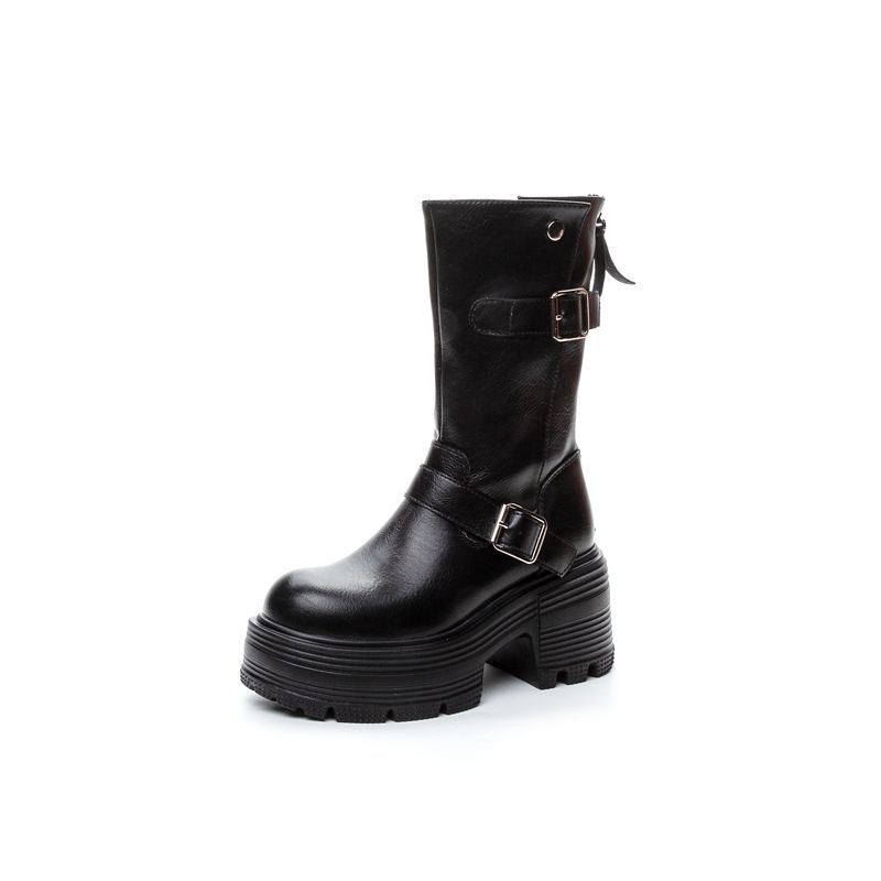 Осень и зима на сверхвысоком каблуке с толстым дном, сверхлегкий средний трубочкой, ретро рыцарь сапоги тонкие ноги длинные, дикие мотоциклетные прямые сапоги