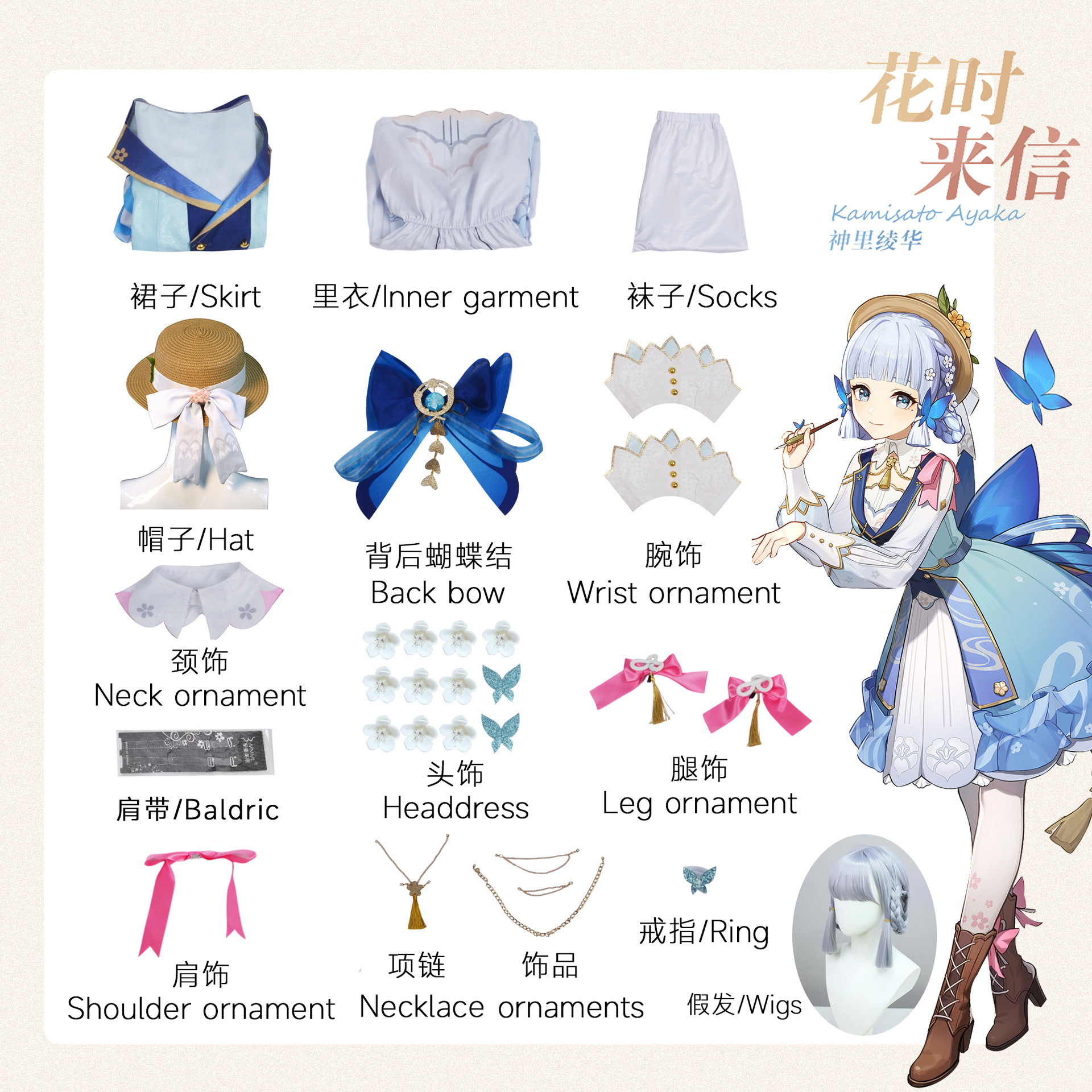 Давайте поговорим о одежде + аксессуарах; Давайте поговорим о своем парике, когда проводите время; Давайте поговорим об обуви; Письмо время от времени + одежда + аксессуары + парик; Одежда с буквами времени + аксессуары + парик + туфли с цветочным надписью времени