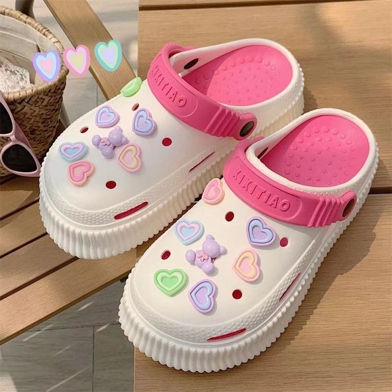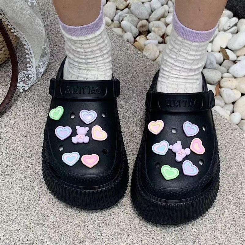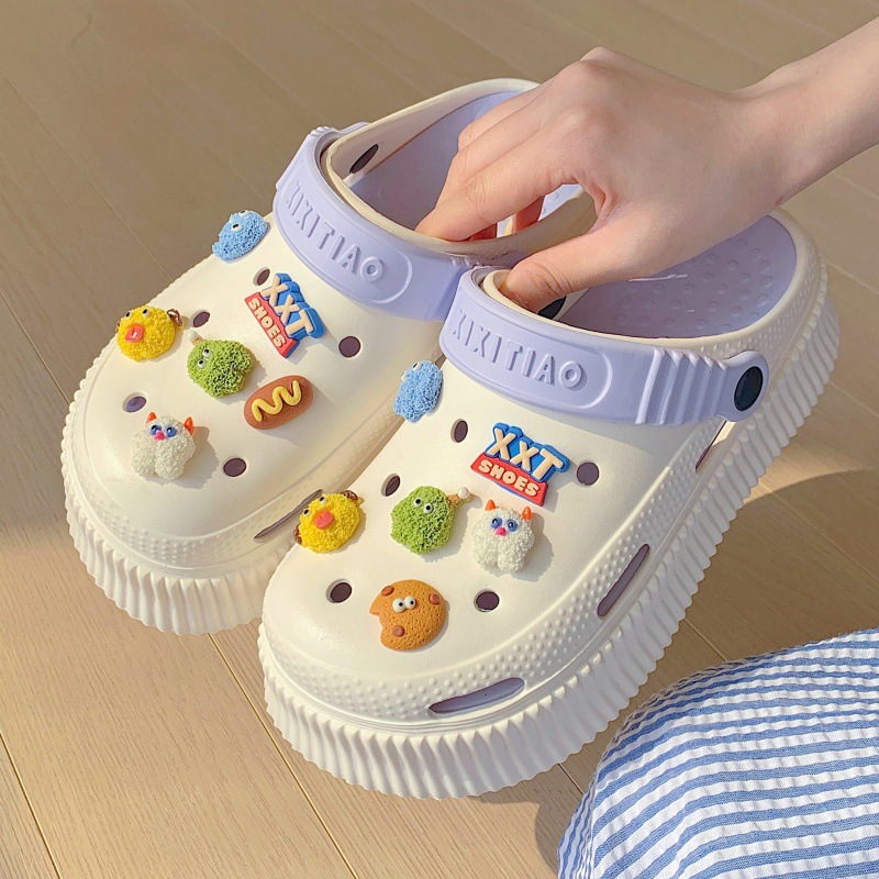 Мода стерео мультфильм мягкая подошва Баотоу дырки толстая подошва увеличена на открытом воздухе Леди летние пляжные сандалии