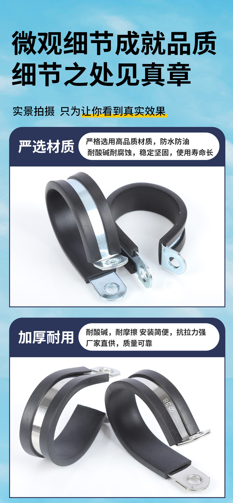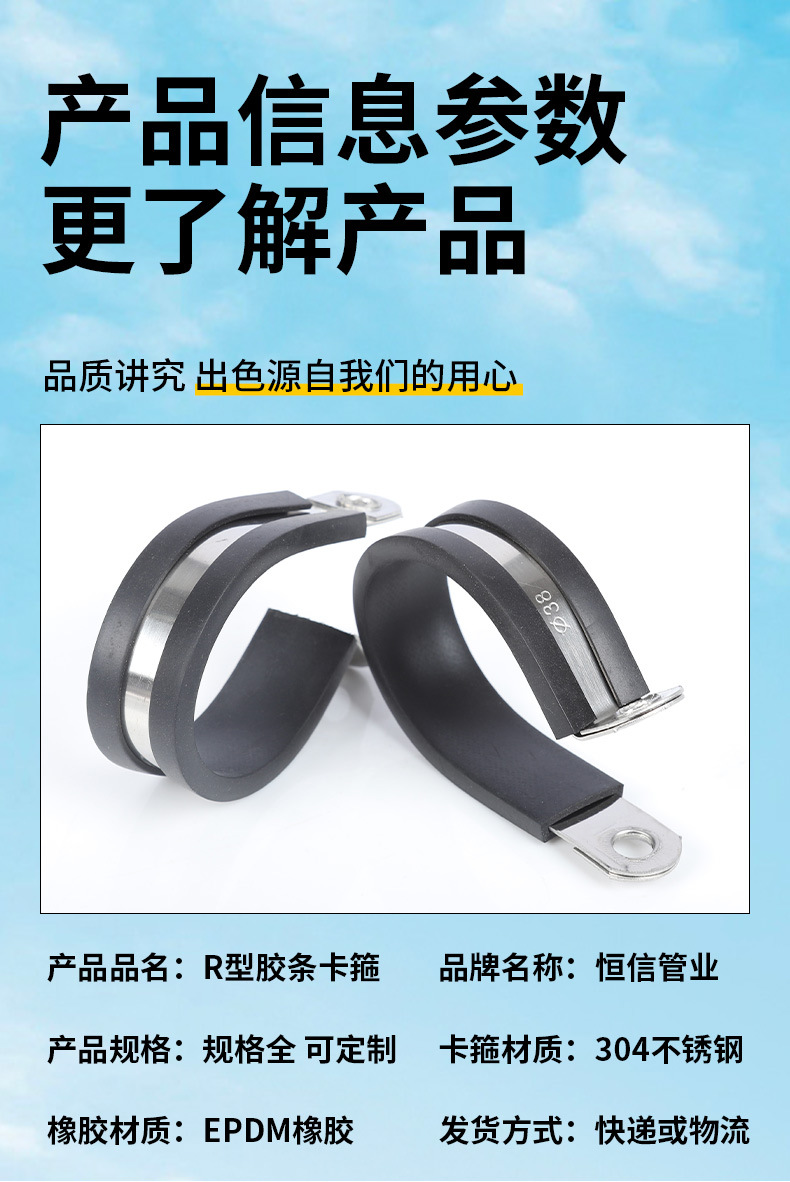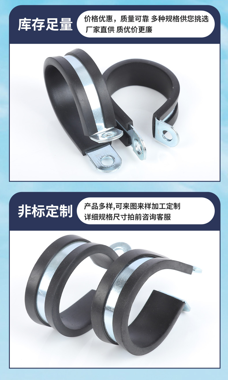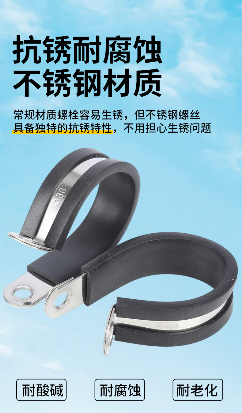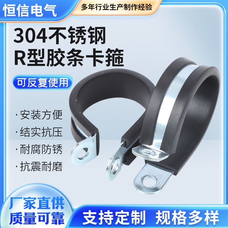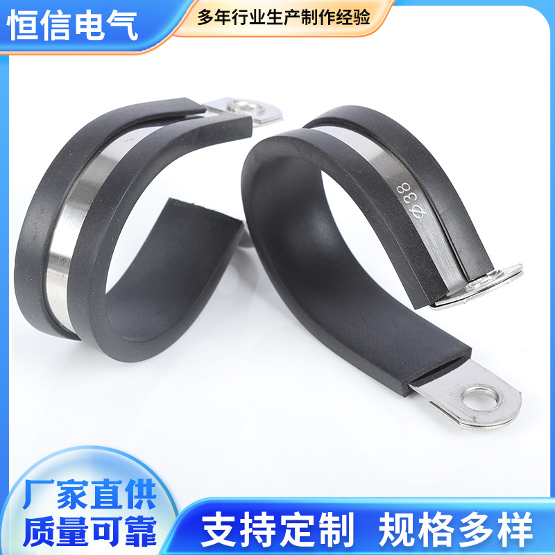 Резиновый обруч, амортизирующая резиновая полоса, хомут для труб, оптовая продажа, хомут для резиновой ленты, хомут для труб из нержавеющей стали, R-образный хомут для труб