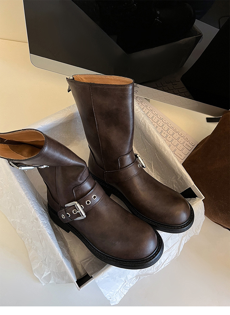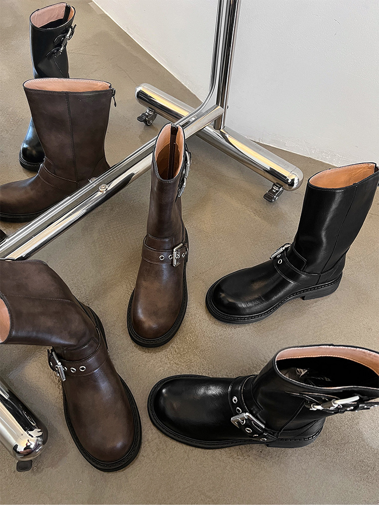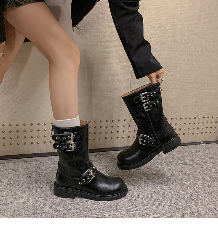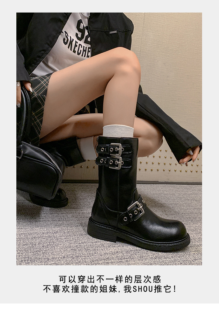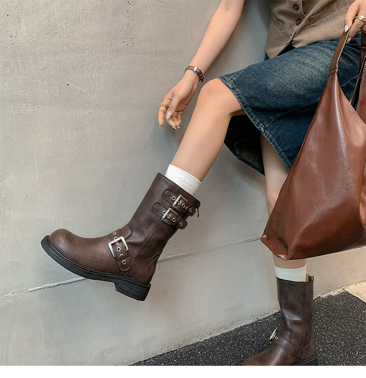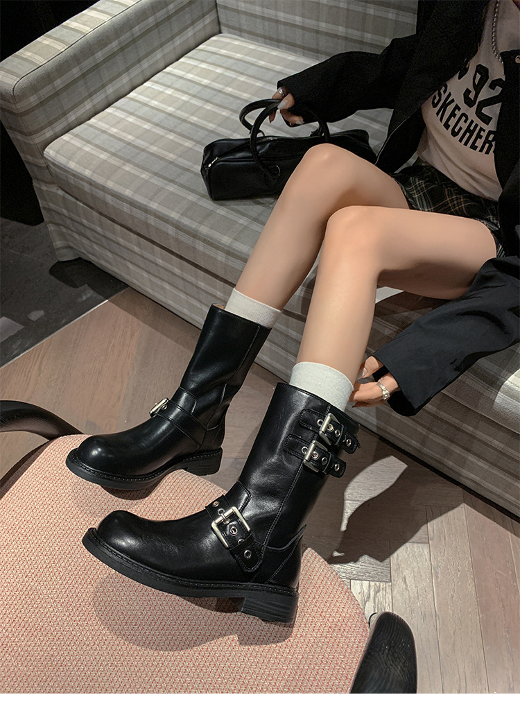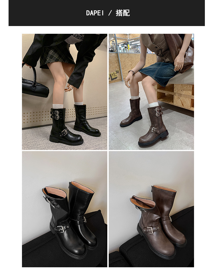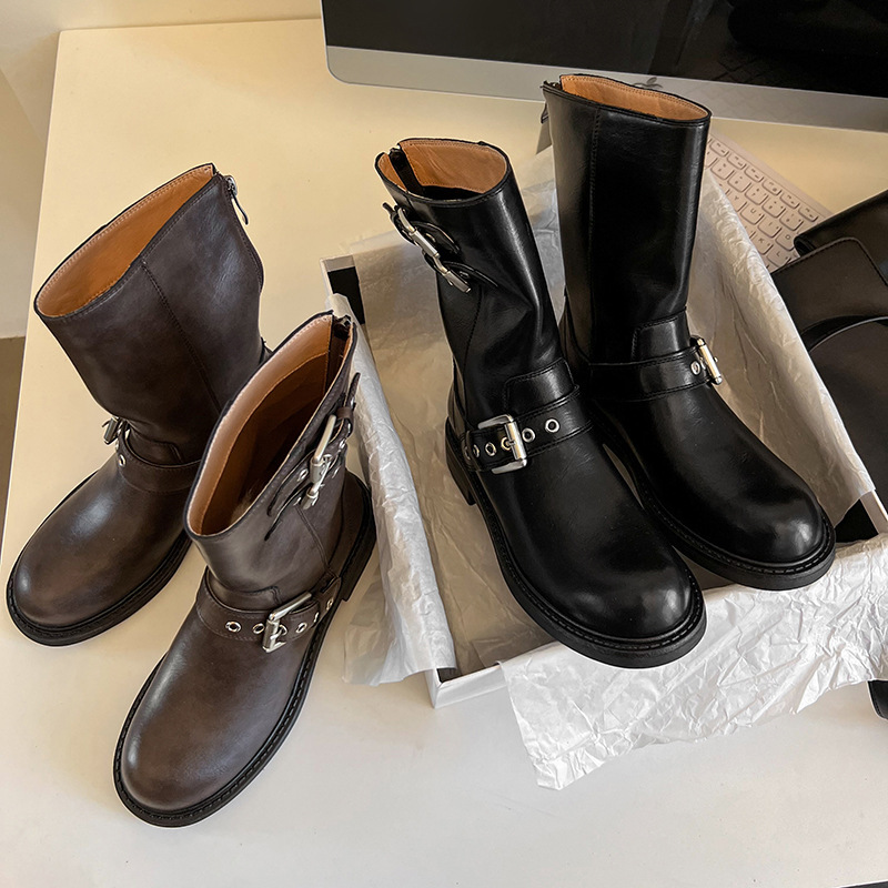 Короткие сапоги женские сапоги осенние и зимние новые пряжки мотоциклетные сапоги
