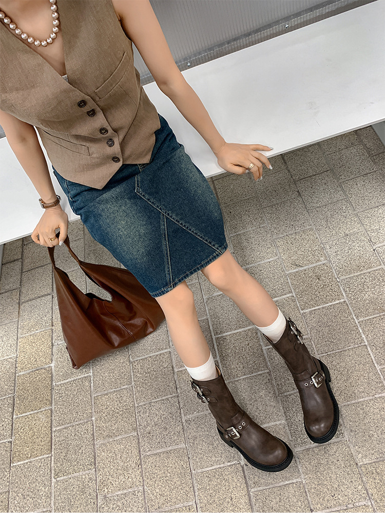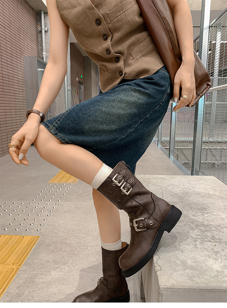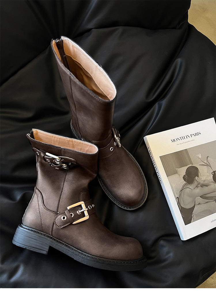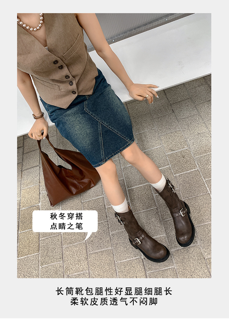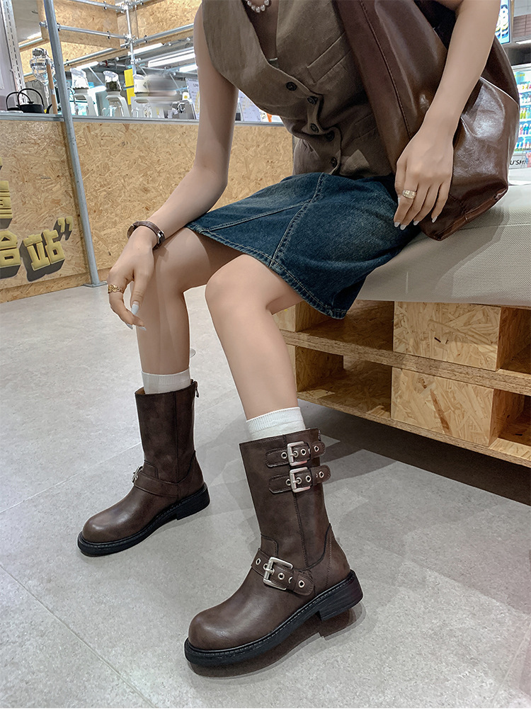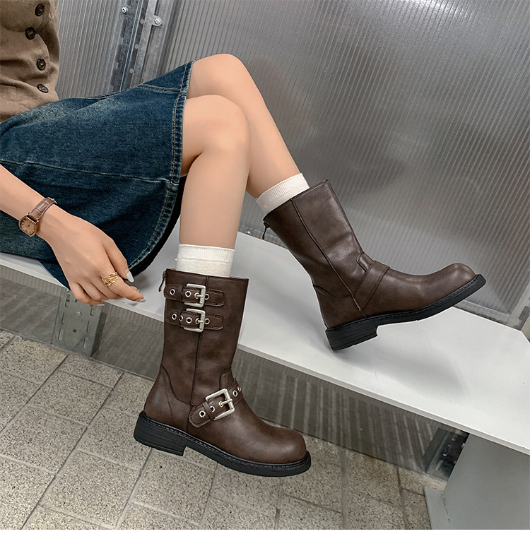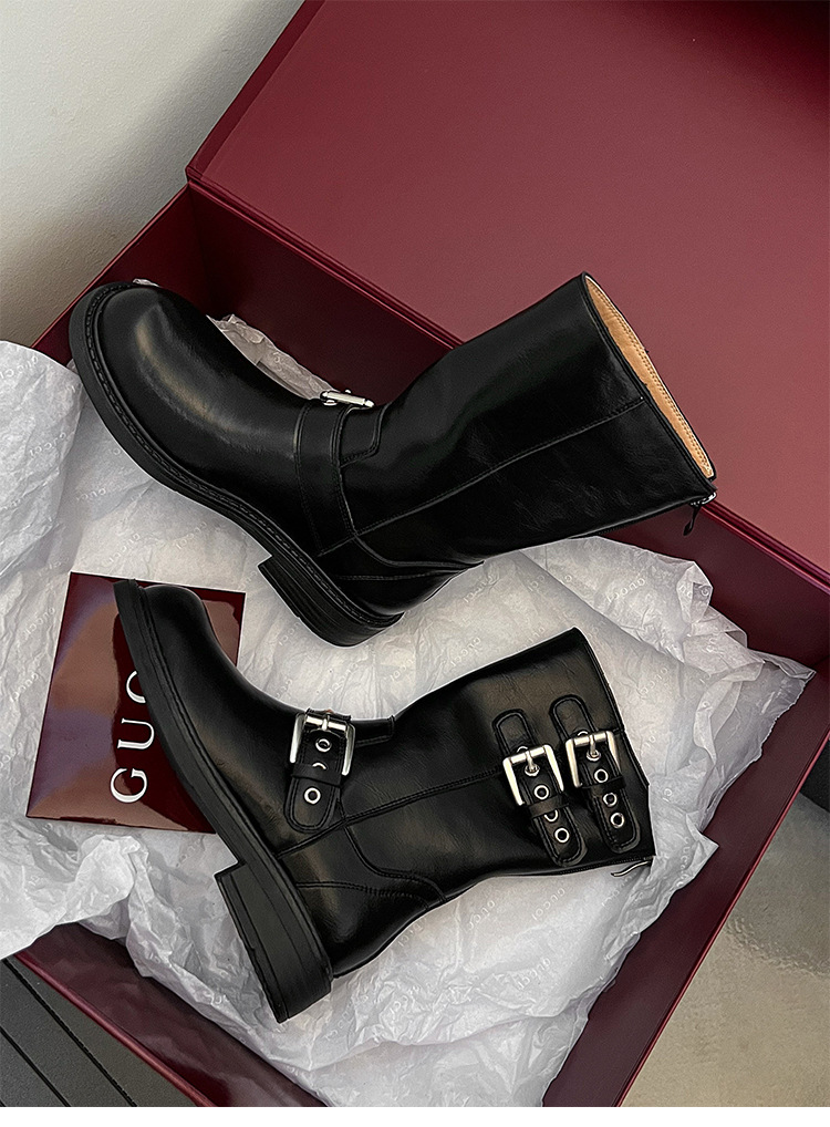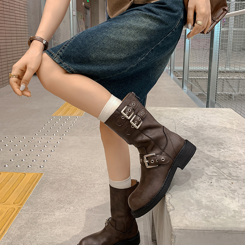Короткие сапоги женские сапоги осенние и зимние новые пряжки мотоциклетные сапоги