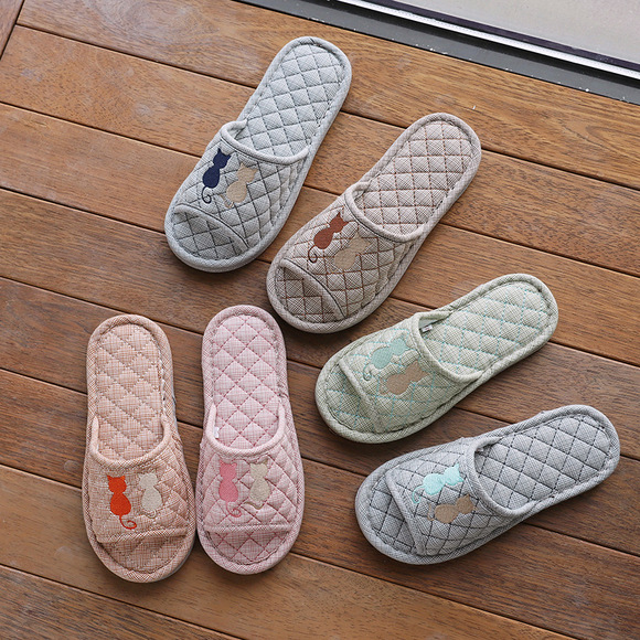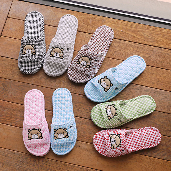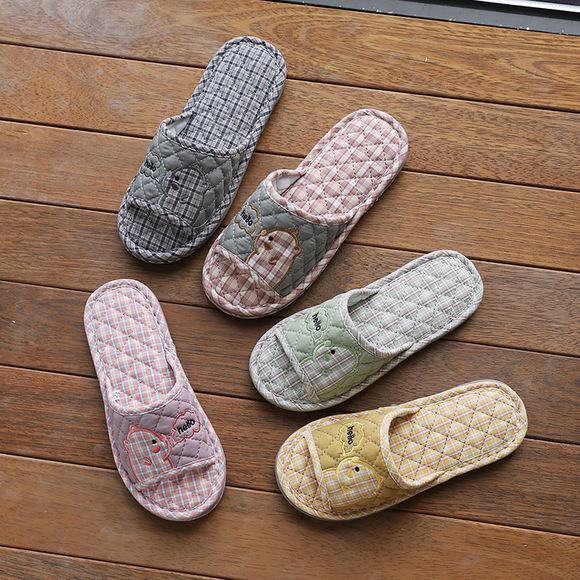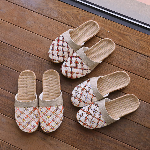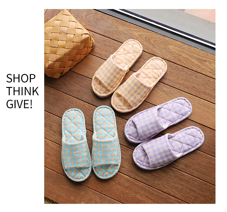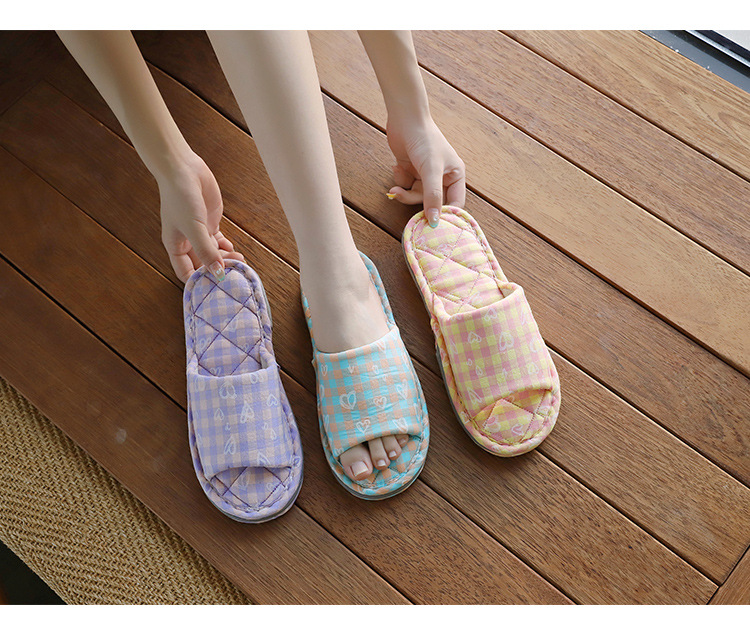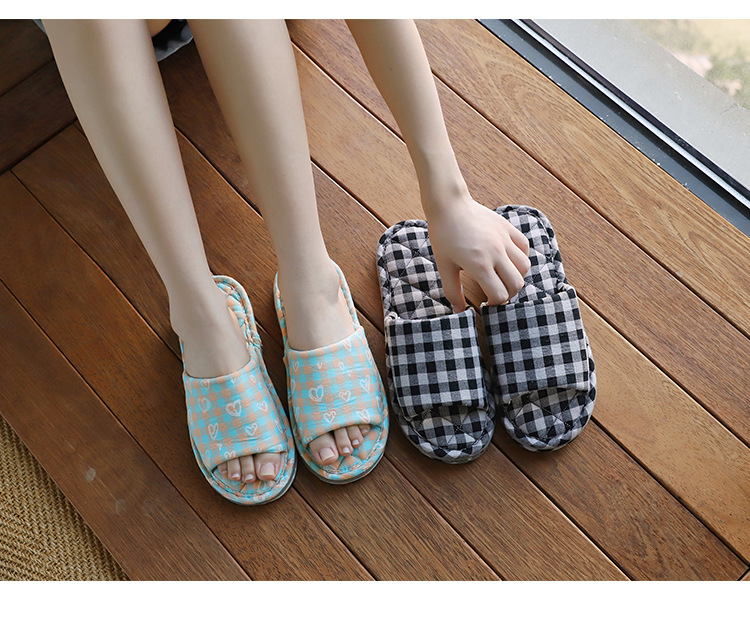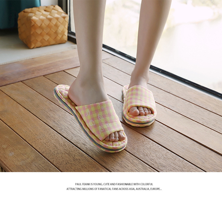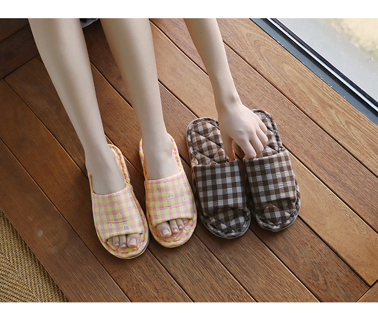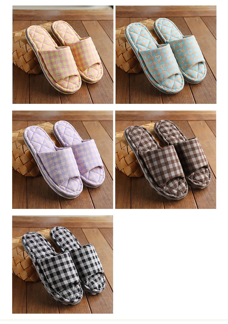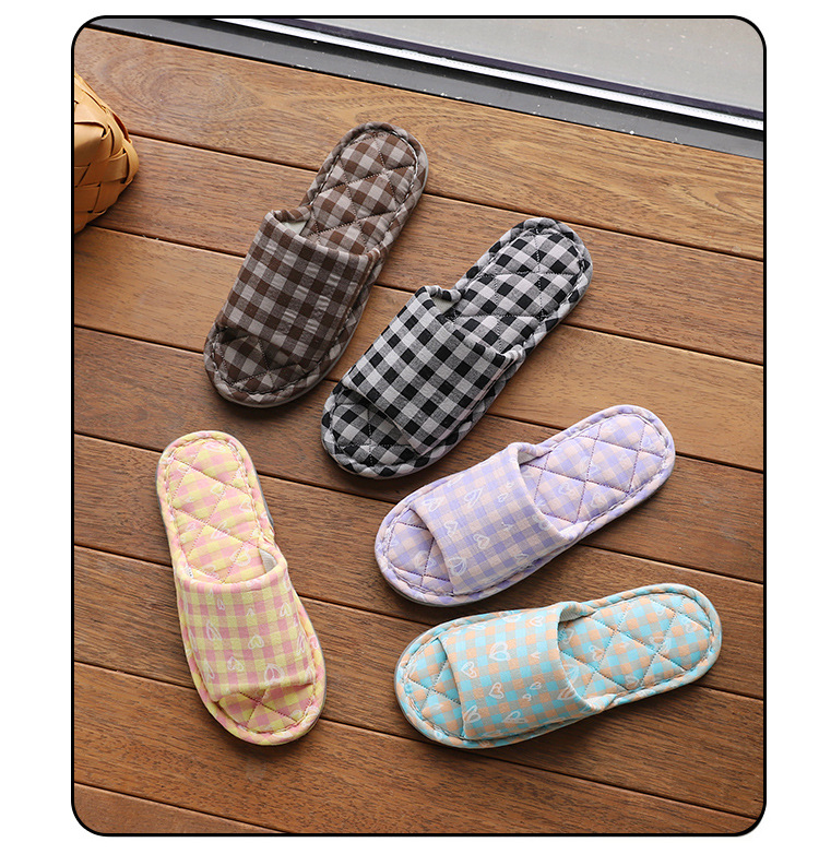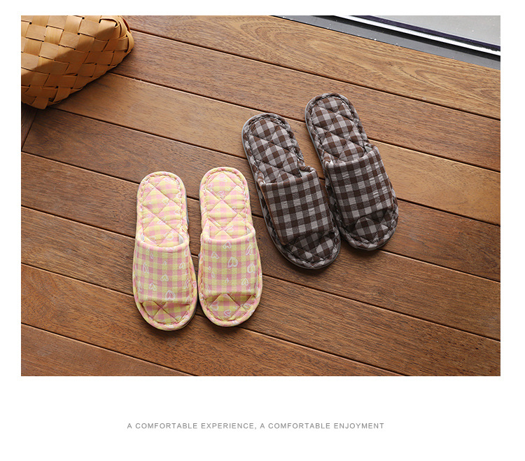 Новая пара в клетку хлопчатобумажные тапочки для дома женский дом нескользящая ткань на полу тапочки осенью и зимой