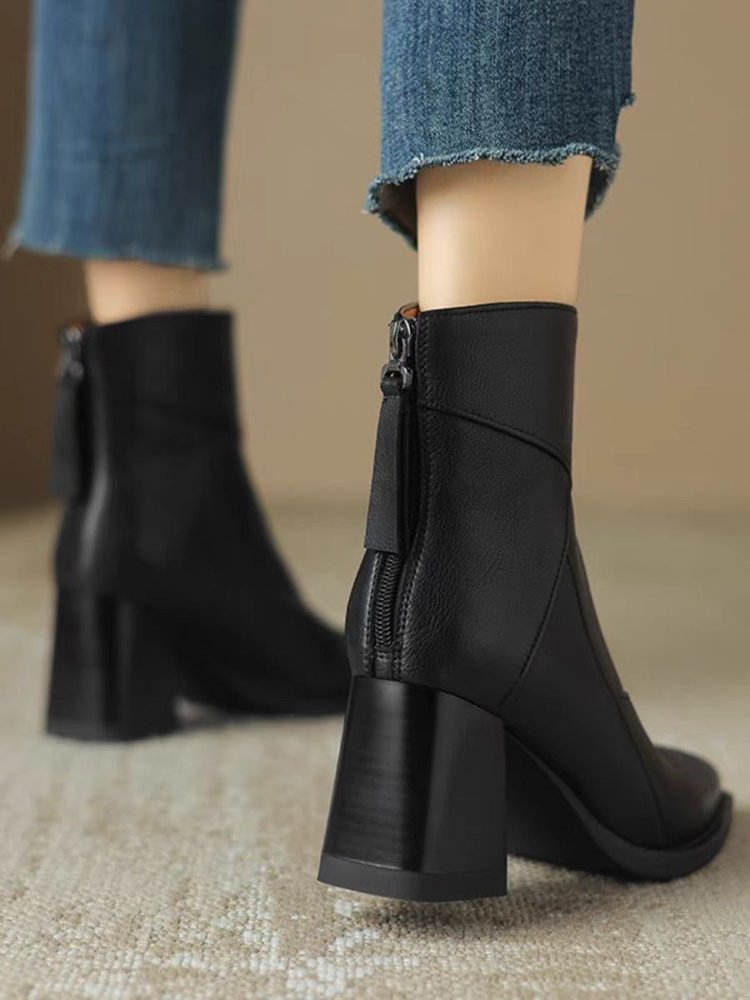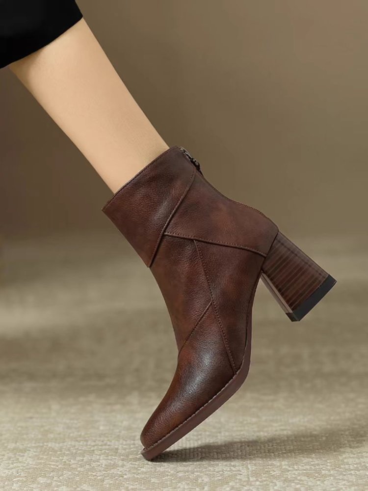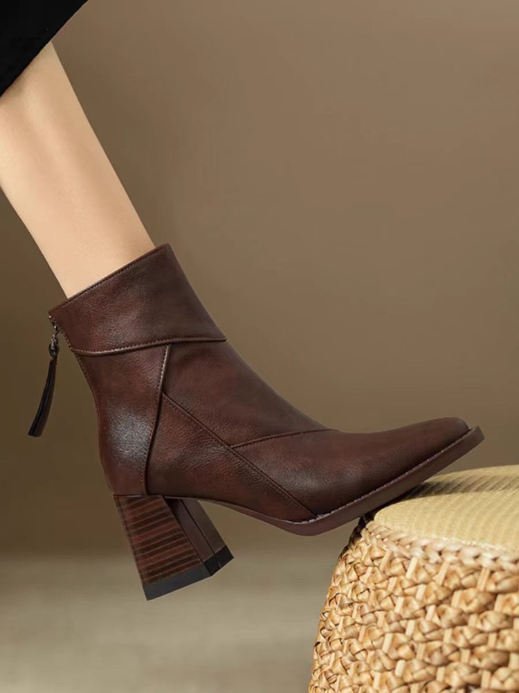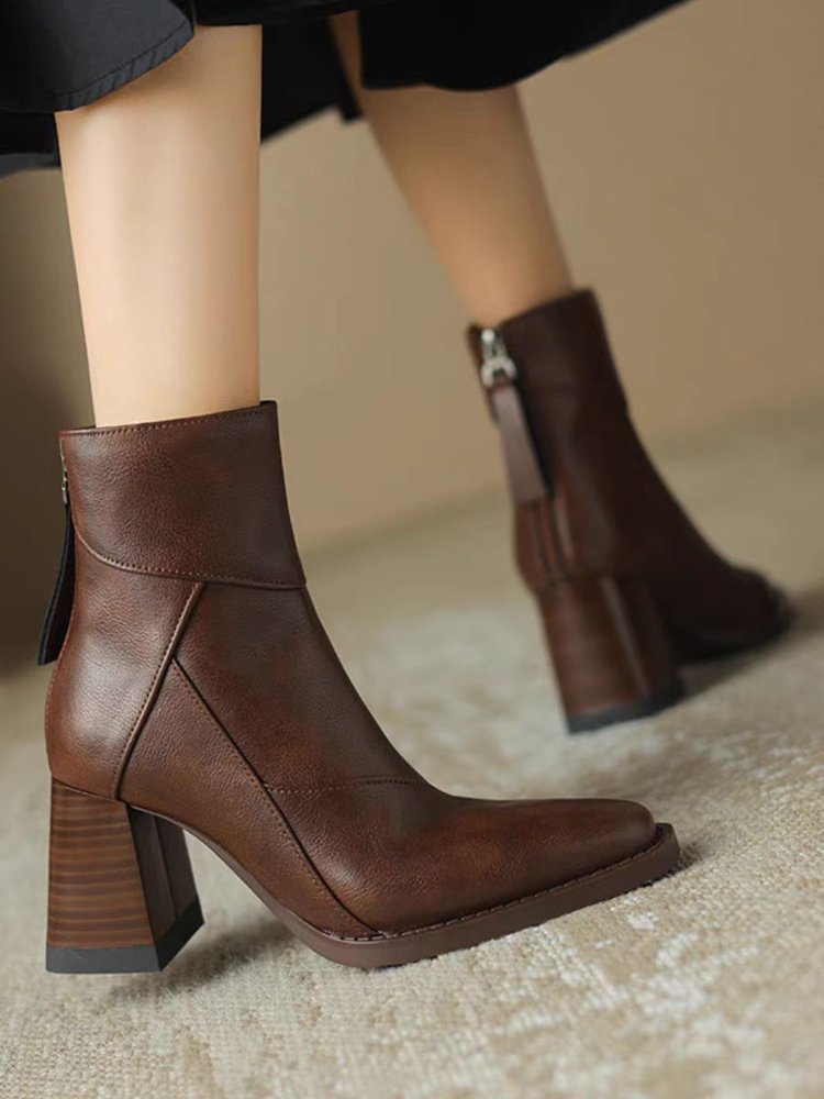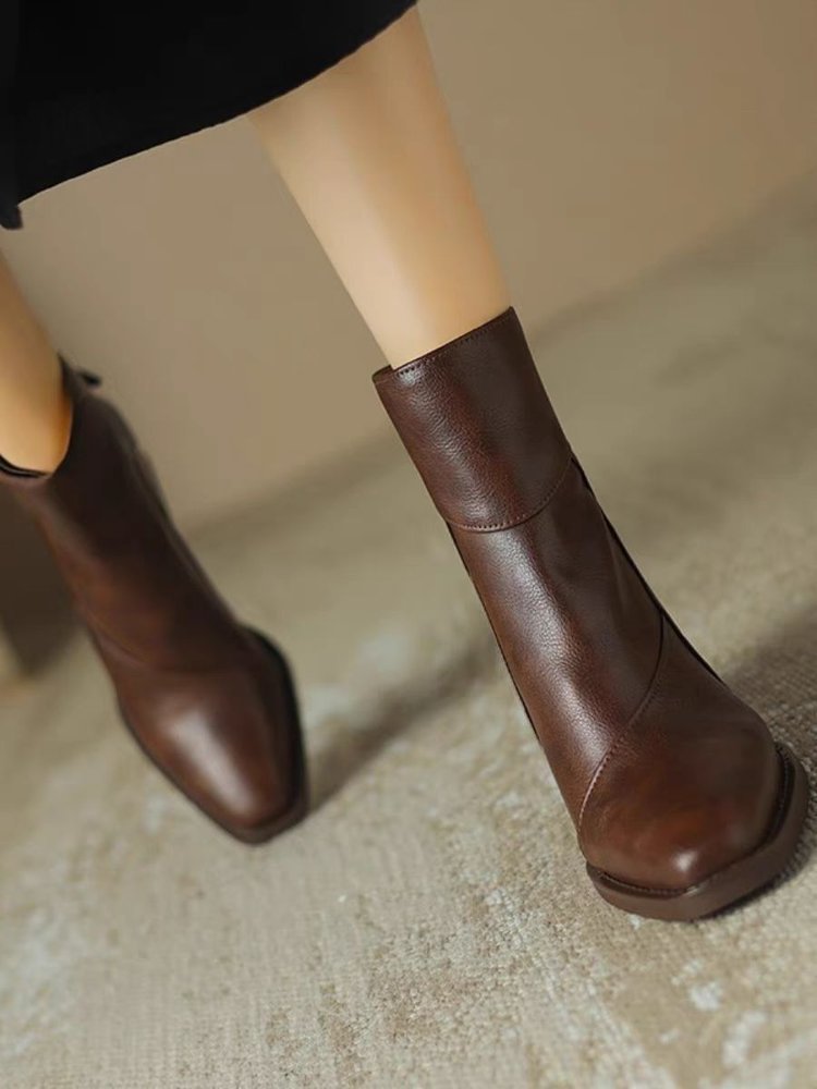 Ретро коричневый мягкий кожаный толстый каблок сапоги женский 2024 новый высокий каблуки Мартин сапоги британский стиль маленький квадратный тощий сапоги