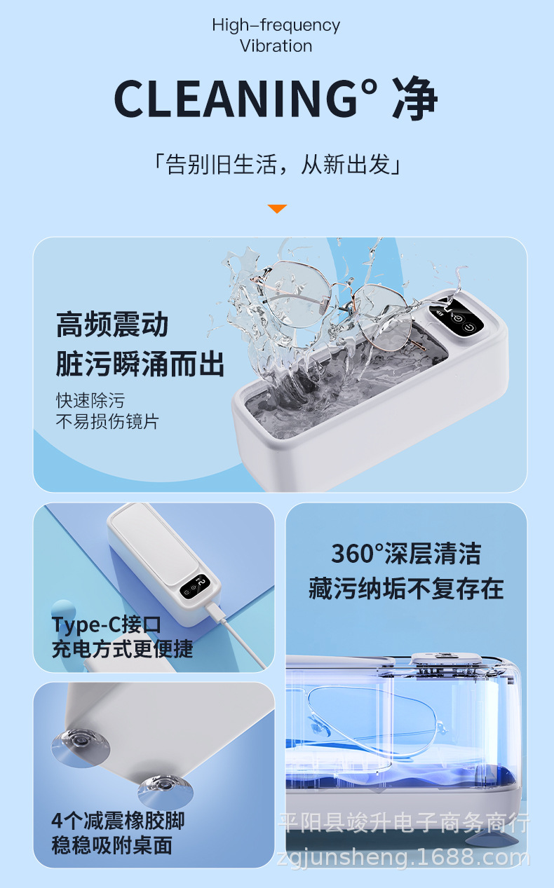 Ультразвуковая машина для чистки очков Удобный высокочастотный инструмент для домашней чистки Электрический мини ювелирные изделия