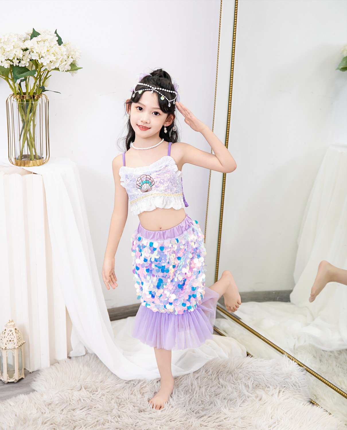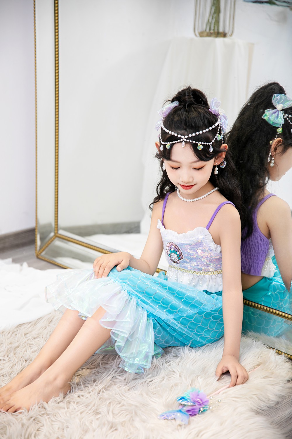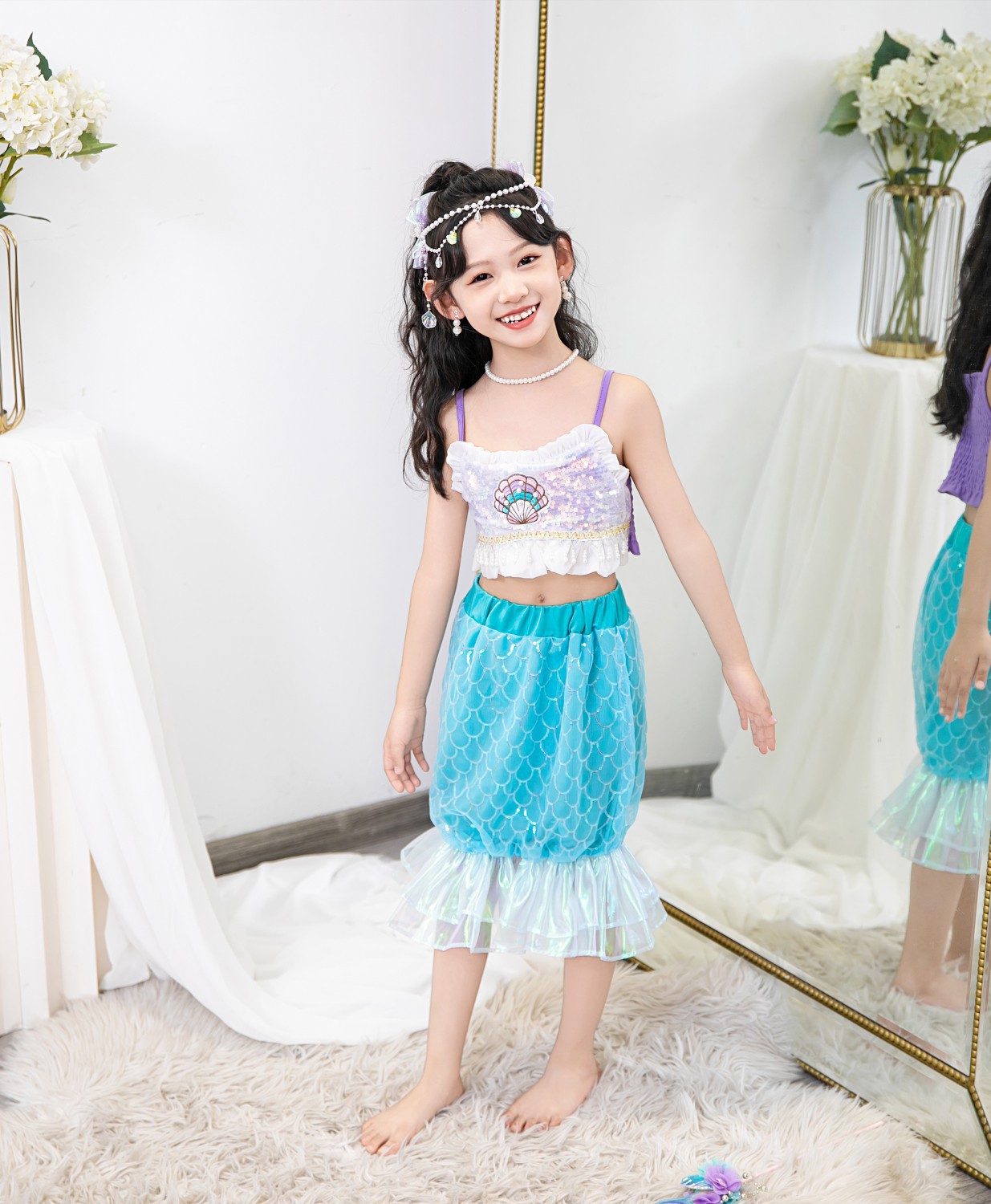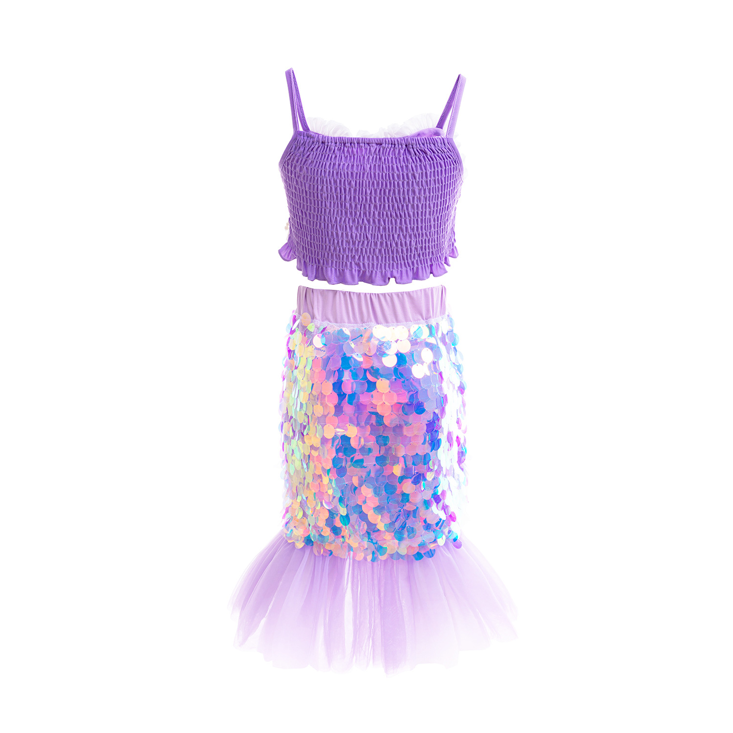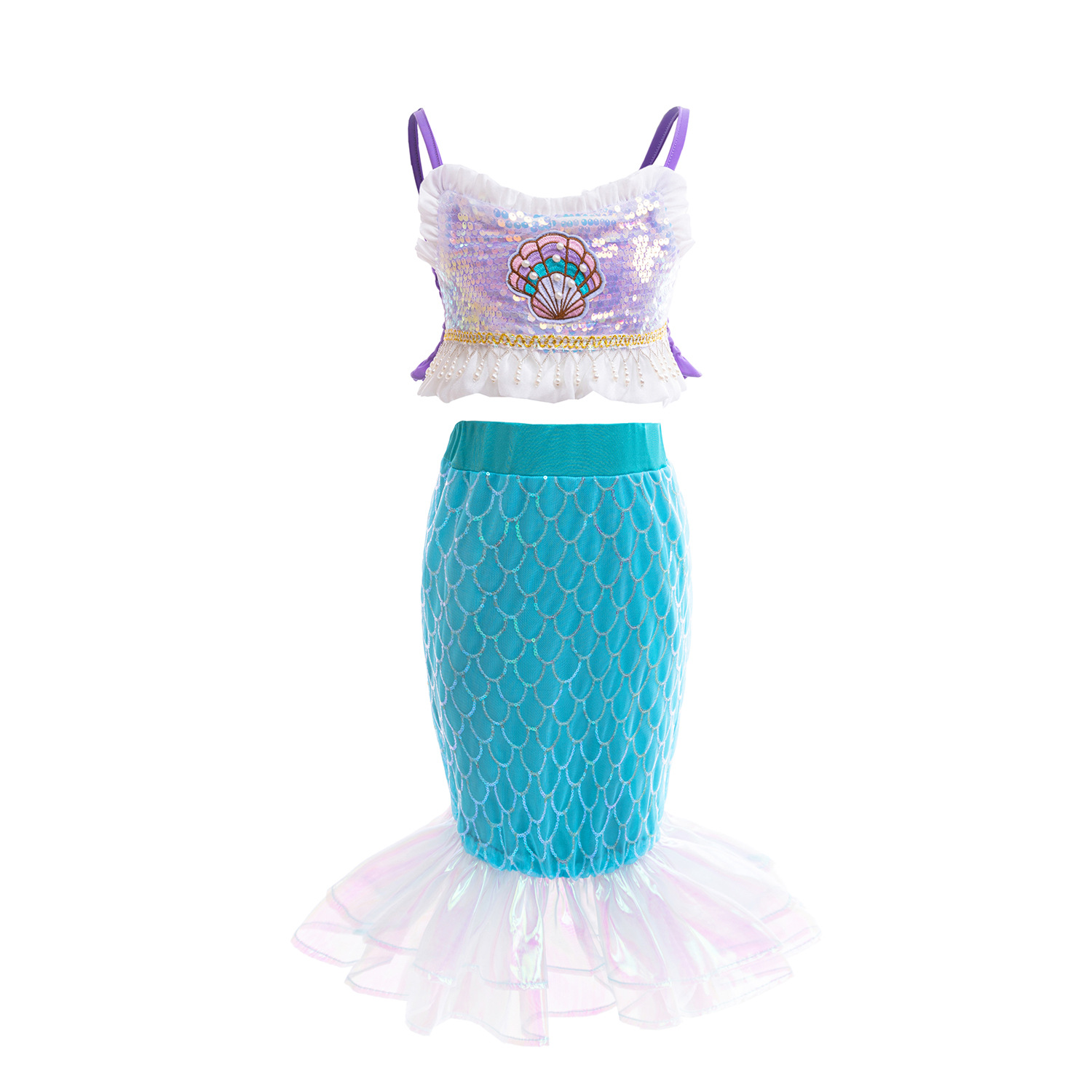 Русалка платье 2024 новый русалка юка рыбий хвост платье иностранное платье для девочек платье из двух частей с блестками SB66