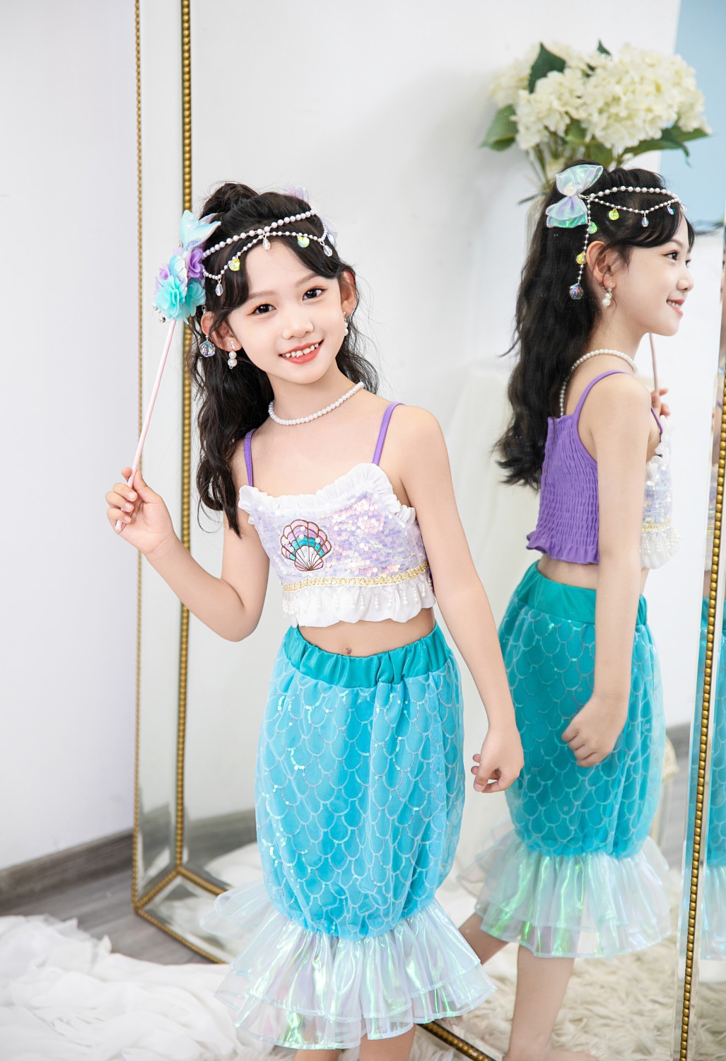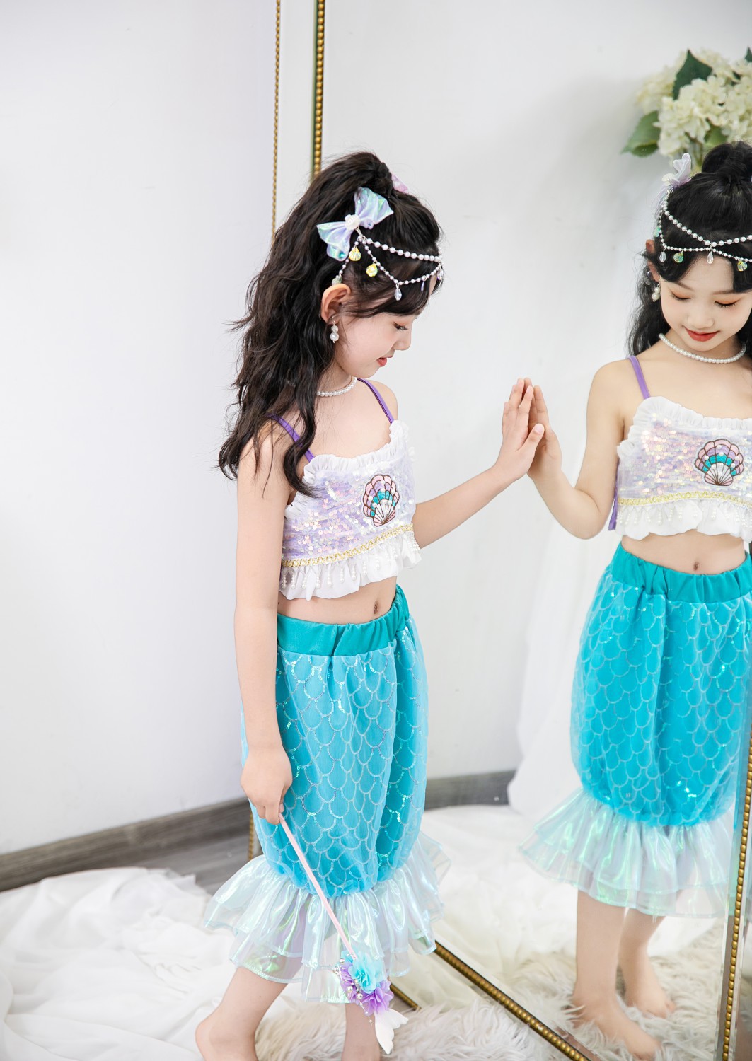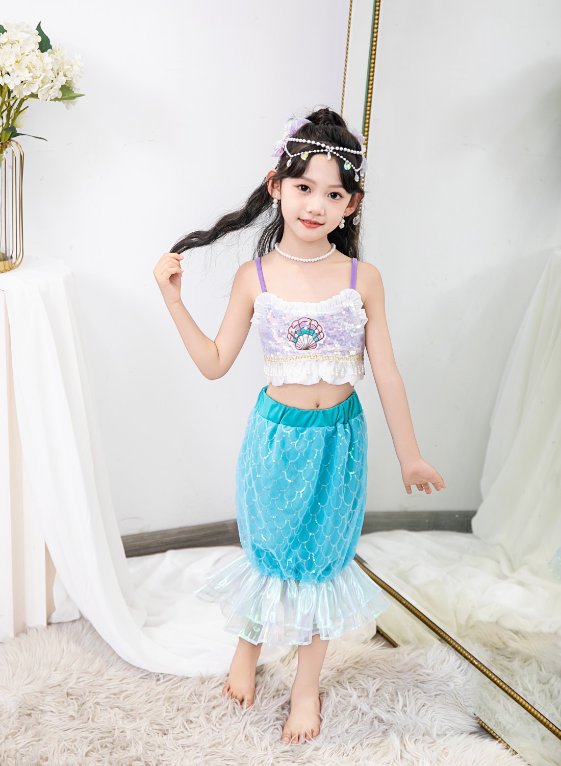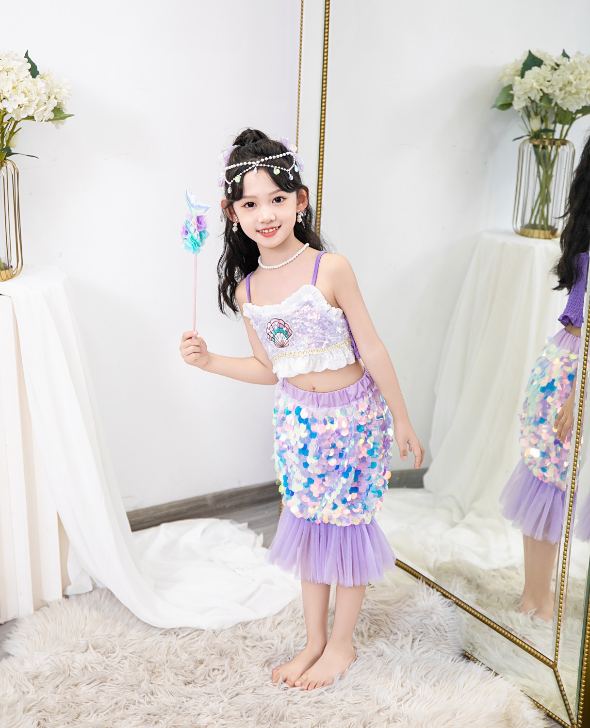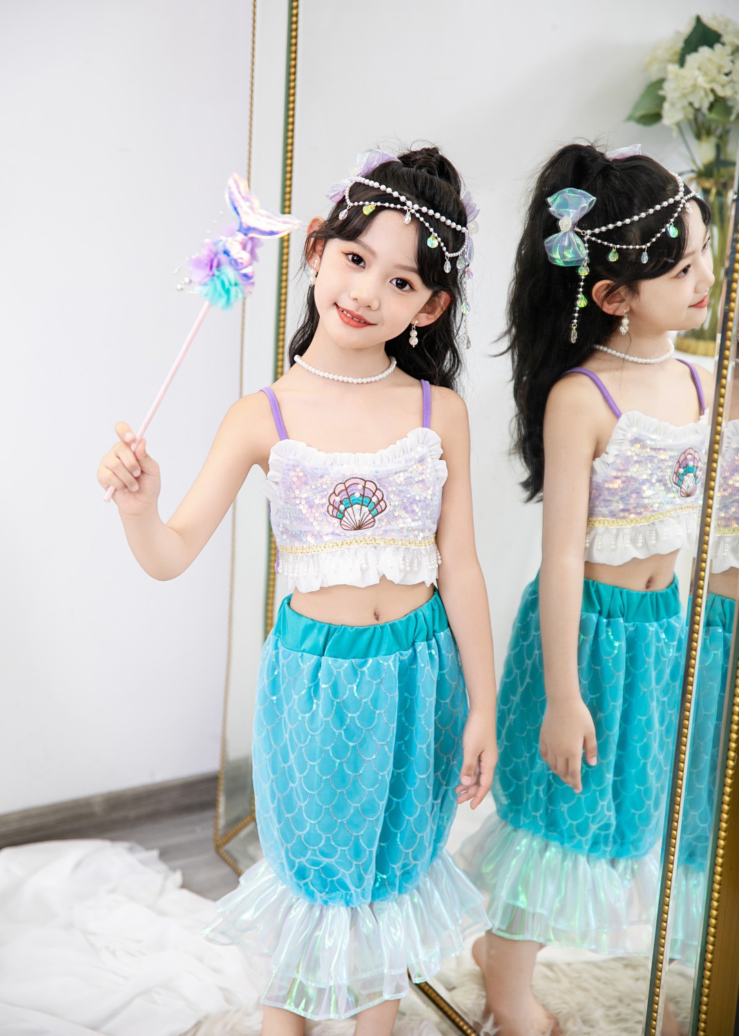 Русалка платье 2024 новый русалка юка рыбий хвост платье иностранное платье для девочек платье из двух частей с блестками SB66