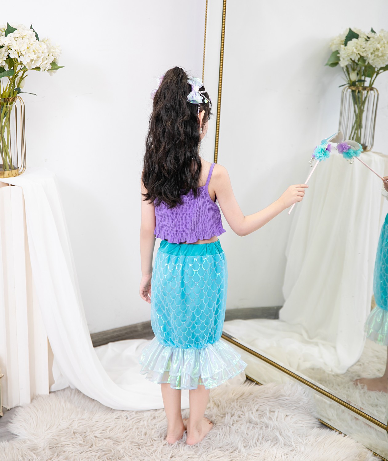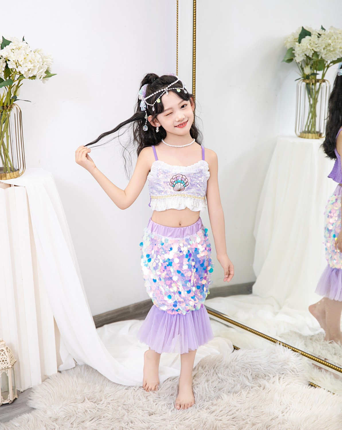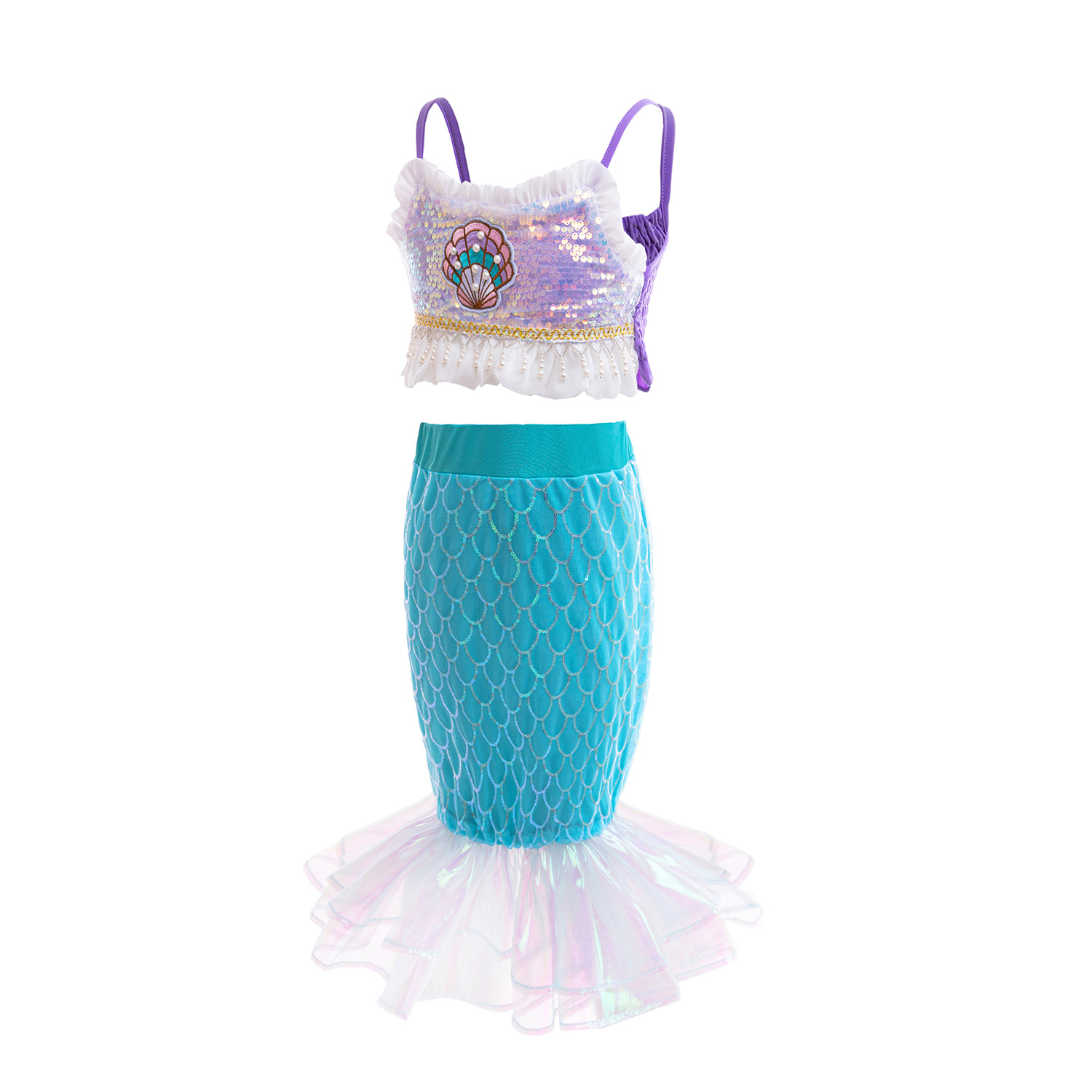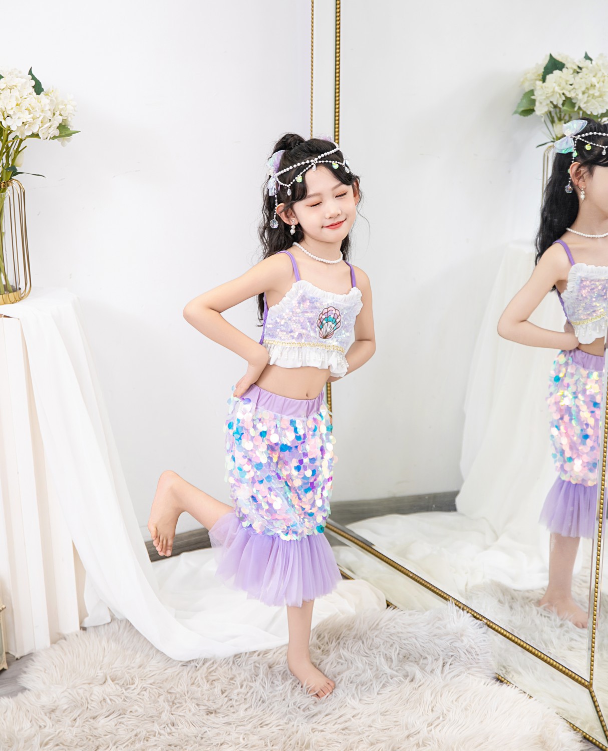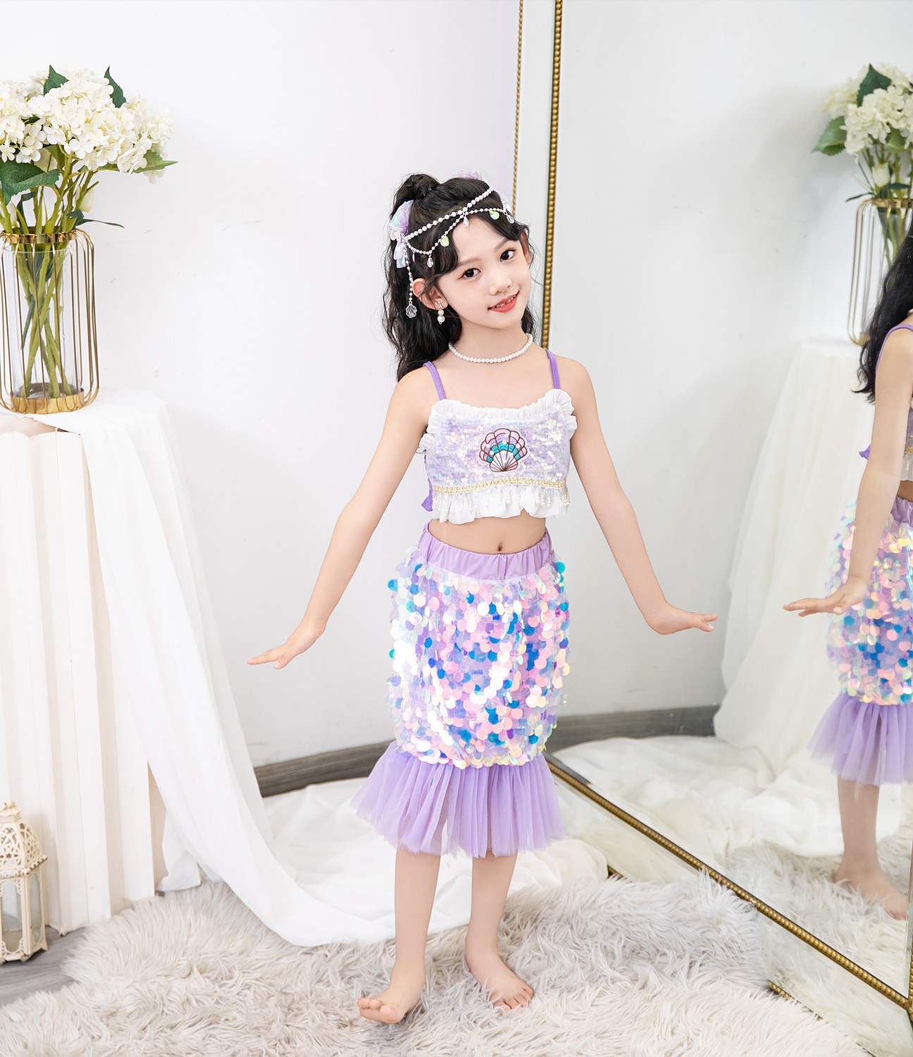 Русалка платье 2024 новый русалка юка рыбий хвост платье иностранное платье для девочек платье из двух частей с блестками SB66