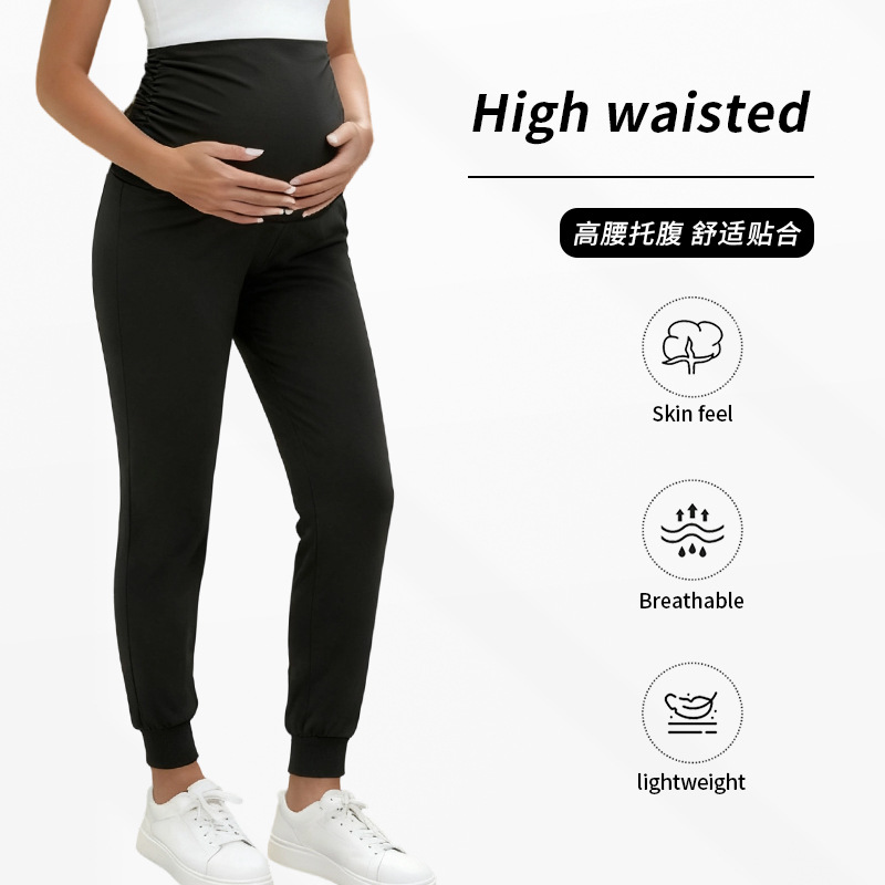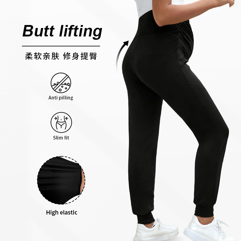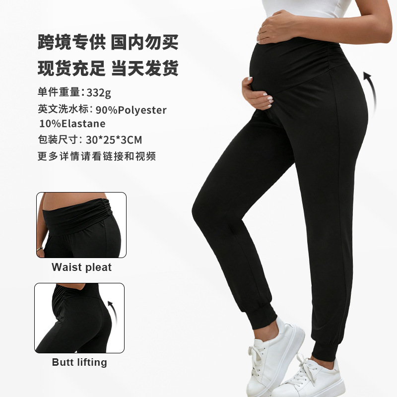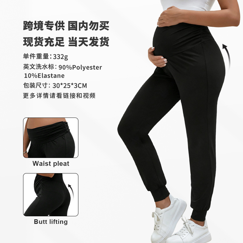 Европейские и американские осенние спортивные брюки для беременных, свободные спортивные брюки, высокоэластичные брюки для йоги с высокой талией и поддержкой живота для беременных.