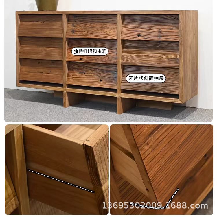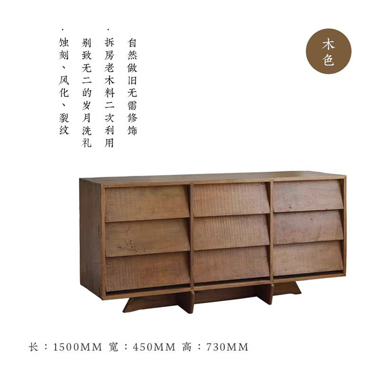 Старый вяза девять ящиков средний древний вогнутый выпуклый обеденный шкаф