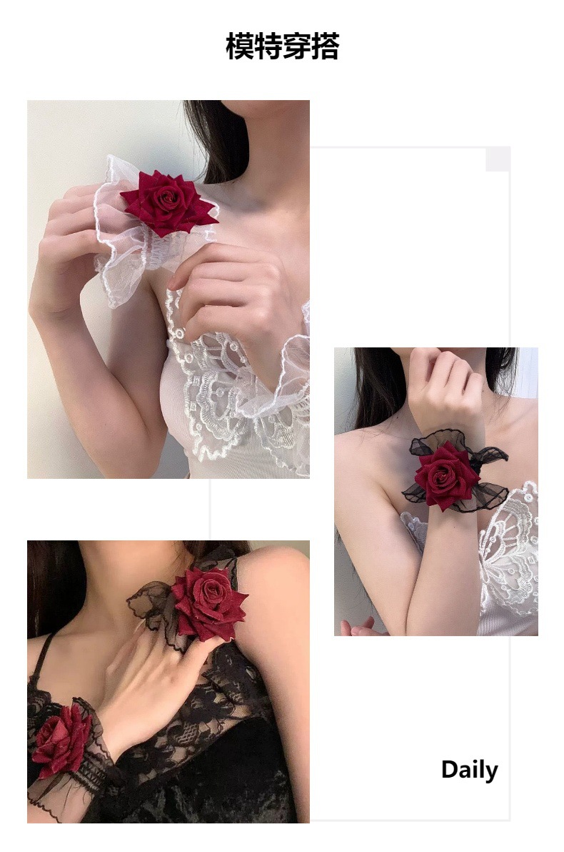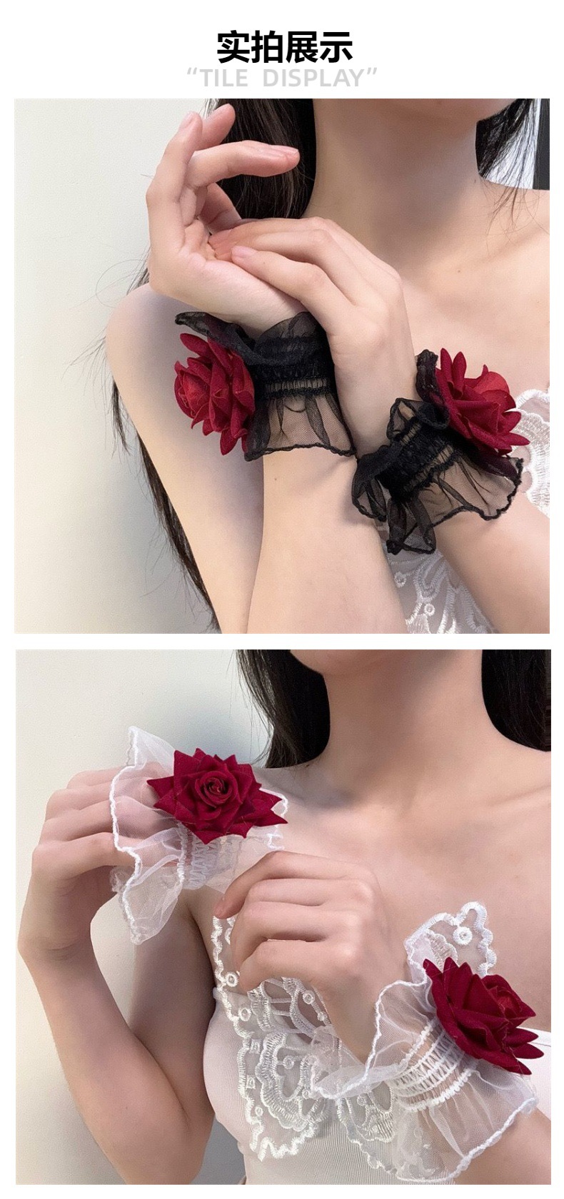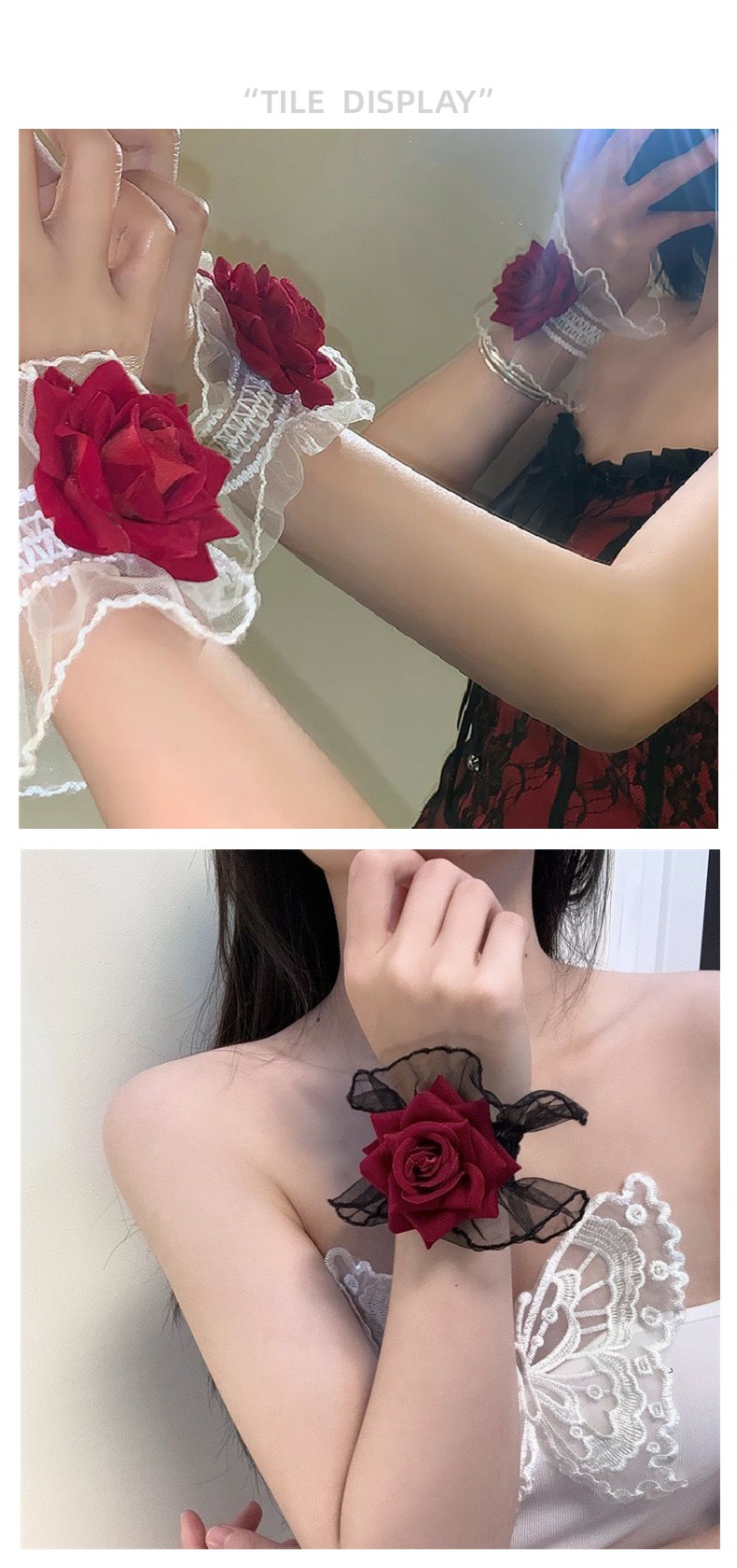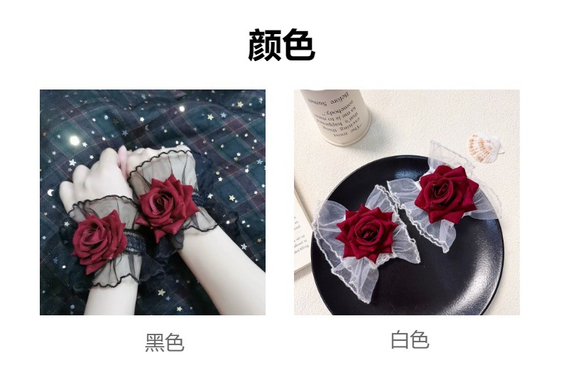 Новые розы Лолита Ручные украшения Модные цветы готический стиль ручной работы кружевной браслет свежий розовый аксессуар