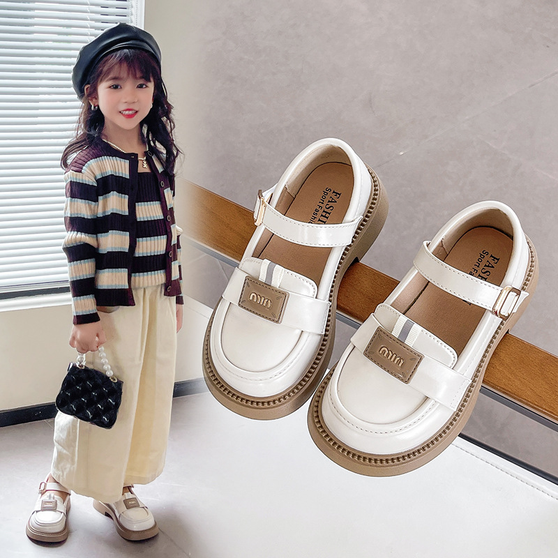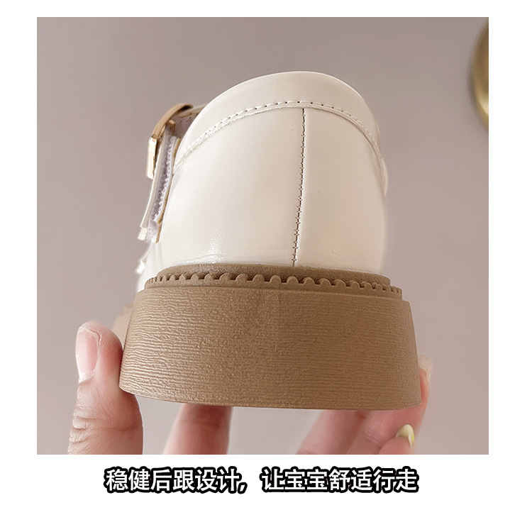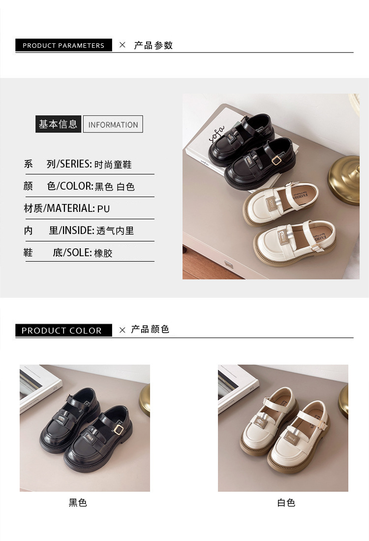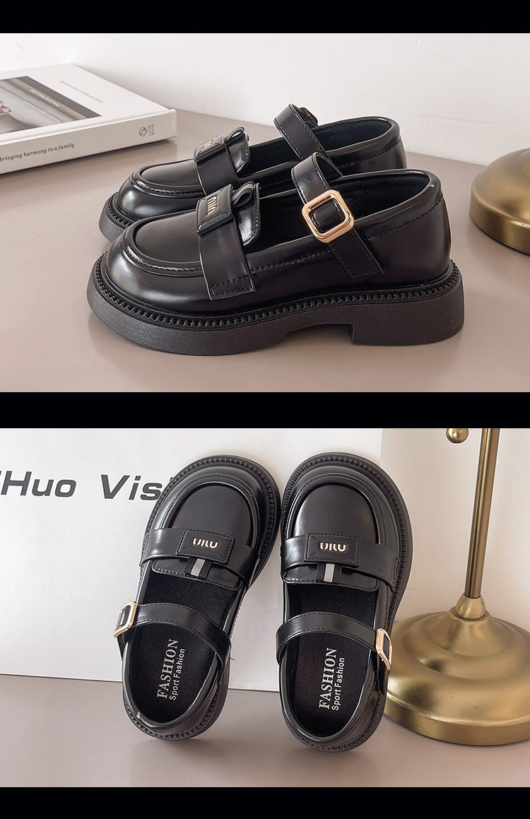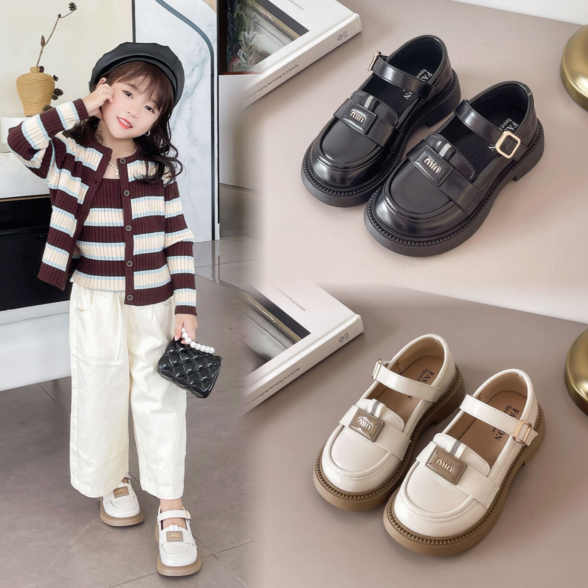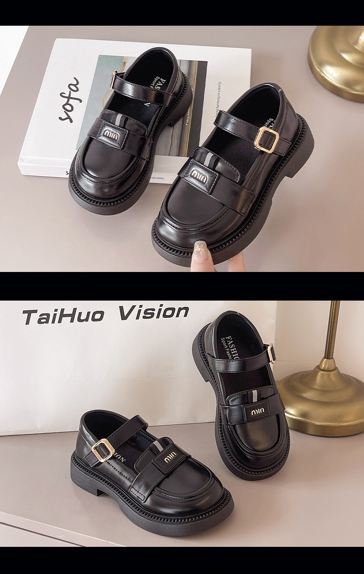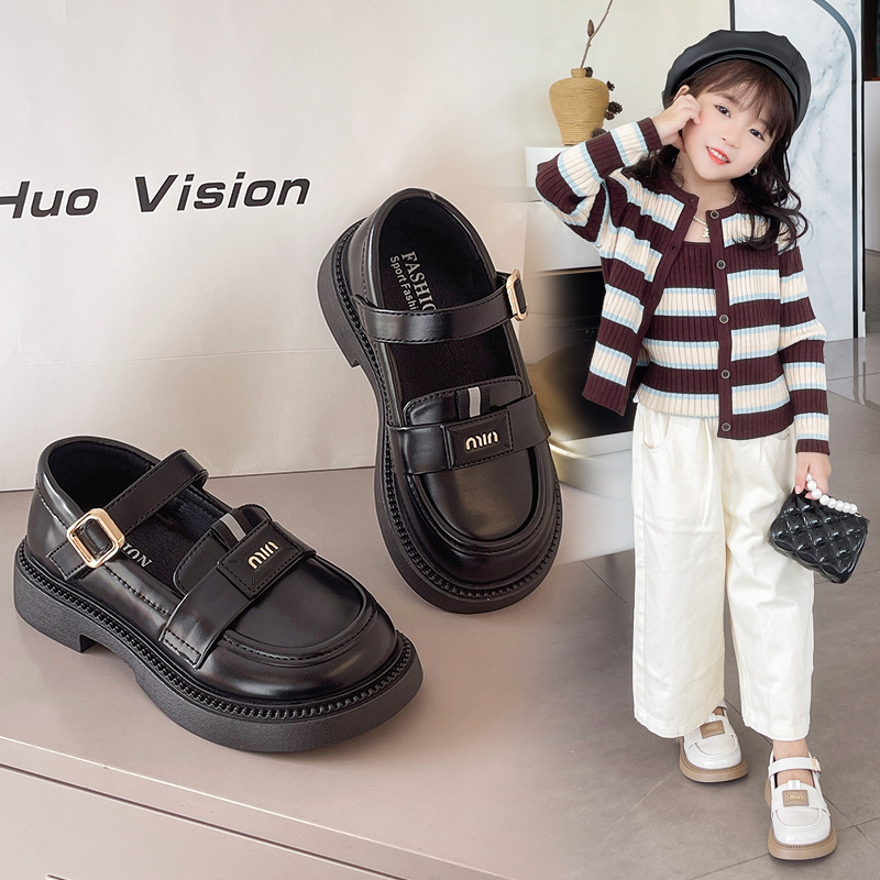 Детская кожаная обувь 2024 осенняя новая средняя детская металлическая пряжка маленькая черная кожаная обувь для девочек одиночная обувь нескользящая студенческая обувь