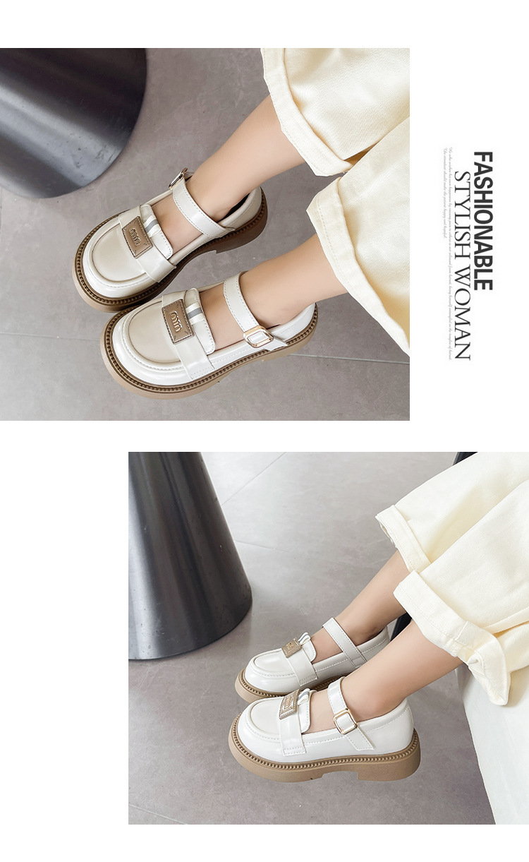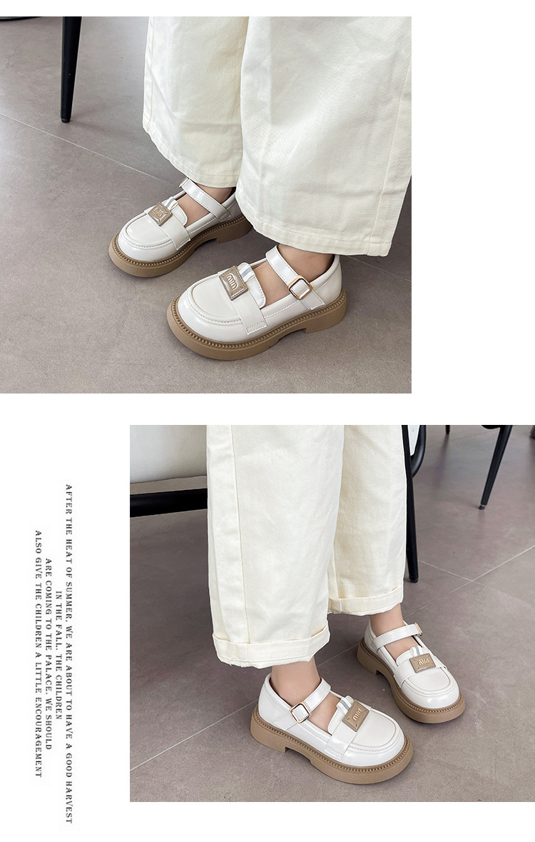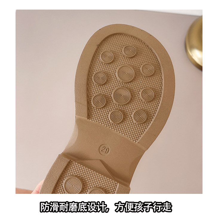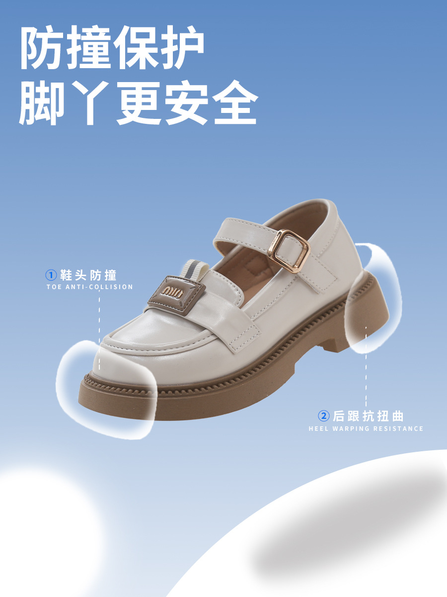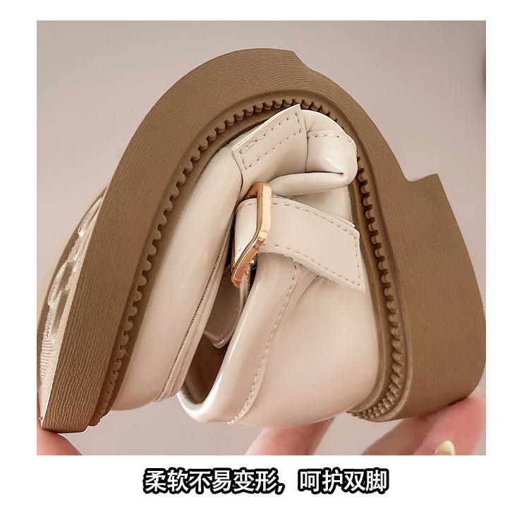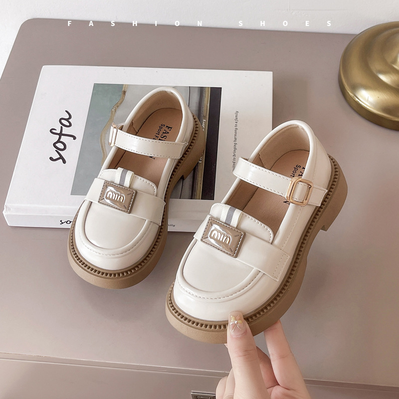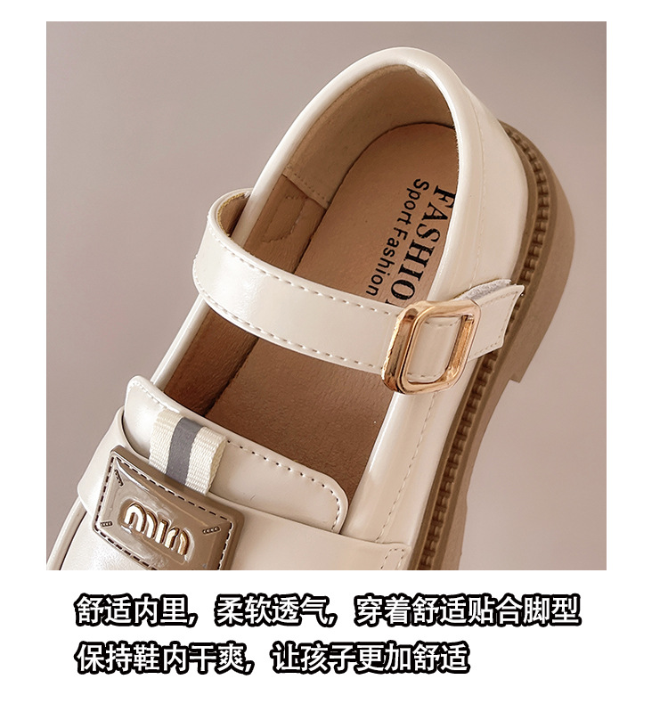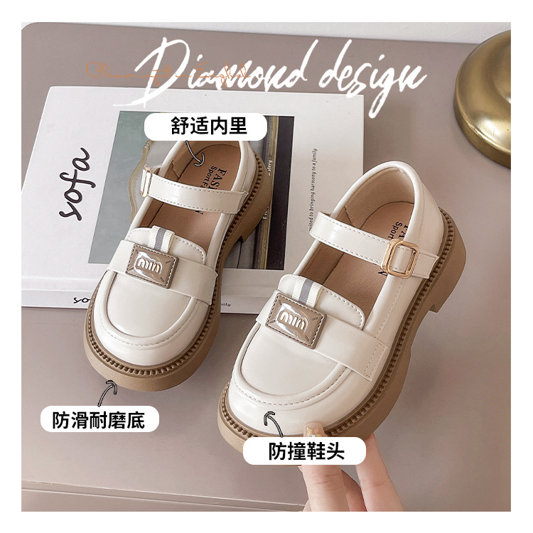 Детская кожаная обувь 2024 осенняя новая средняя детская металлическая пряжка маленькая черная кожаная обувь для девочек одиночная обувь нескользящая студенческая обувь