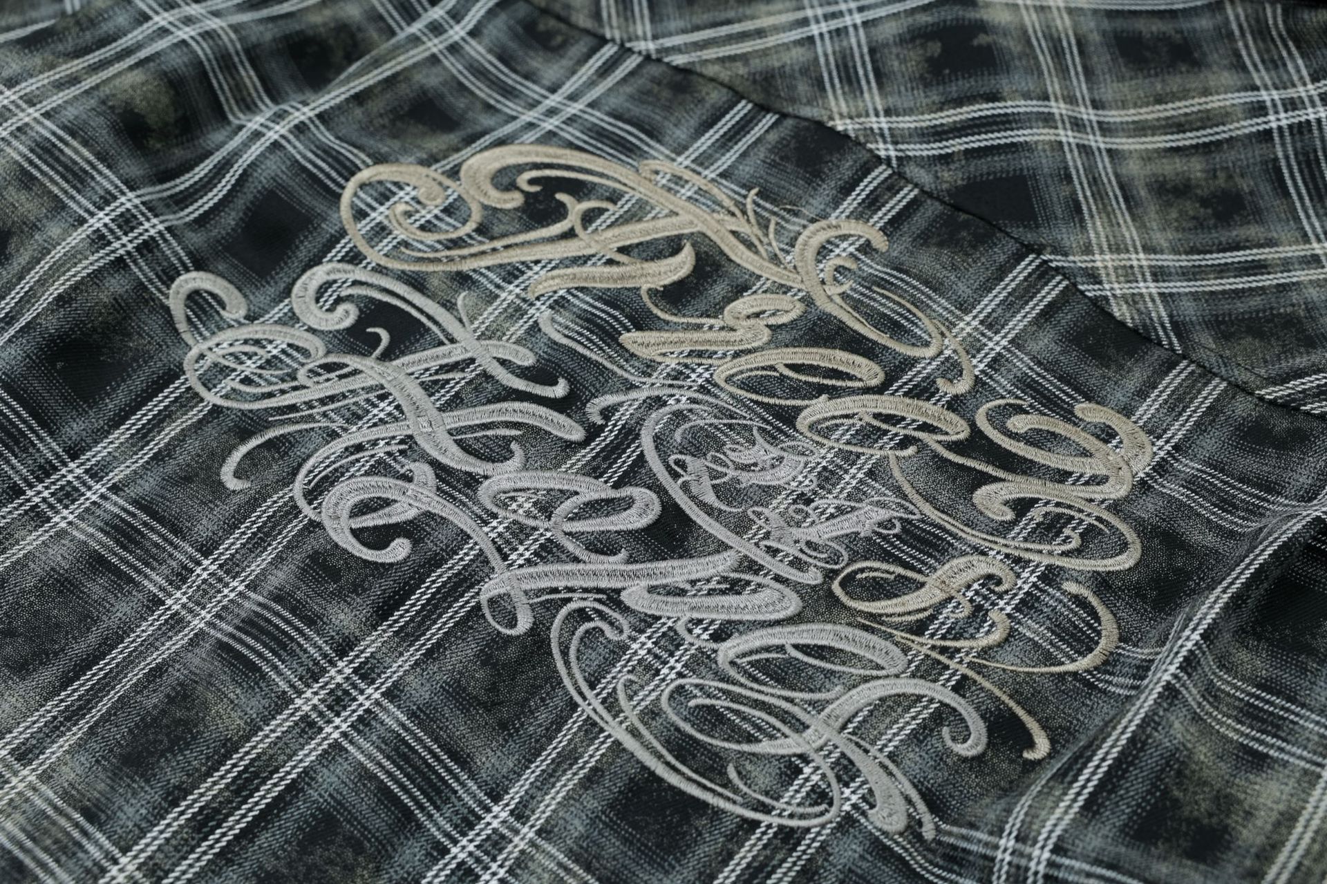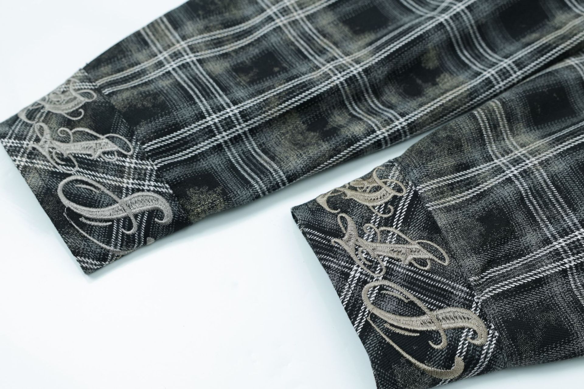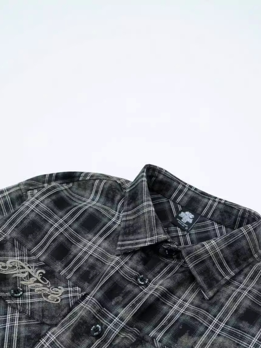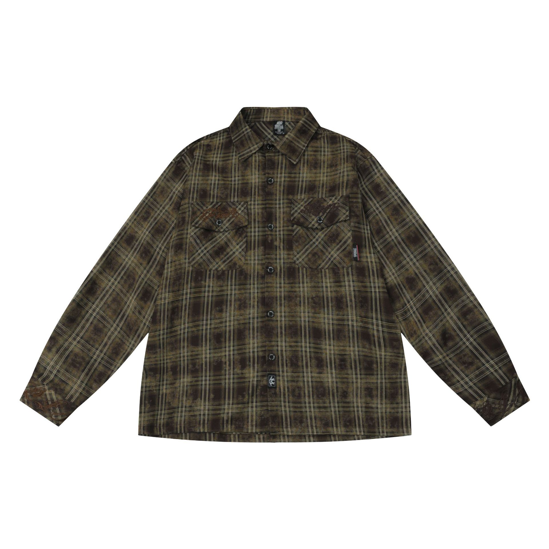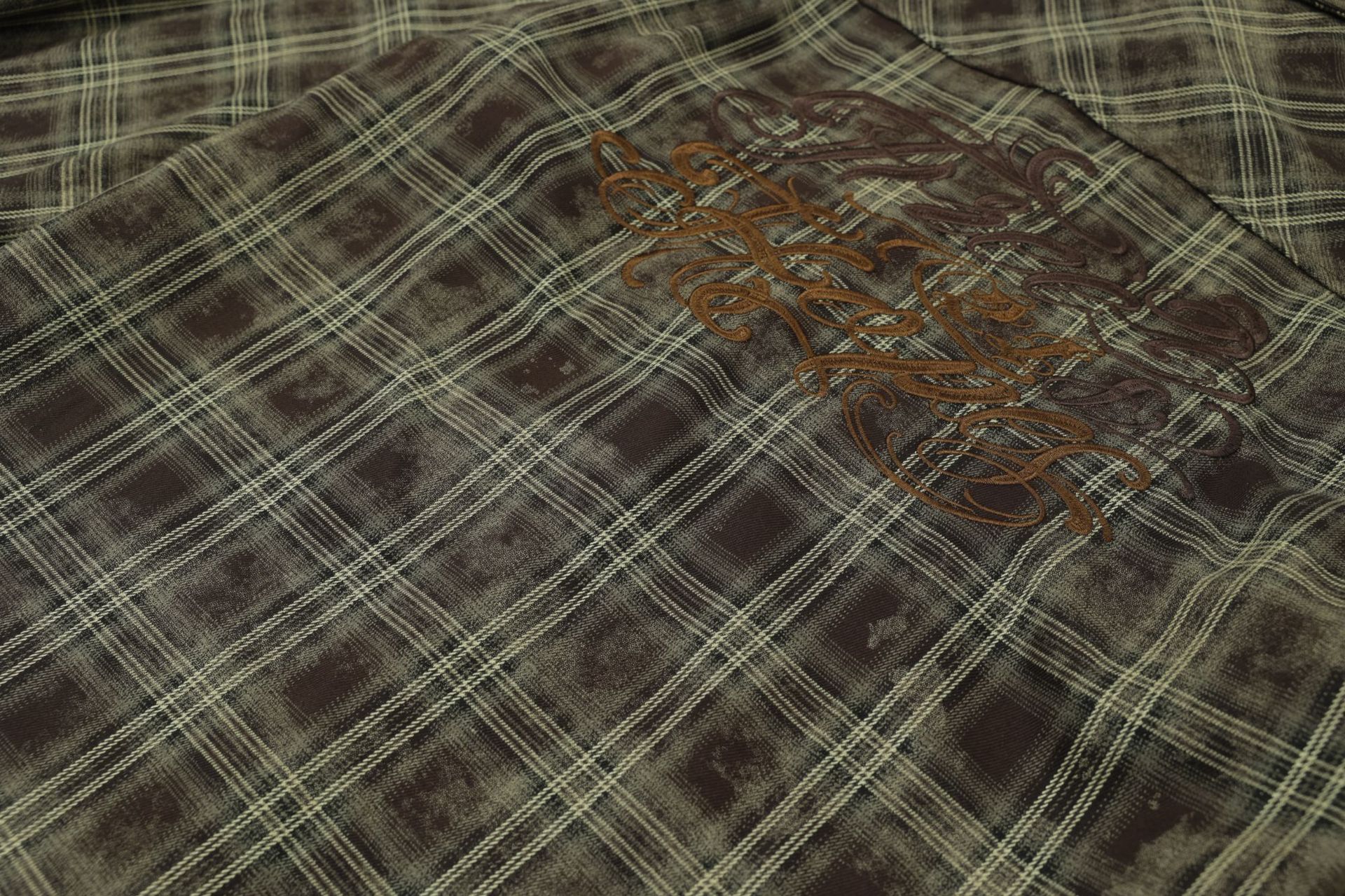 锈蚀效果重工花体刺绣宽松格子工装衬衫