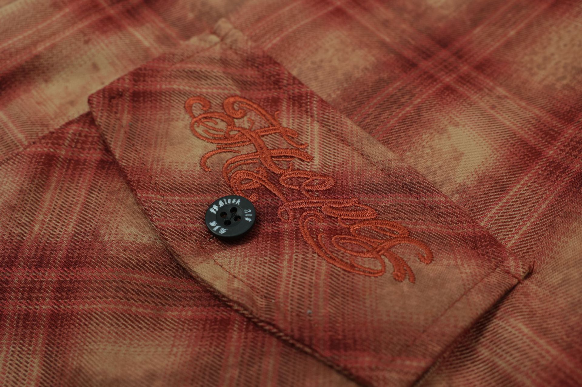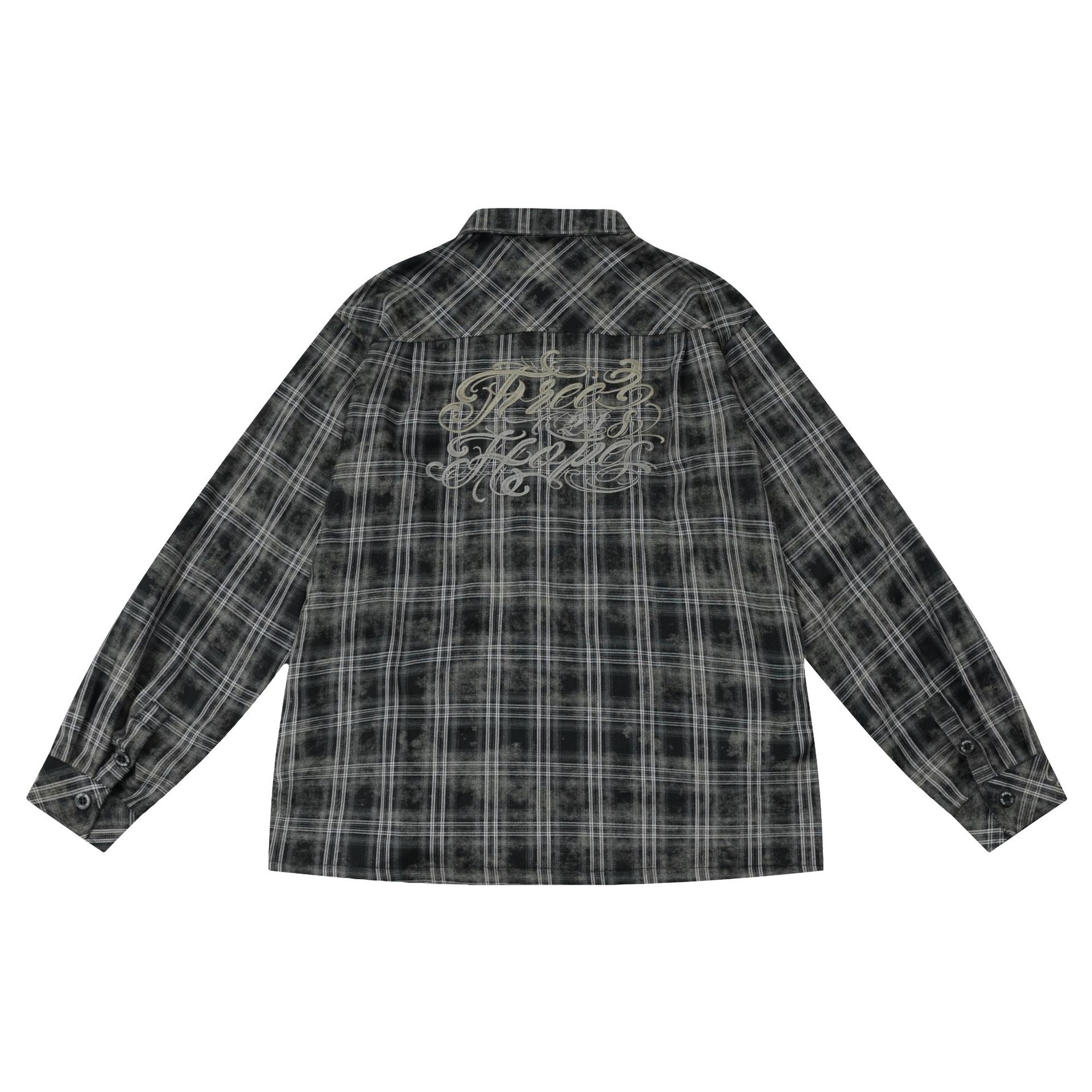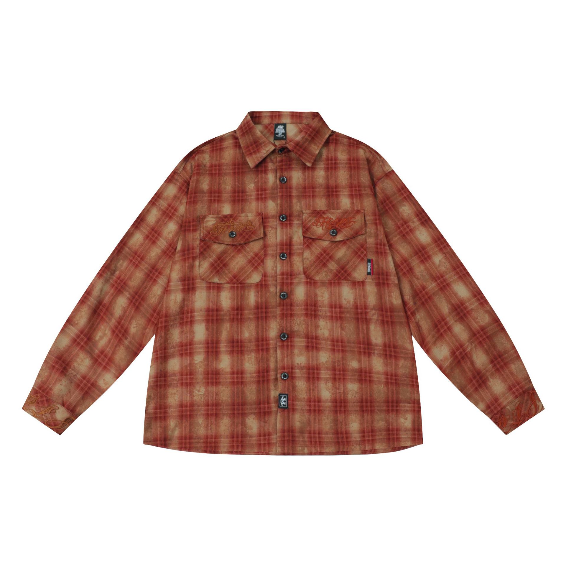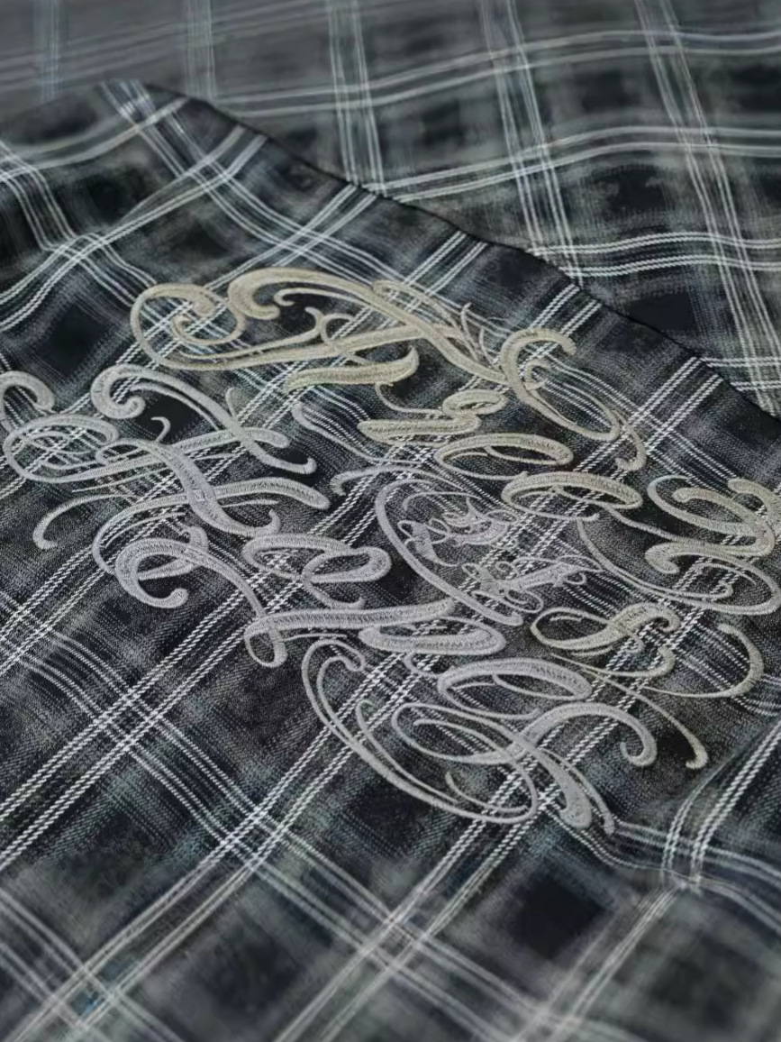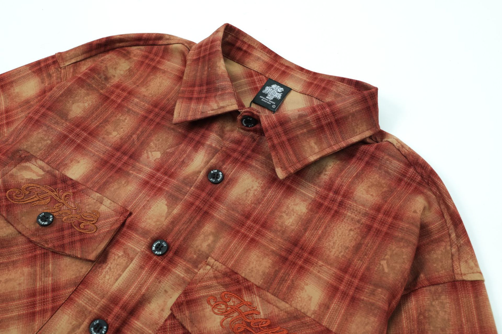 锈蚀效果重工花体刺绣宽松格子工装衬衫
