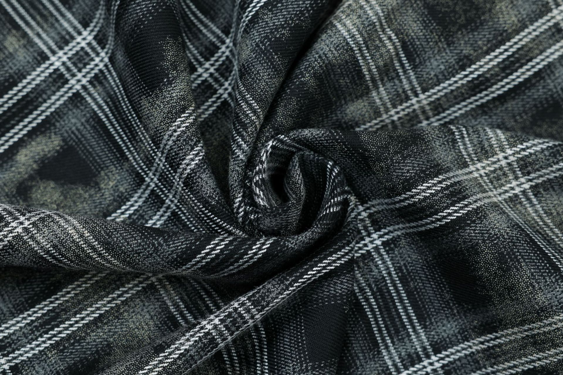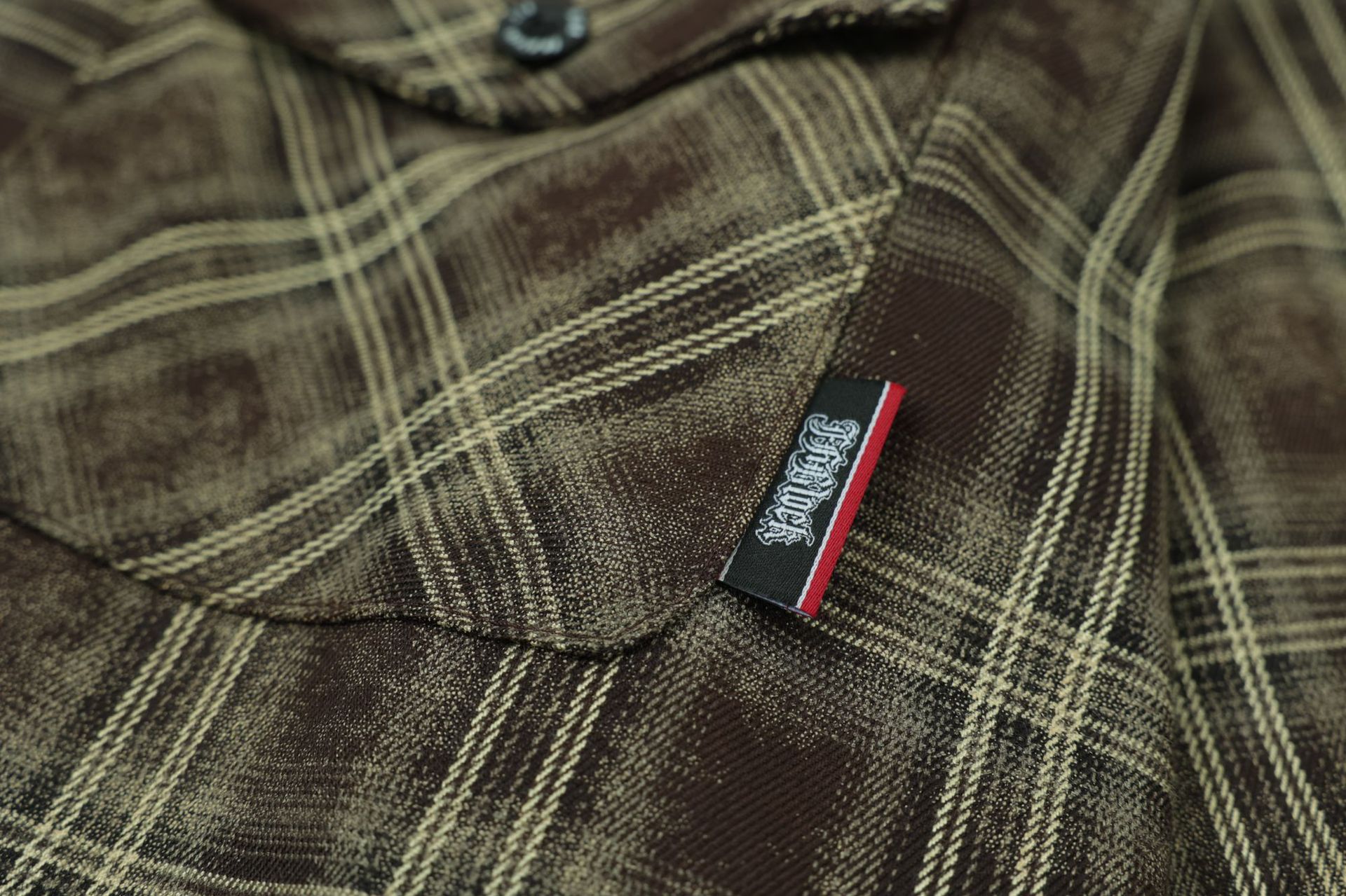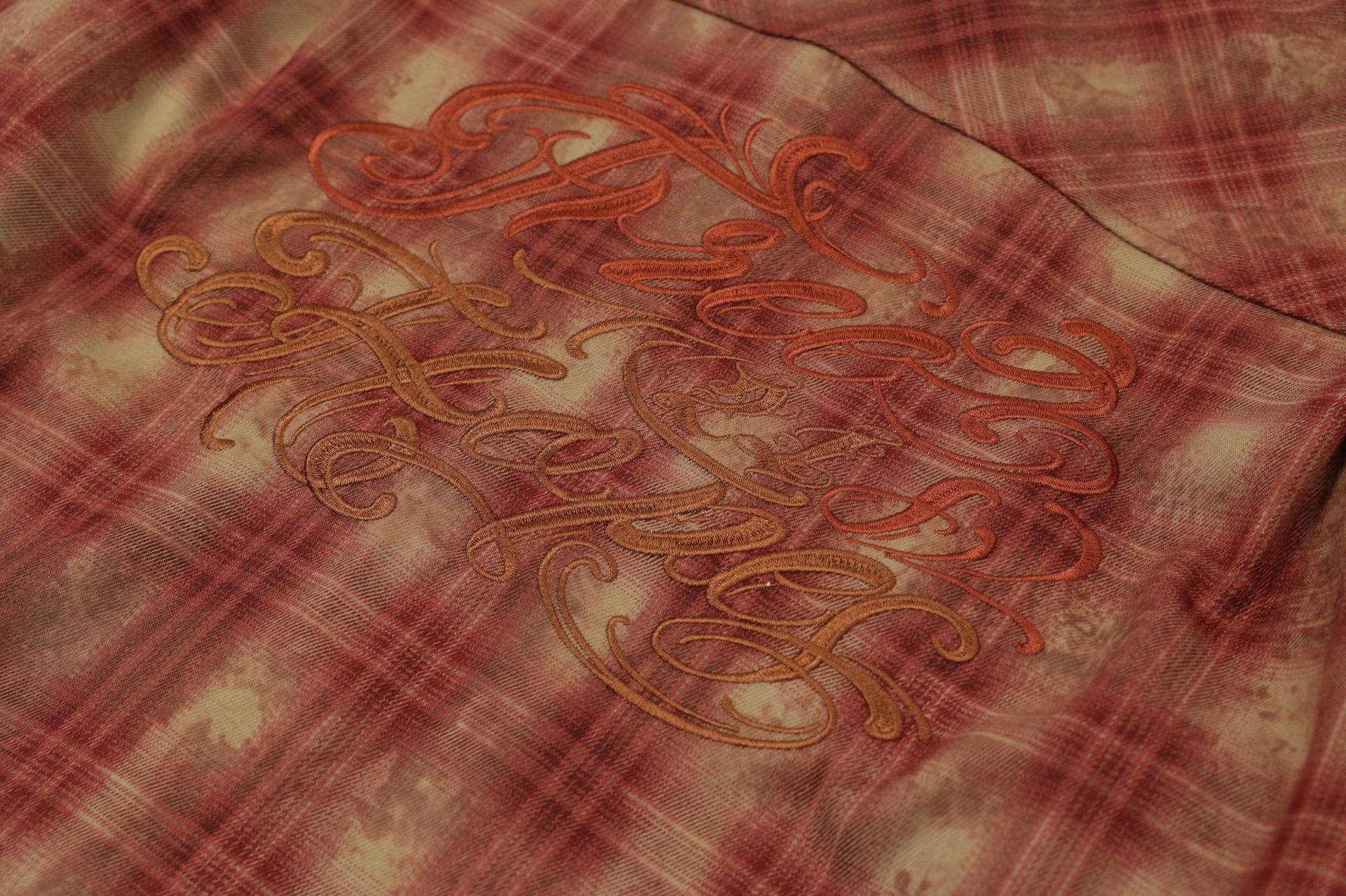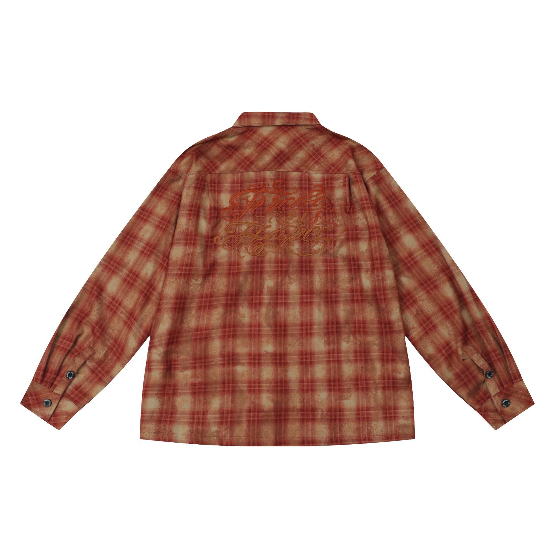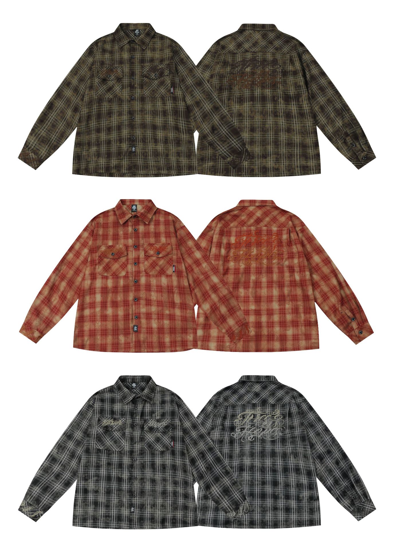 锈蚀效果重工花体刺绣宽松格子工装衬衫