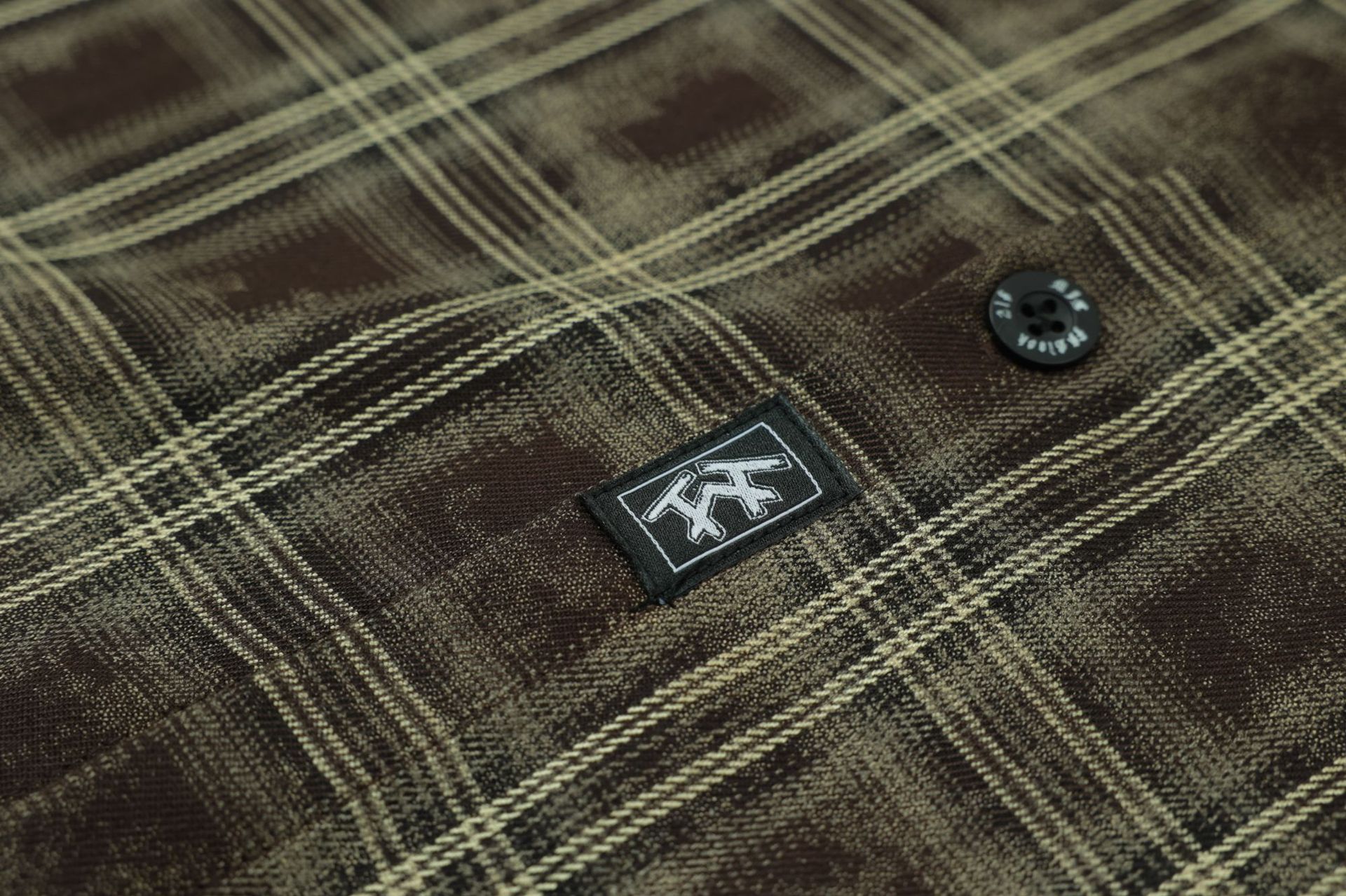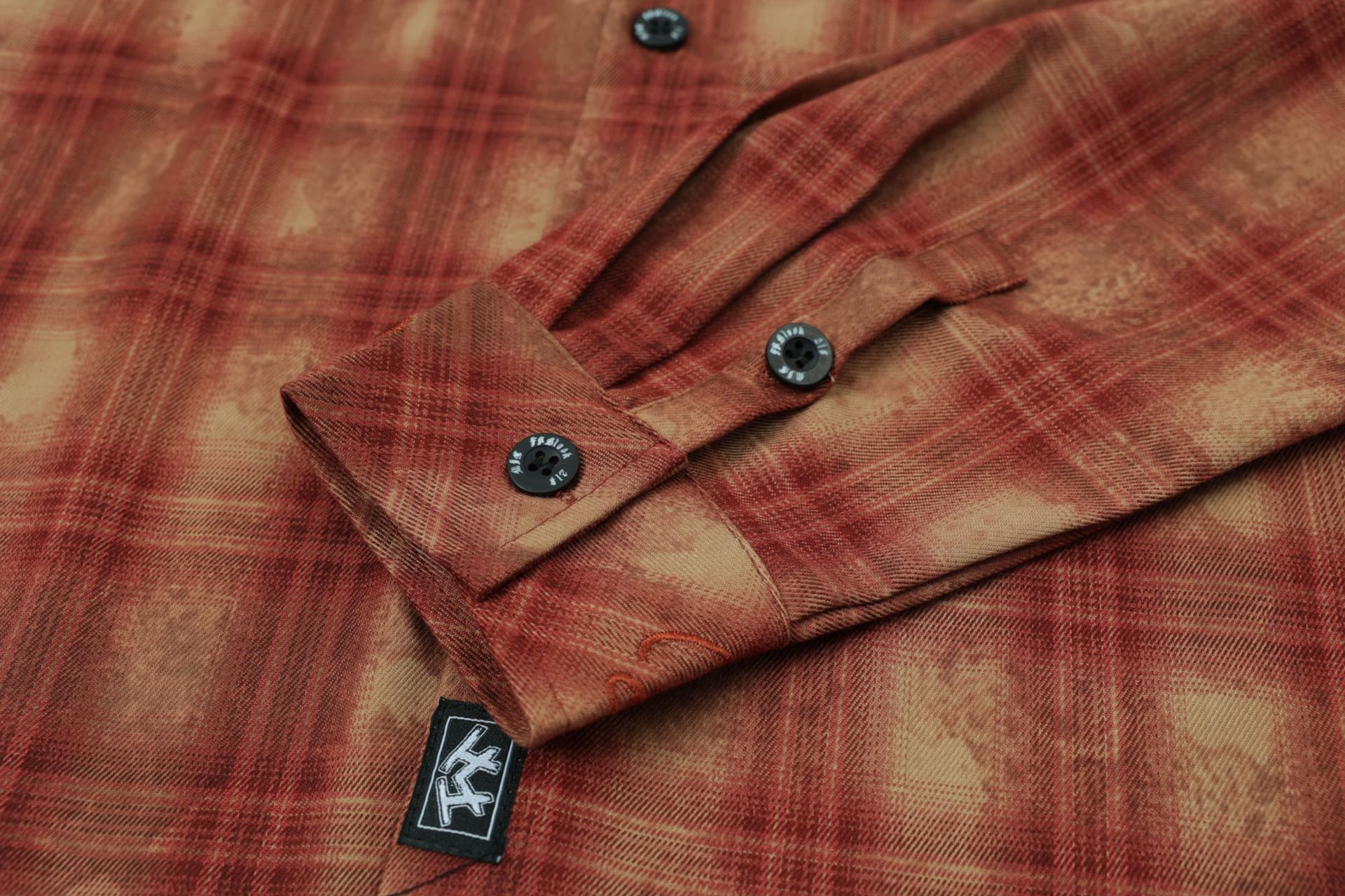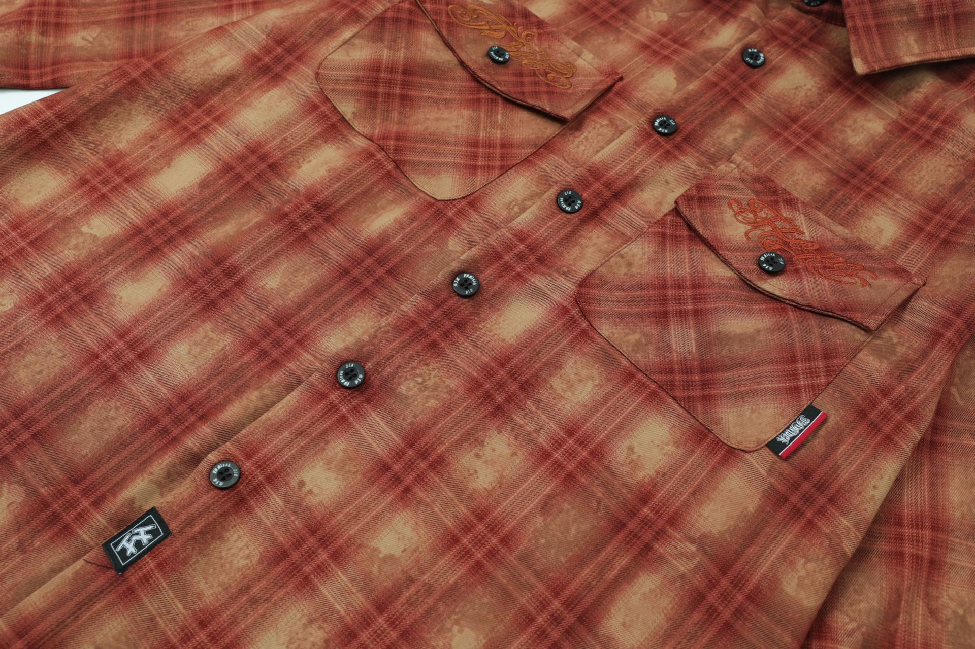 Rusty effect heavy industry floral embroidery loose grid workwear shirt
