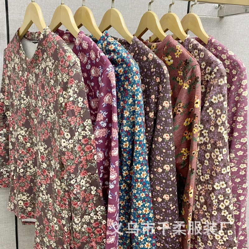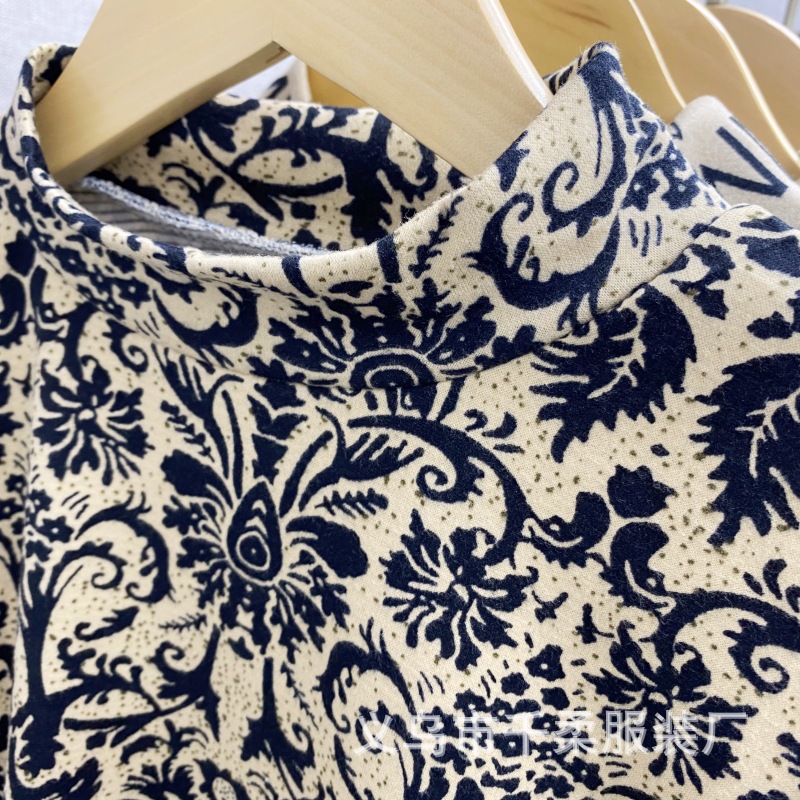 средний воротник; круглый вырез; Средний воротник с цветочным рисунком; Круглая шея с цветочным принтом; Смешивайте и сочетайте цвета [бархатные и утолщенные]