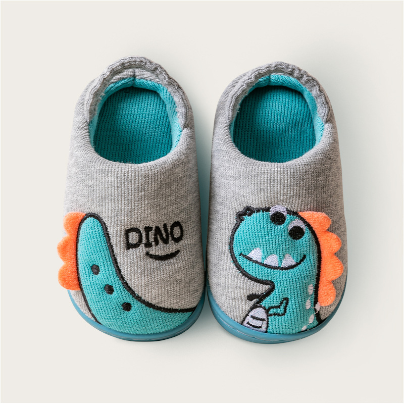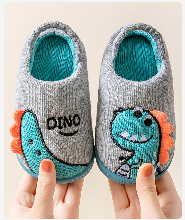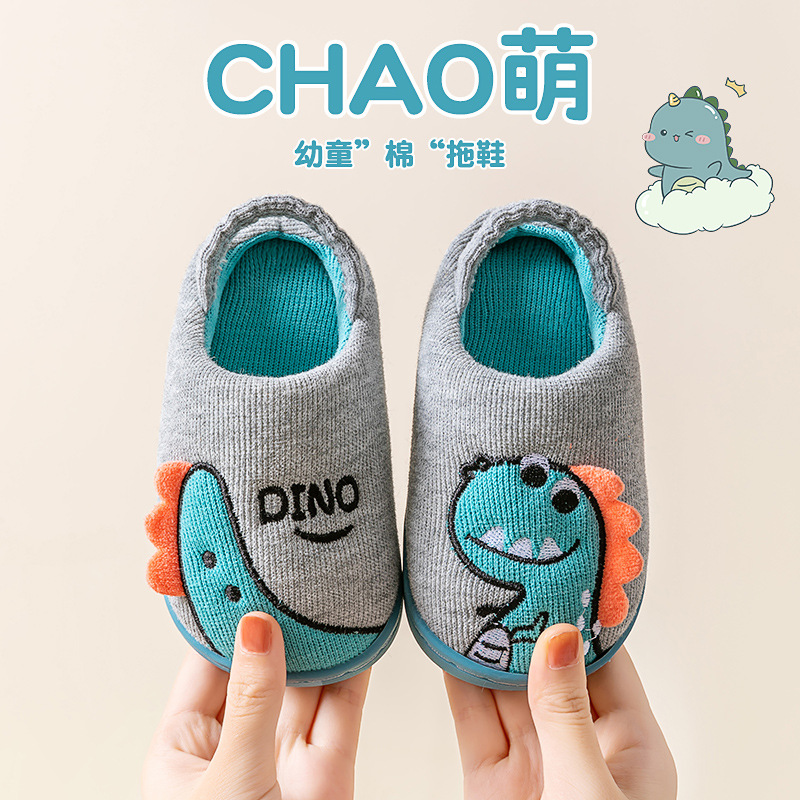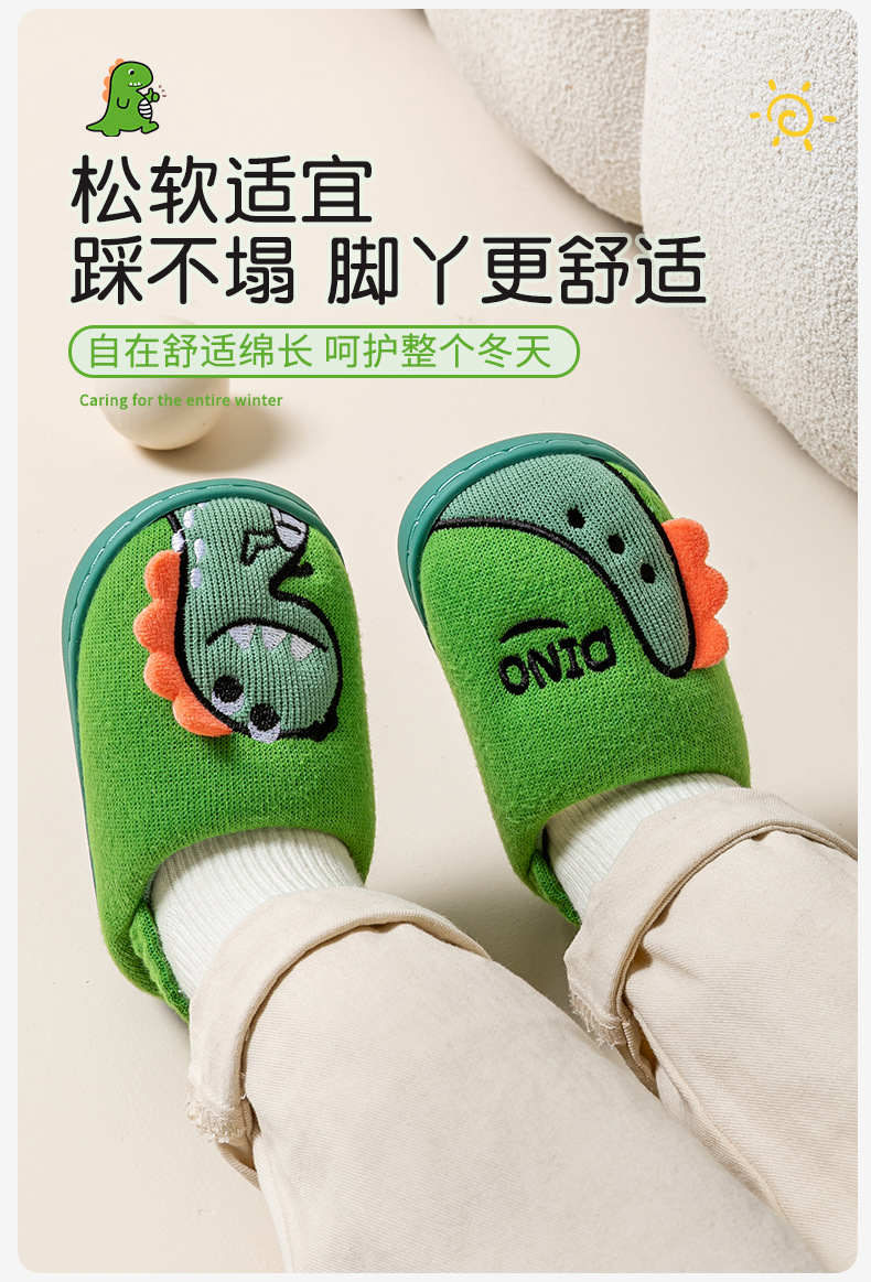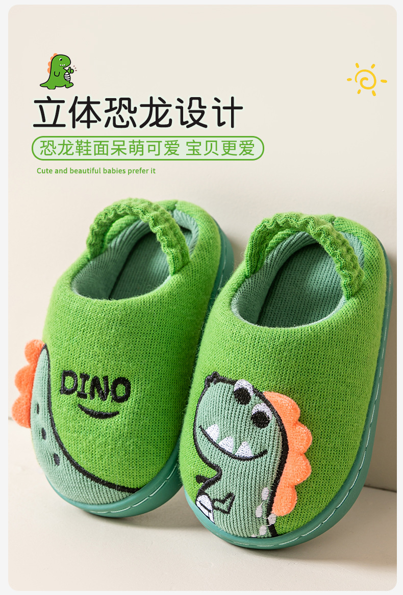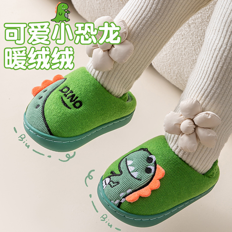 Детские хлопчатобумажные тапочки зимние мужские и женские детские мультяшные динозавры теплые и утолщенные детские шерстяные тапочки