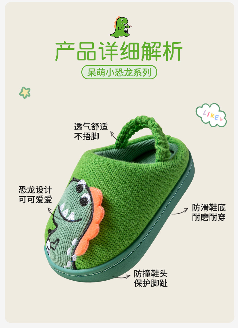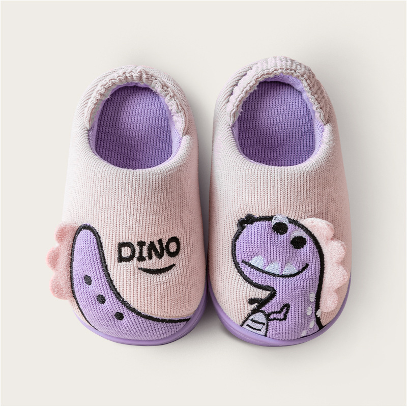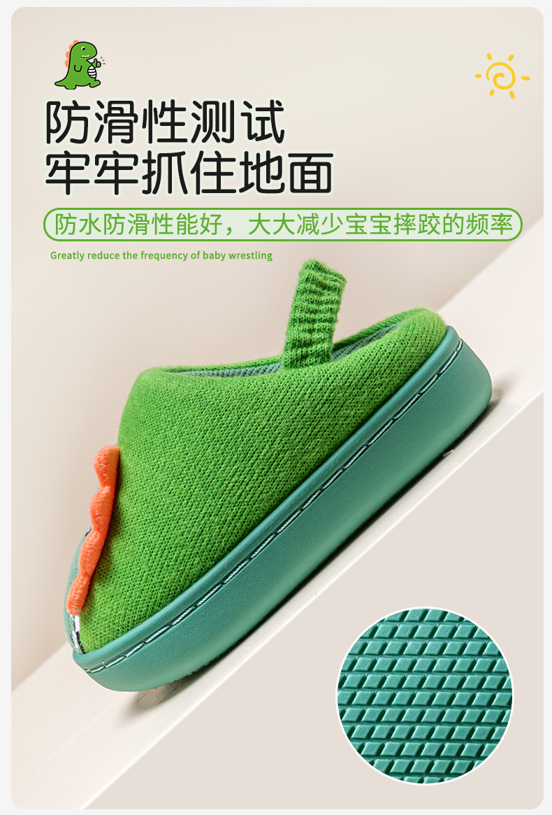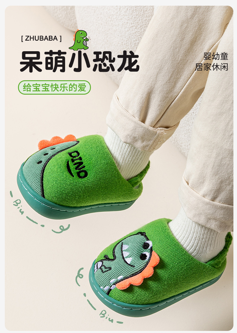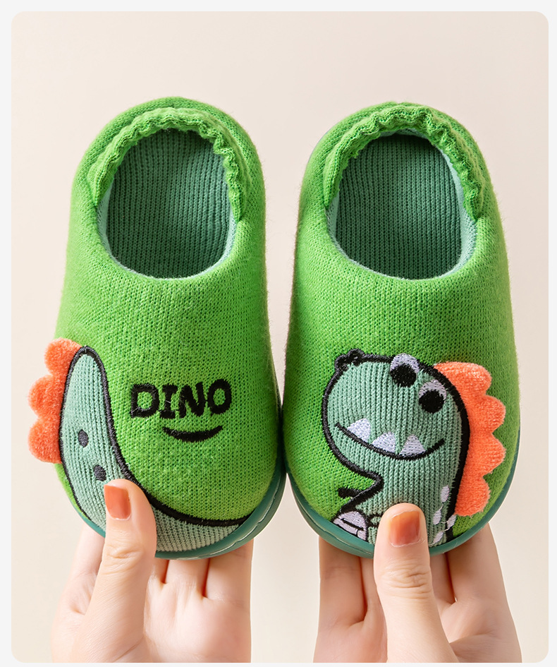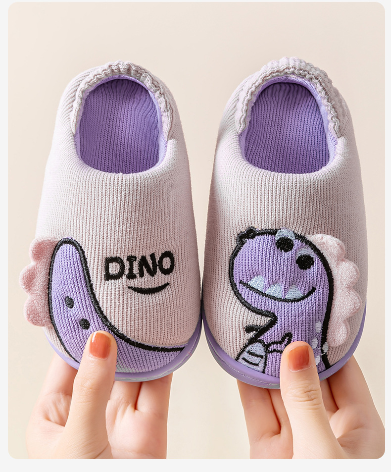 Детские хлопчатобумажные тапочки зимние мужские и женские детские мультяшные динозавры теплые и утолщенные детские шерстяные тапочки