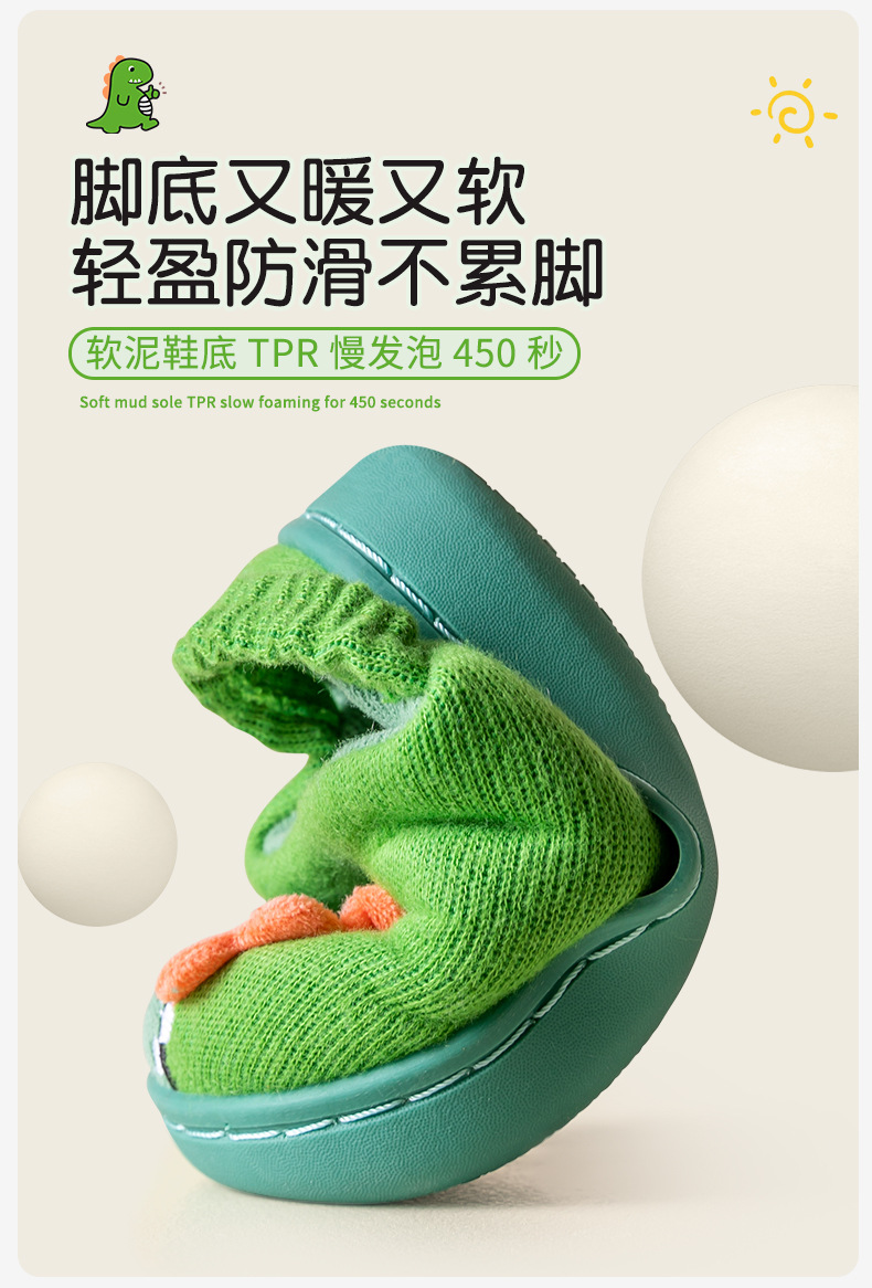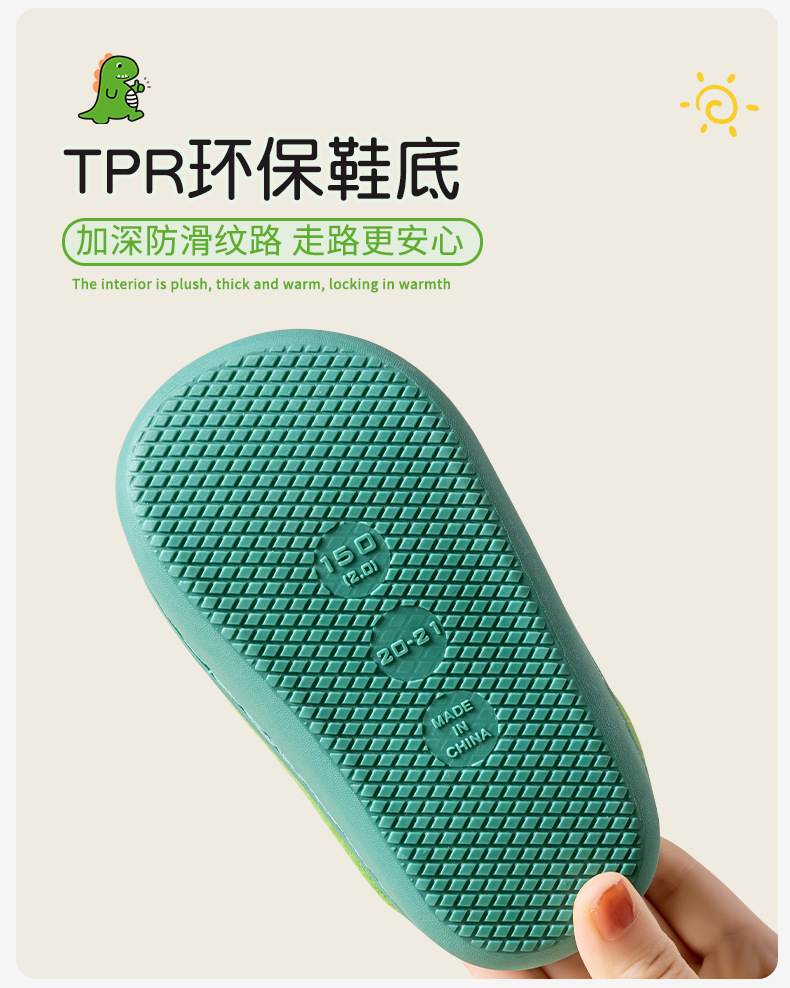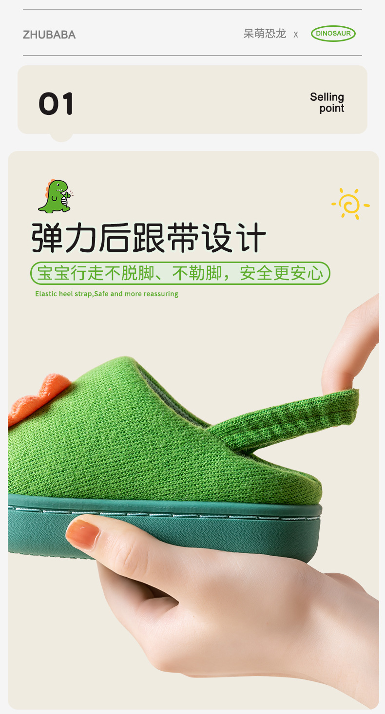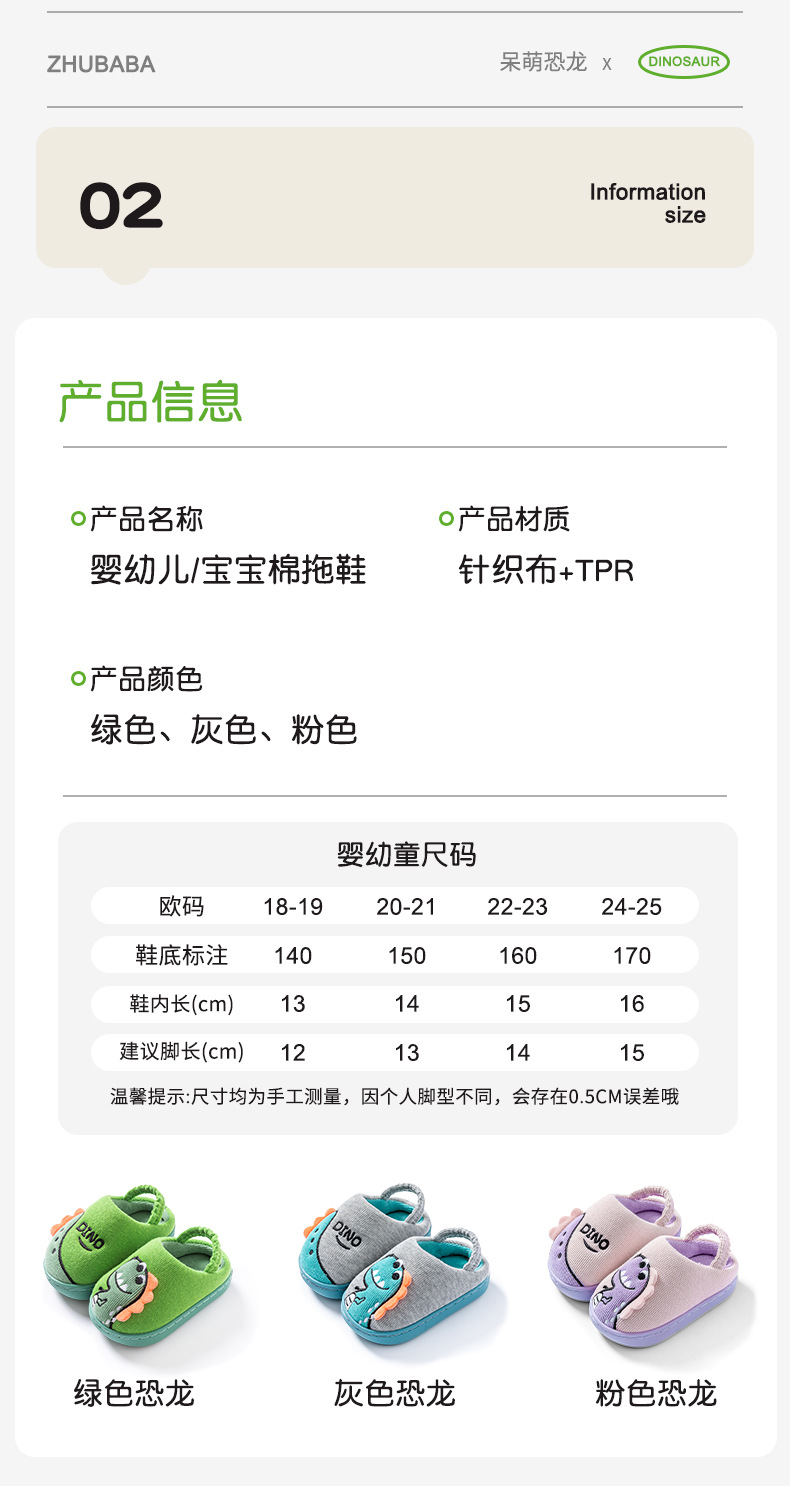 Детские хлопчатобумажные тапочки зимние мужские и женские детские мультяшные динозавры теплые и утолщенные детские шерстяные тапочки