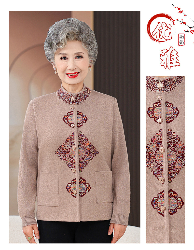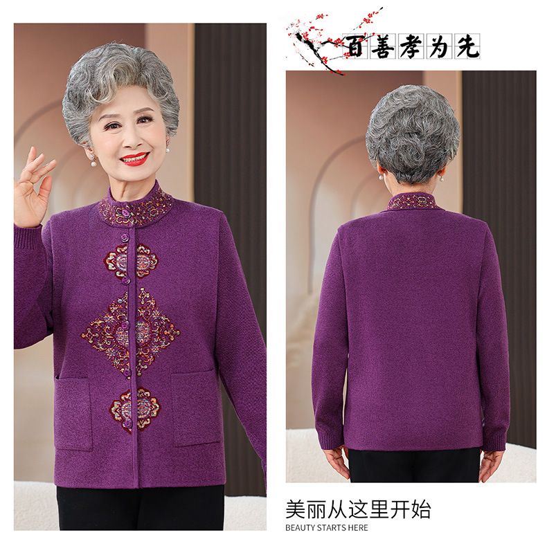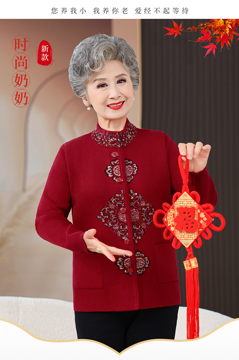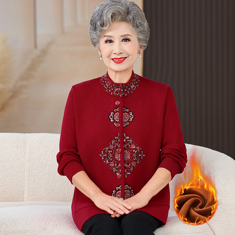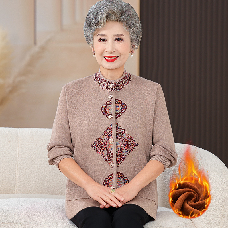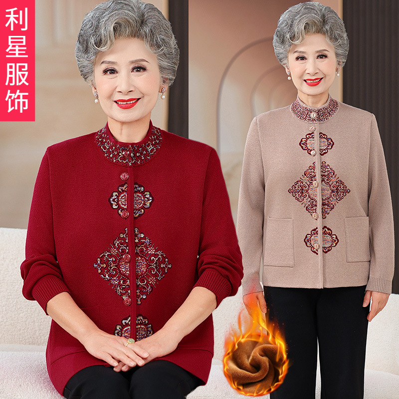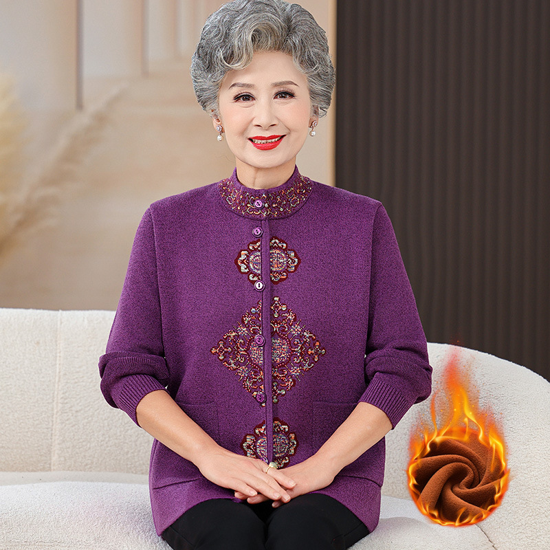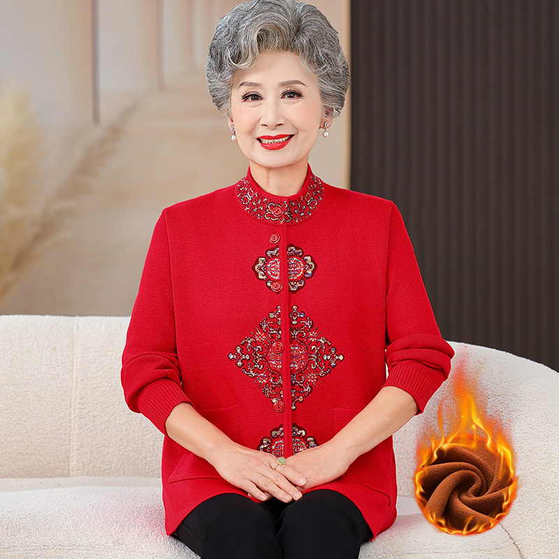 Средний и пожилой женский осенний и зимний свитер плюс бархатный толстый бабушкин костюм танг бархат мама вязаный кардиган куртка