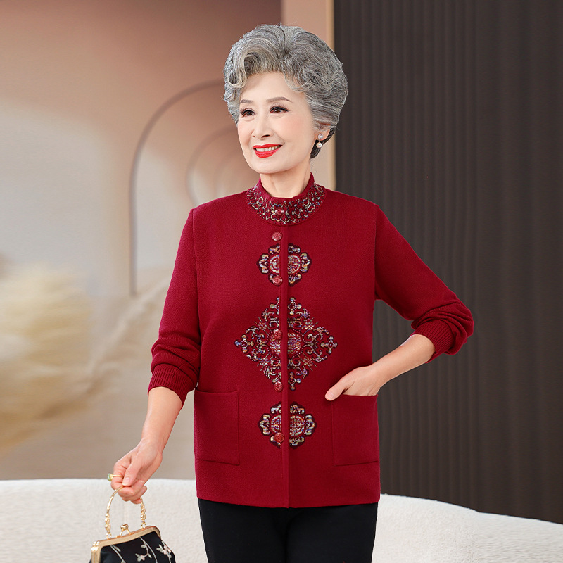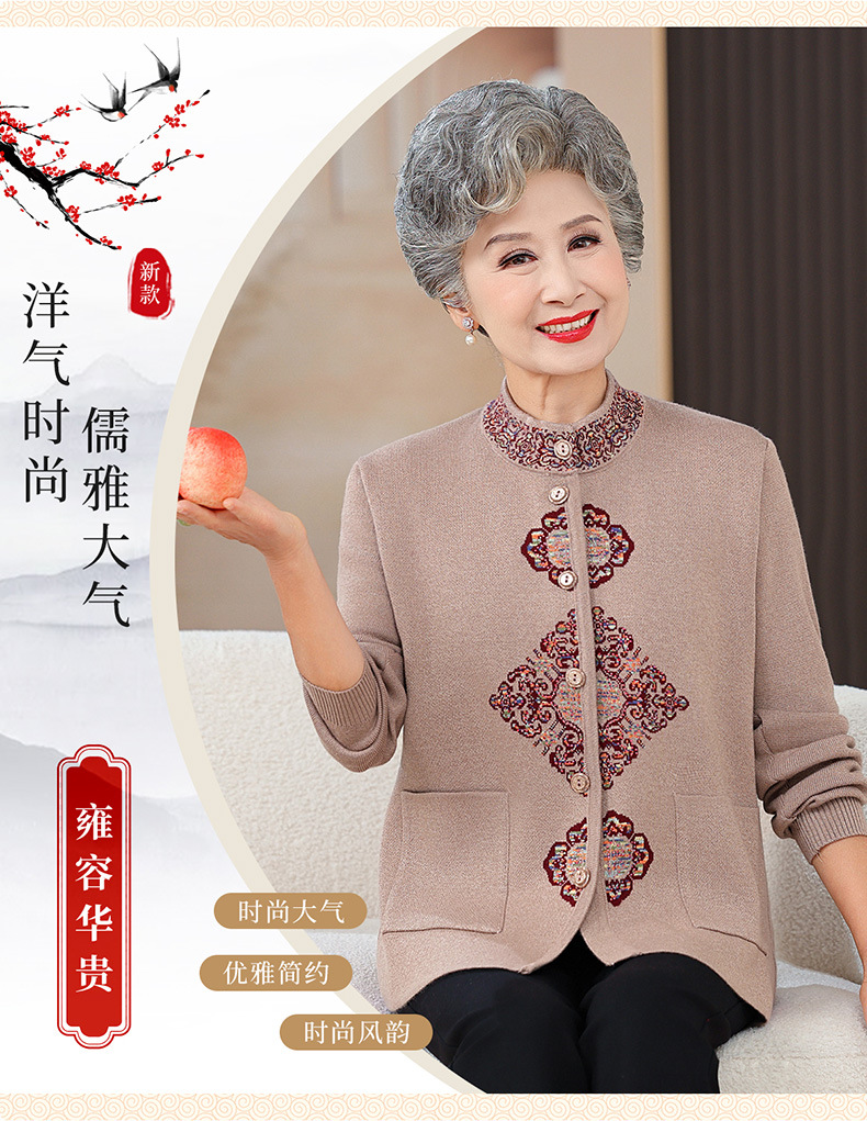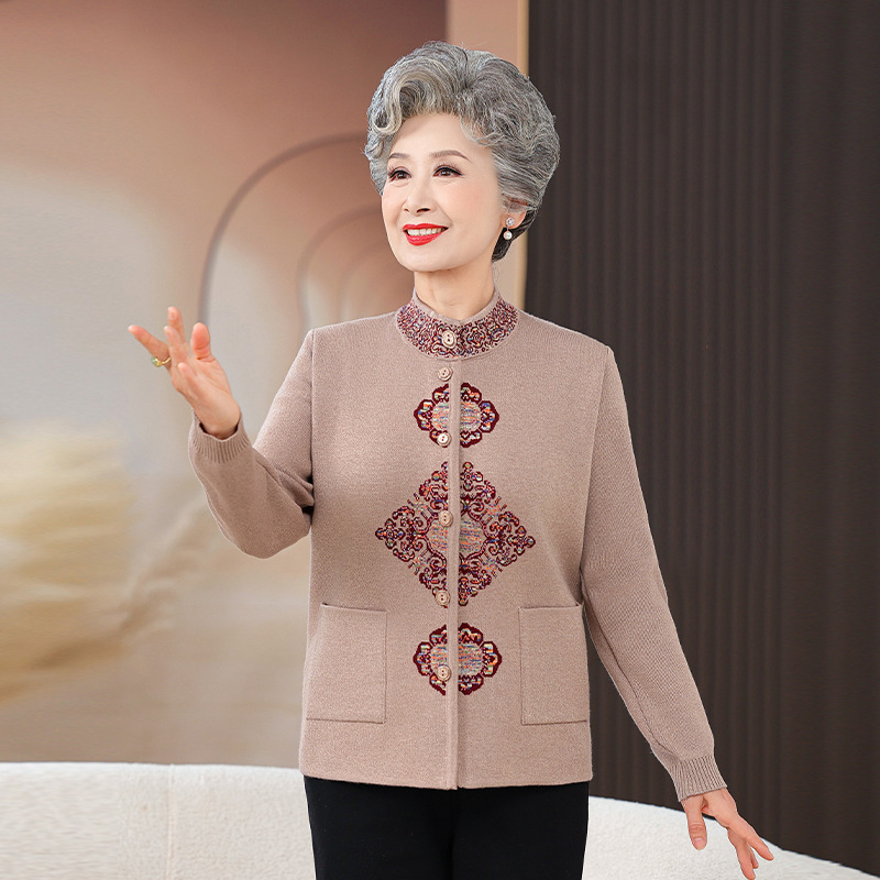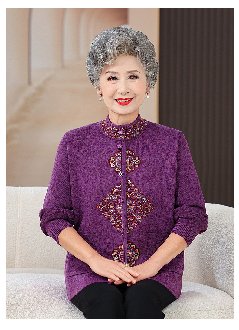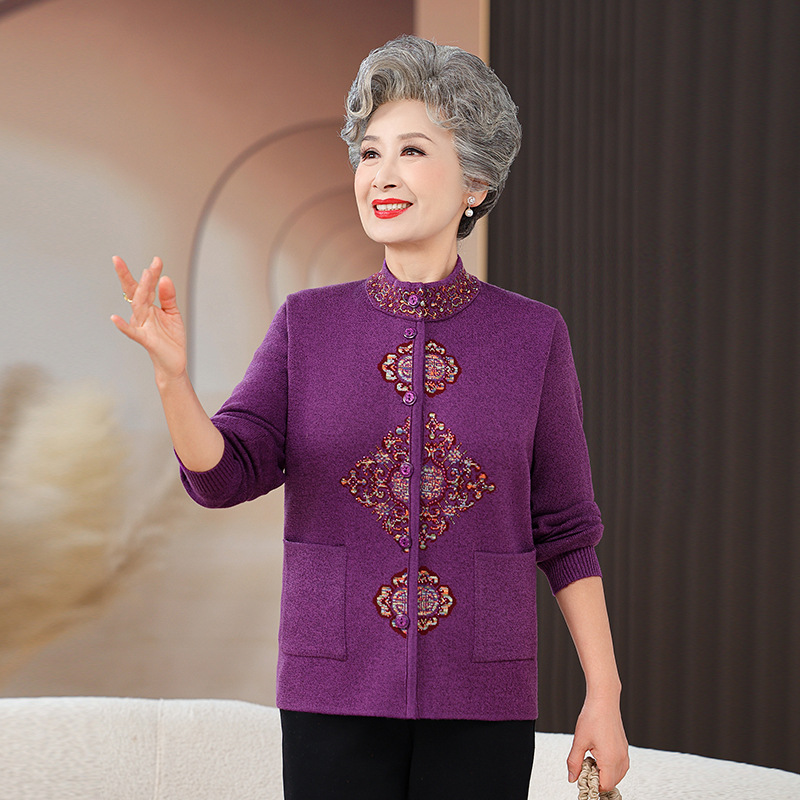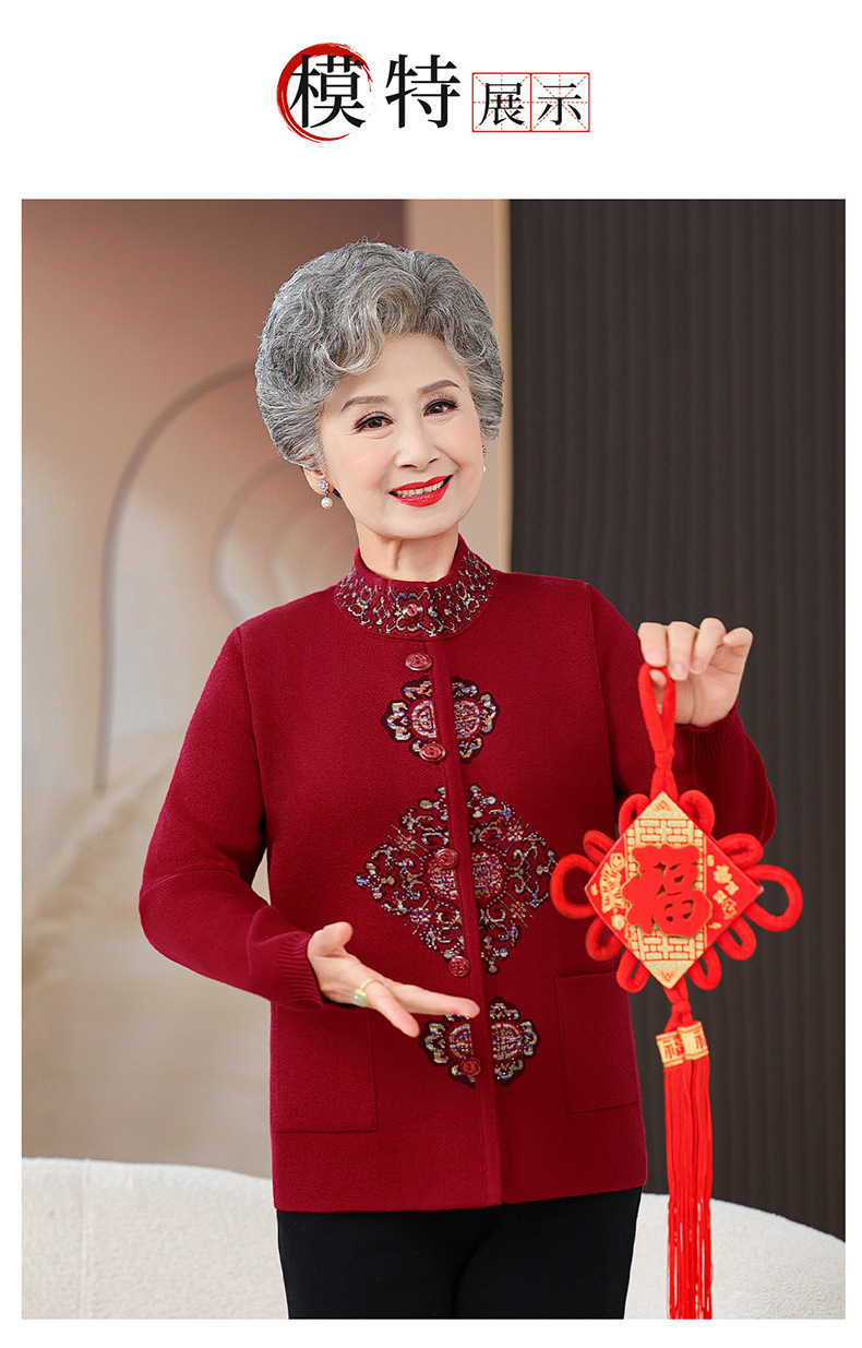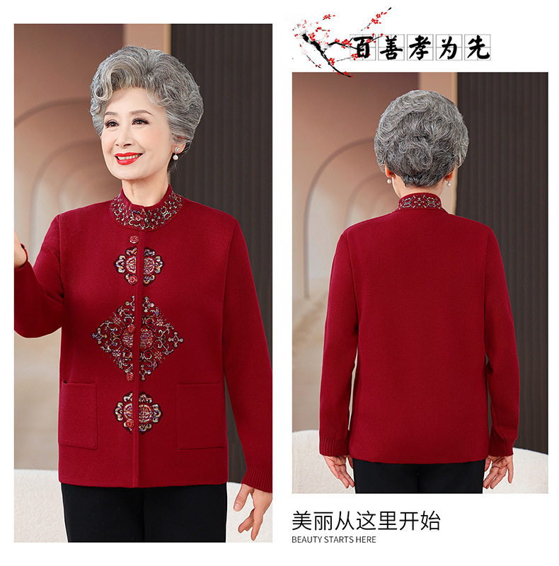 Средний и пожилой женский осенний и зимний свитер плюс бархатный толстый бабушкин костюм танг бархат мама вязаный кардиган куртка