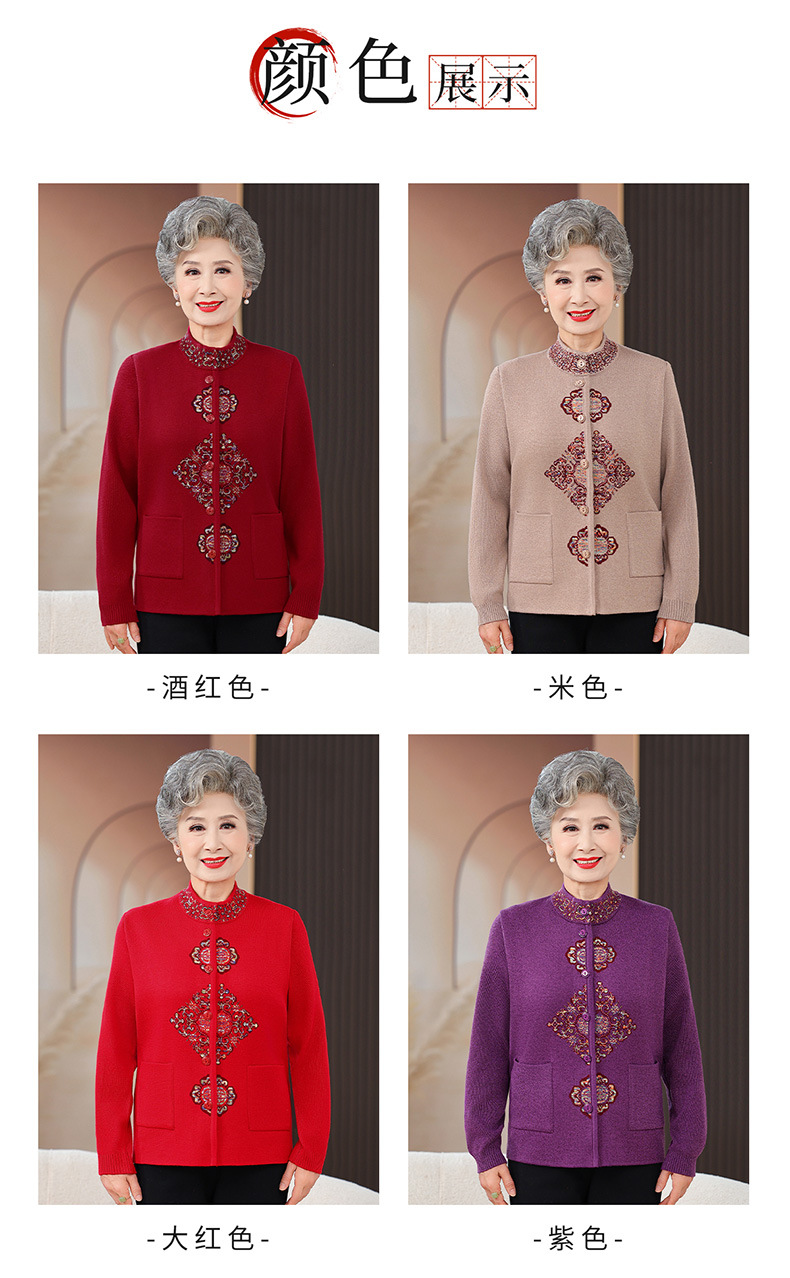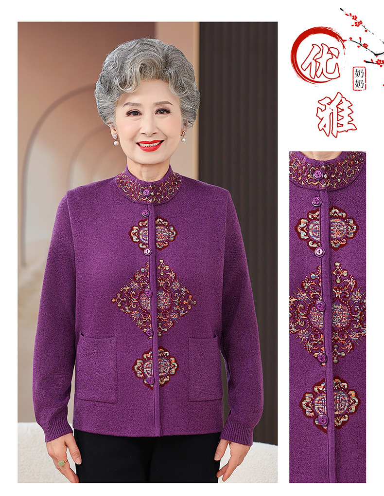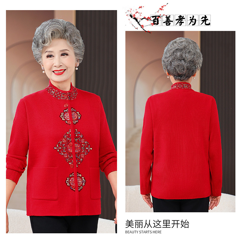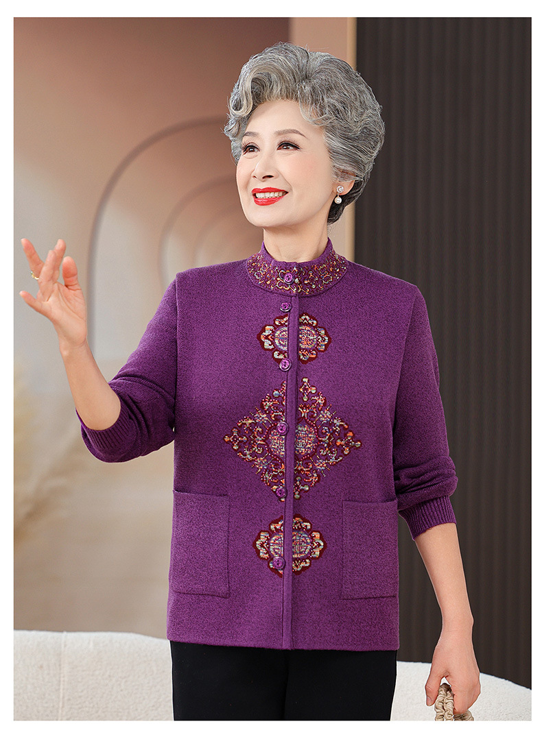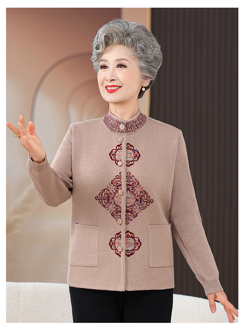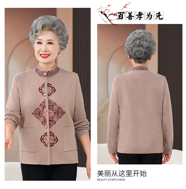 Средний и пожилой женский осенний и зимний свитер плюс бархатный толстый бабушкин костюм танг бархат мама вязаный кардиган куртка