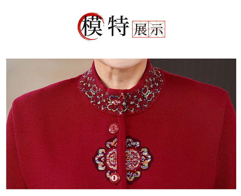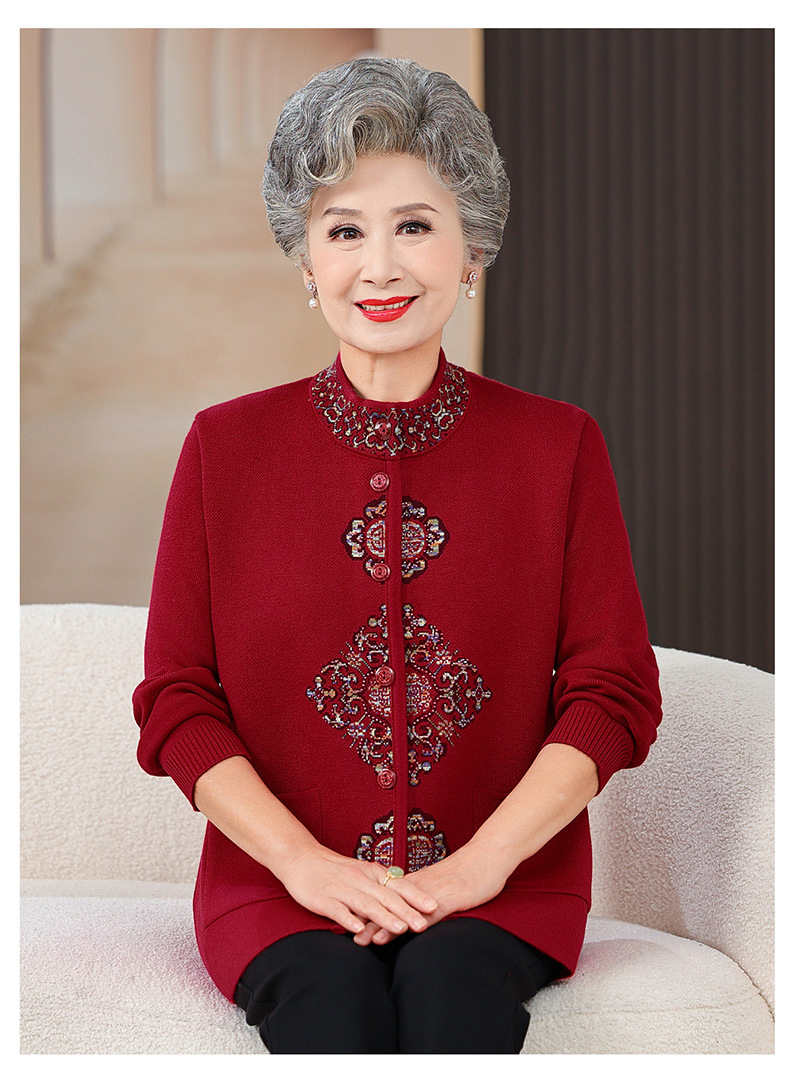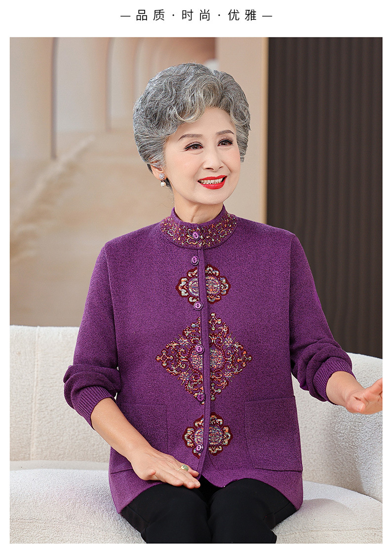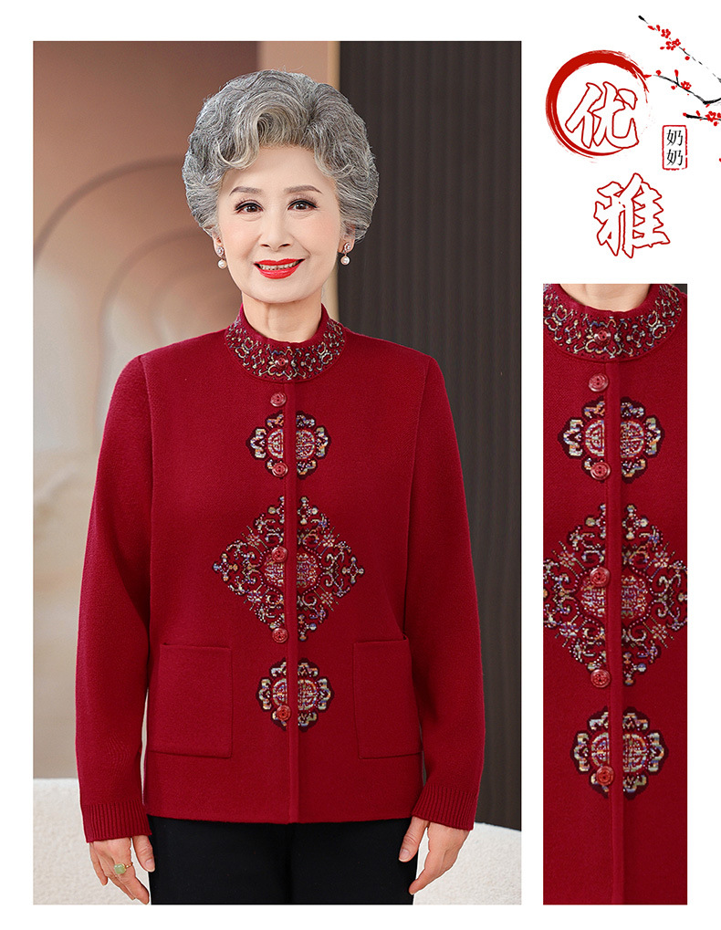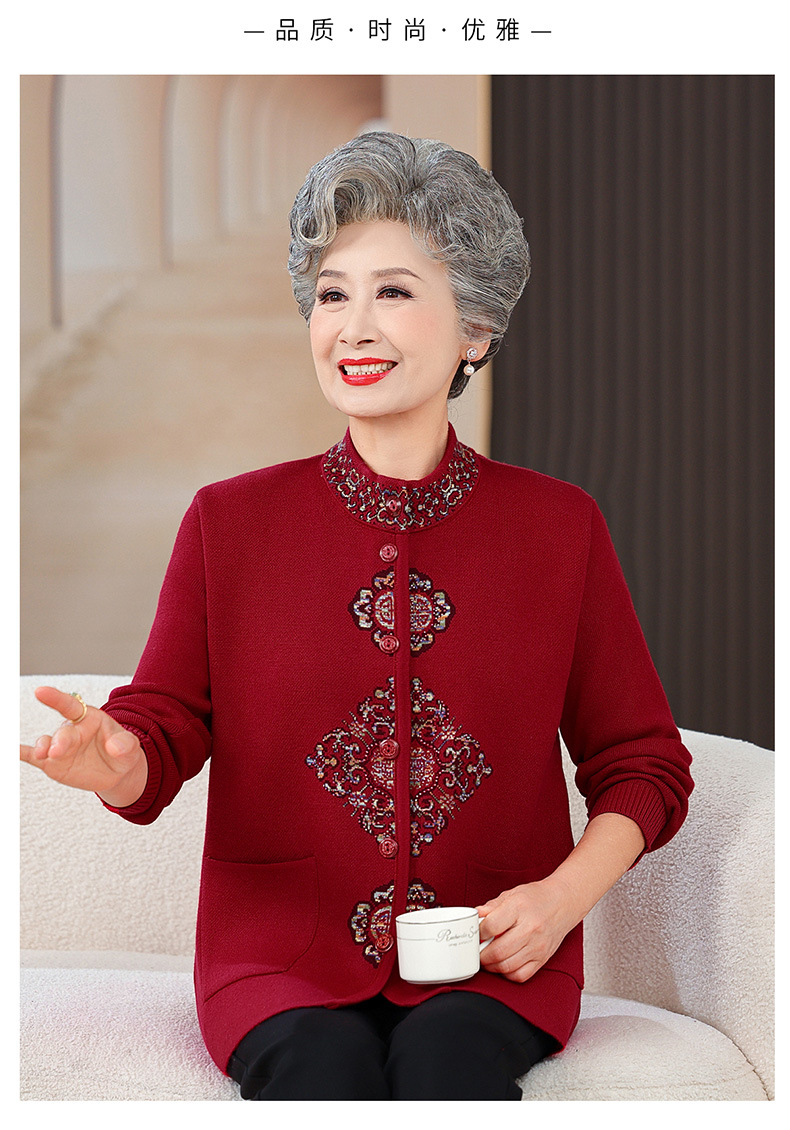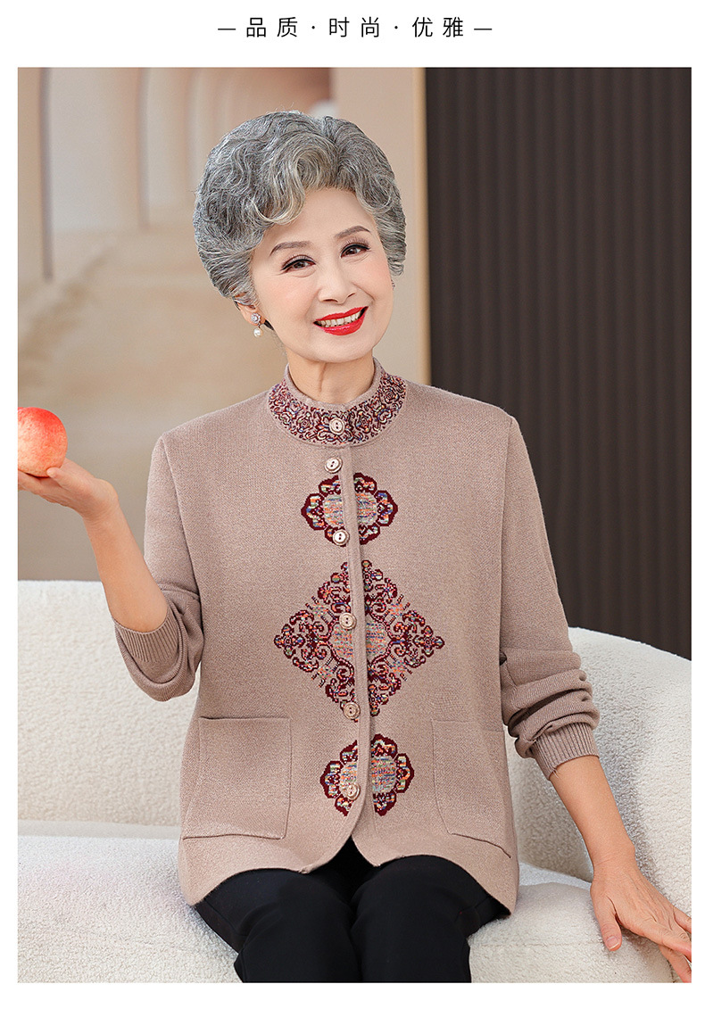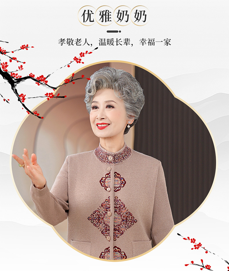 Средний и пожилой женский осенний и зимний свитер плюс бархатный толстый бабушкин костюм танг бархат мама вязаный кардиган куртка