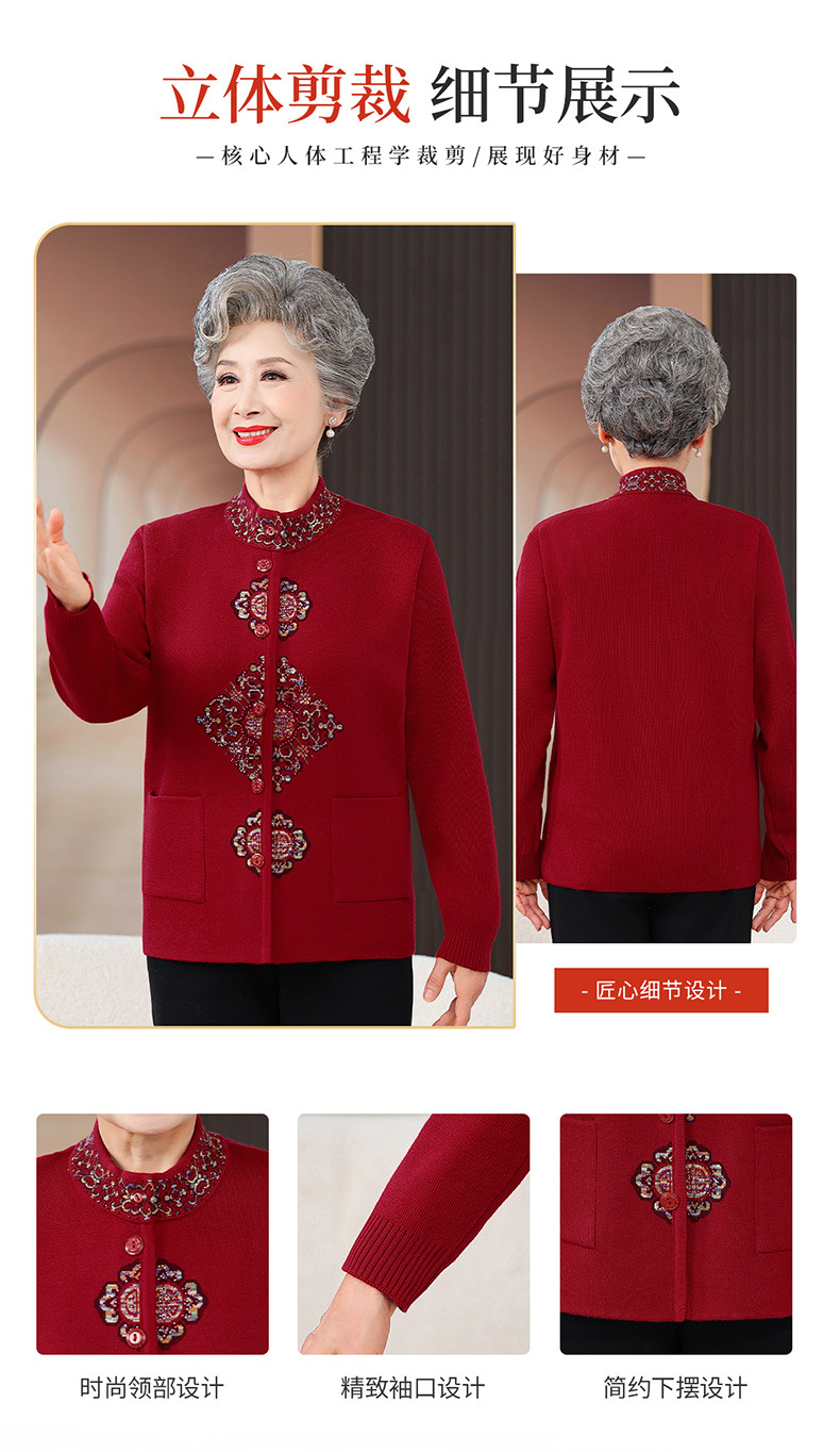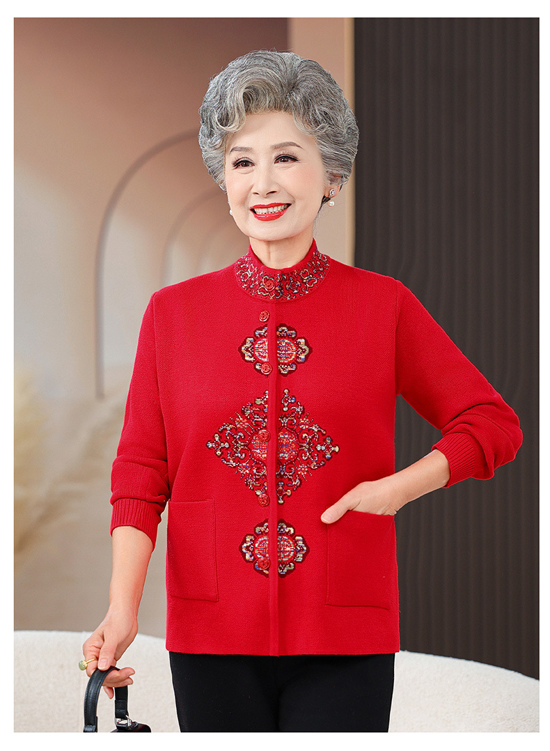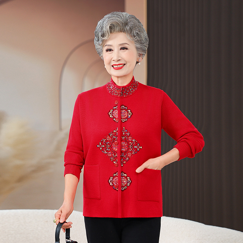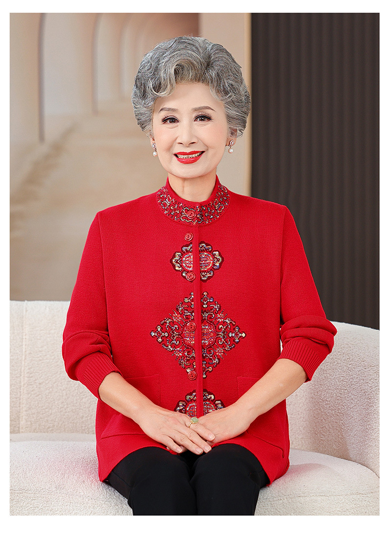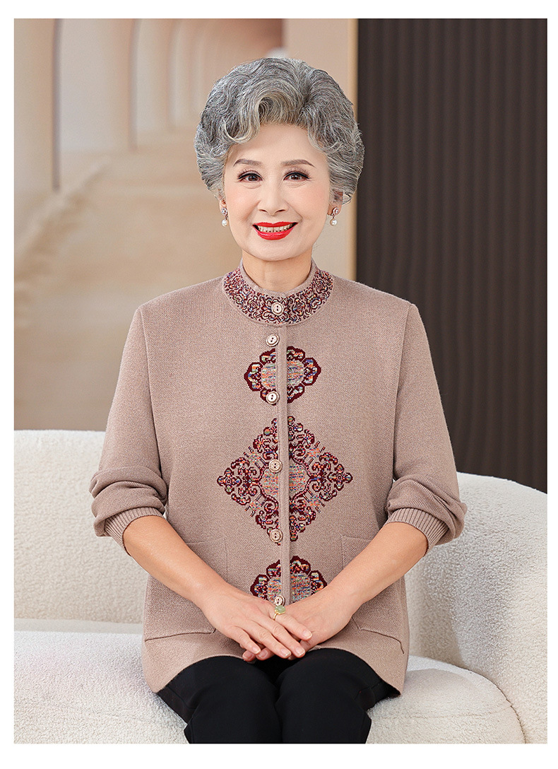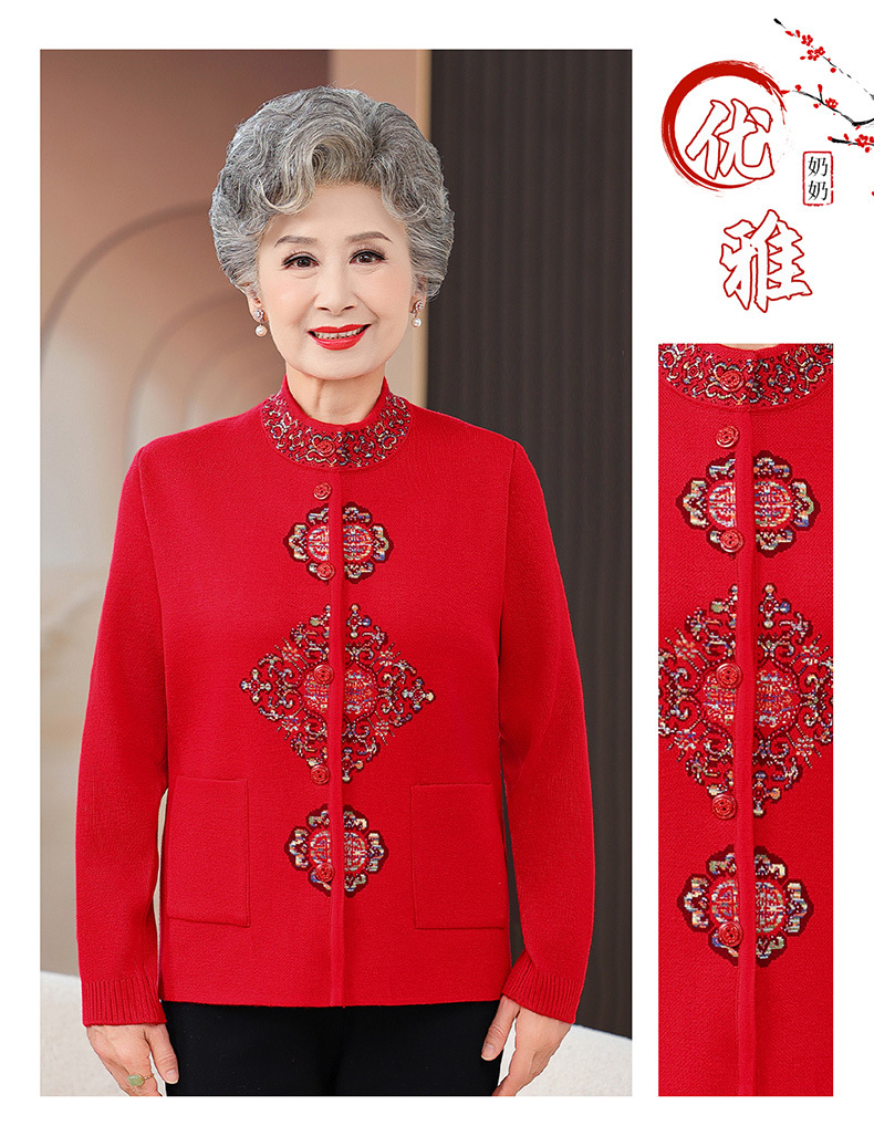 Средний и пожилой женский осенний и зимний свитер плюс бархатный толстый бабушкин костюм танг бархат мама вязаный кардиган куртка