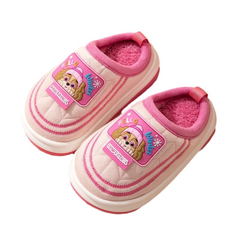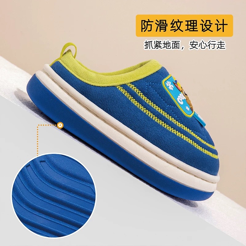 Wangwang Team Детские хлопчатобумажные тапочки для мальчиков мультфильм домашние плюшевые тапочки для девочек нескользящие волосатые детские теплые хлопчатобумажные туфли