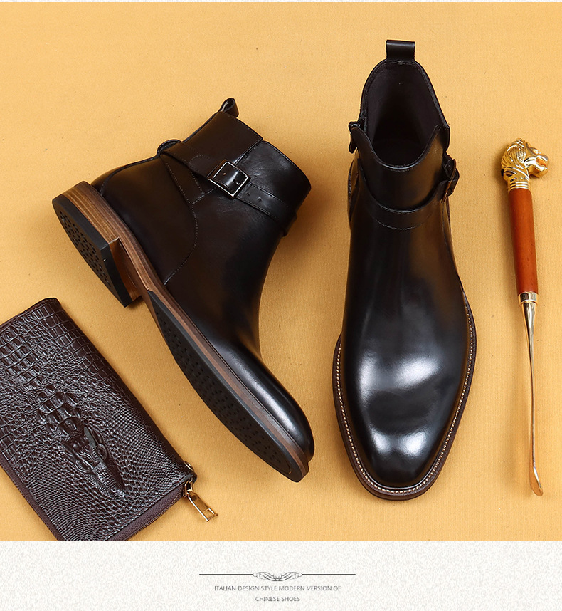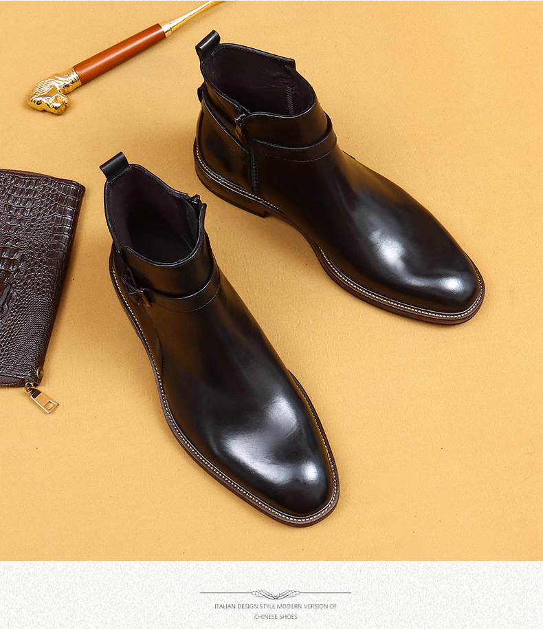 [Vip исключительно] Британские заостренные ботинки челси мужские ботинки зимняя кожаная кожаная внутренняя деловая обувь