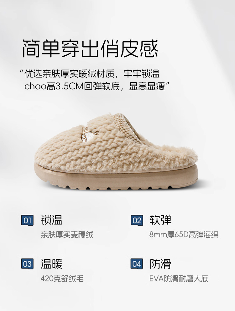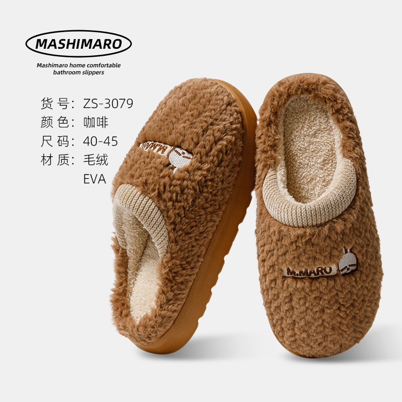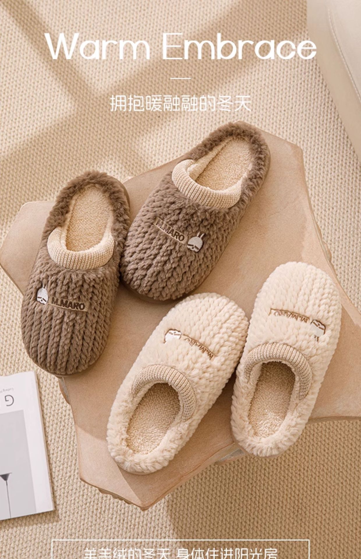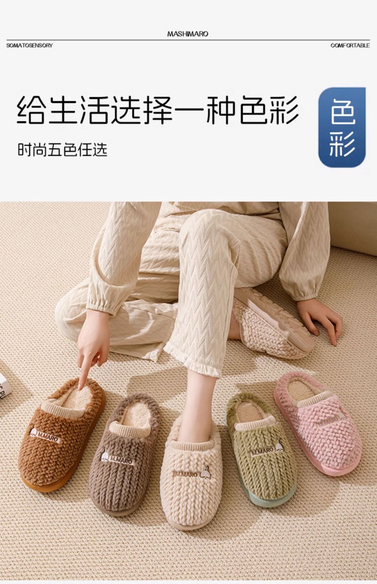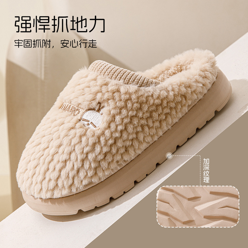 Хулиганские кроличьи хлопчатобумажные тапочки женская осень-зима теплая плюшевая толстая мягкая подошва нескользящая фекалии домашние зимние тапочки мужские