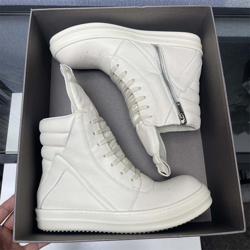 Высокие кроссовки RO с перевернутым треугольным носком, из первосортной телячьей кожи, с молочно-бежевой подошвой, увеличивающей рост, повседневные высокие кроссовки для пар, модные, увеличивающие рост.
