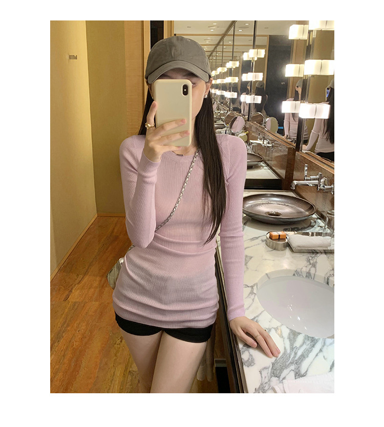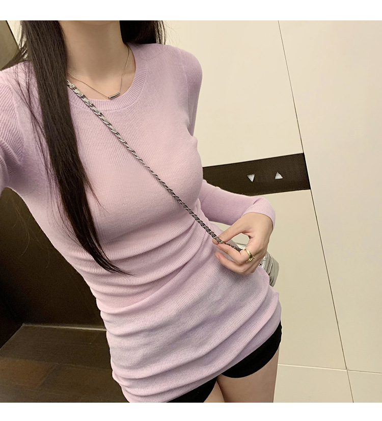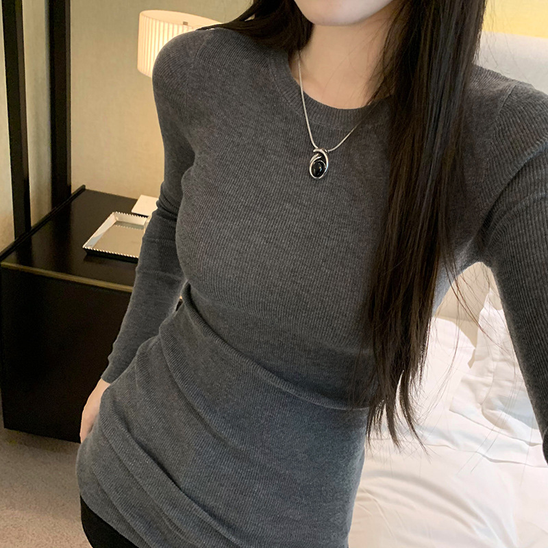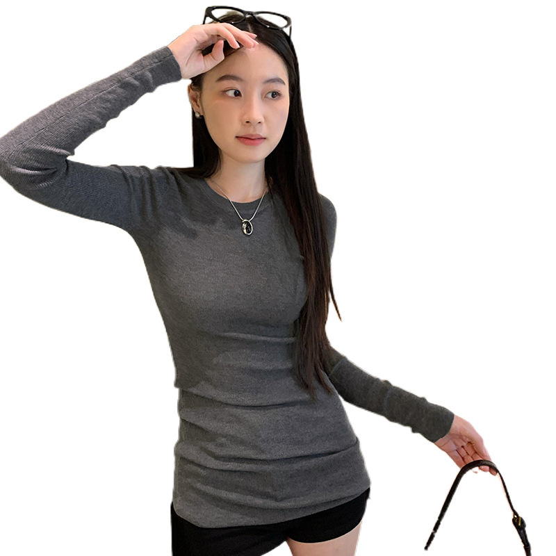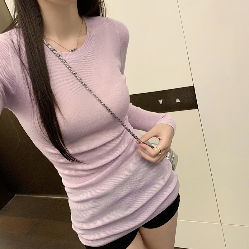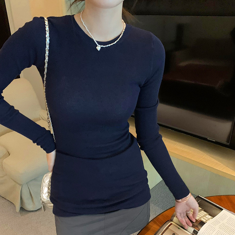 Скидка ленивый ветер среднего и длинного плеча тонкий шерстяной трикотаж женский ранняя осень новый корейский внутренний топ