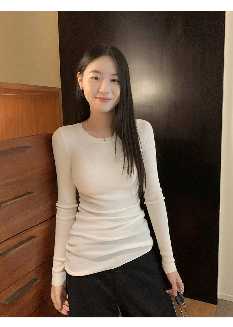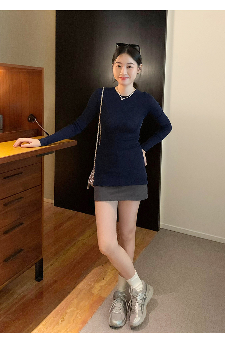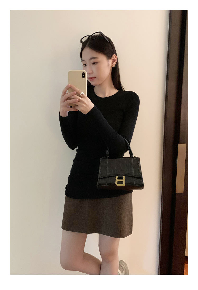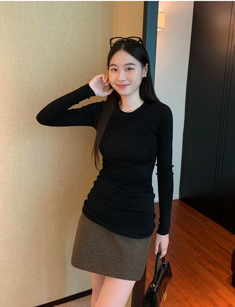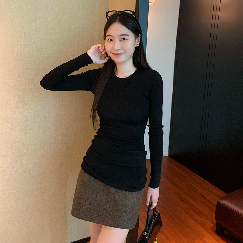 Скидка ленивый ветер среднего и длинного плеча тонкий шерстяной трикотаж женский ранняя осень новый корейский внутренний топ