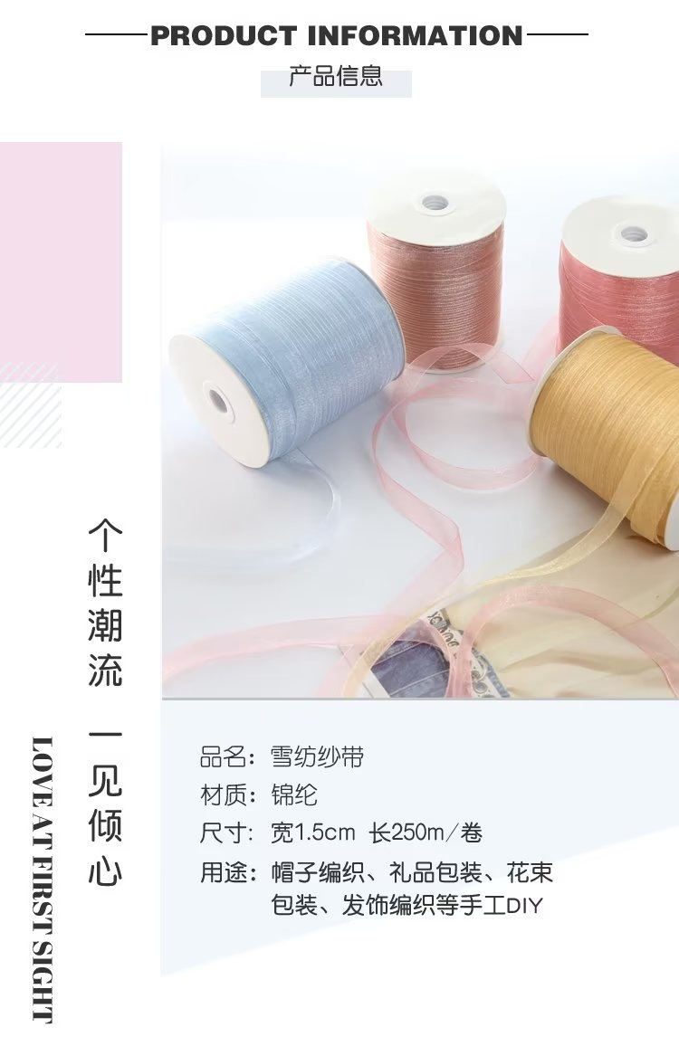 1.5cmDIY крючок шапка лента прозрачный декоративный бант снежная лента плетеная шапка для аксессуаров для волос большой рулон ленты