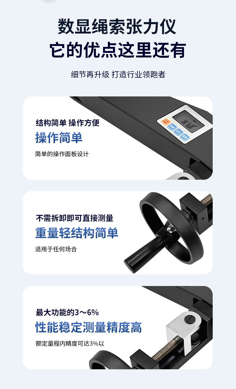 DSF-20 (2 тонны/20 кН) измеритель натяжения стального троса; DSF-50 (5 тонн/50 кН) измеритель натяжения стального троса; DSF-100 (10 тонн/100 кН) измеритель натяжения стального троса; DSF-200 (20 тонн/200 кН) измеритель натяжения стального троса; DSF--50S (подходит для медной многожильной проволоки); DSF-50Z (подходит для стального троса); Диаметр провода DSF-3000N Φ6 мм; Диаметр провода DSF-3000N Φ8 мм; Диаметр провода DSF--3000N Φ10 мм; Диаметр провода DSF-5000N Φ11 мм; Диаметр провода DSF-5000N Φ13 мм; Диаметр провода DSF-5000N Φ16 мм