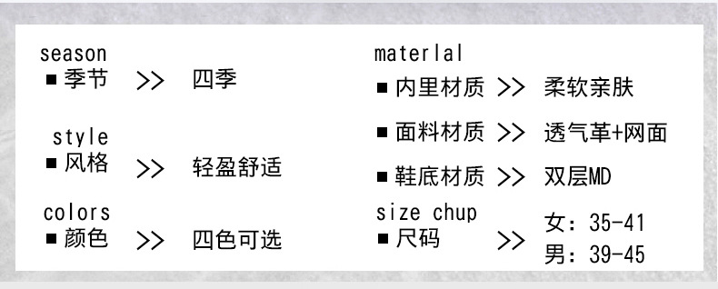 Фиолетовая (женская), легкая амортизация; Черный порошок (женский) амортизация легкий; Черный (мужской), амортизирующий и легкий; Серый (мужской), амортизирующий и легкий.