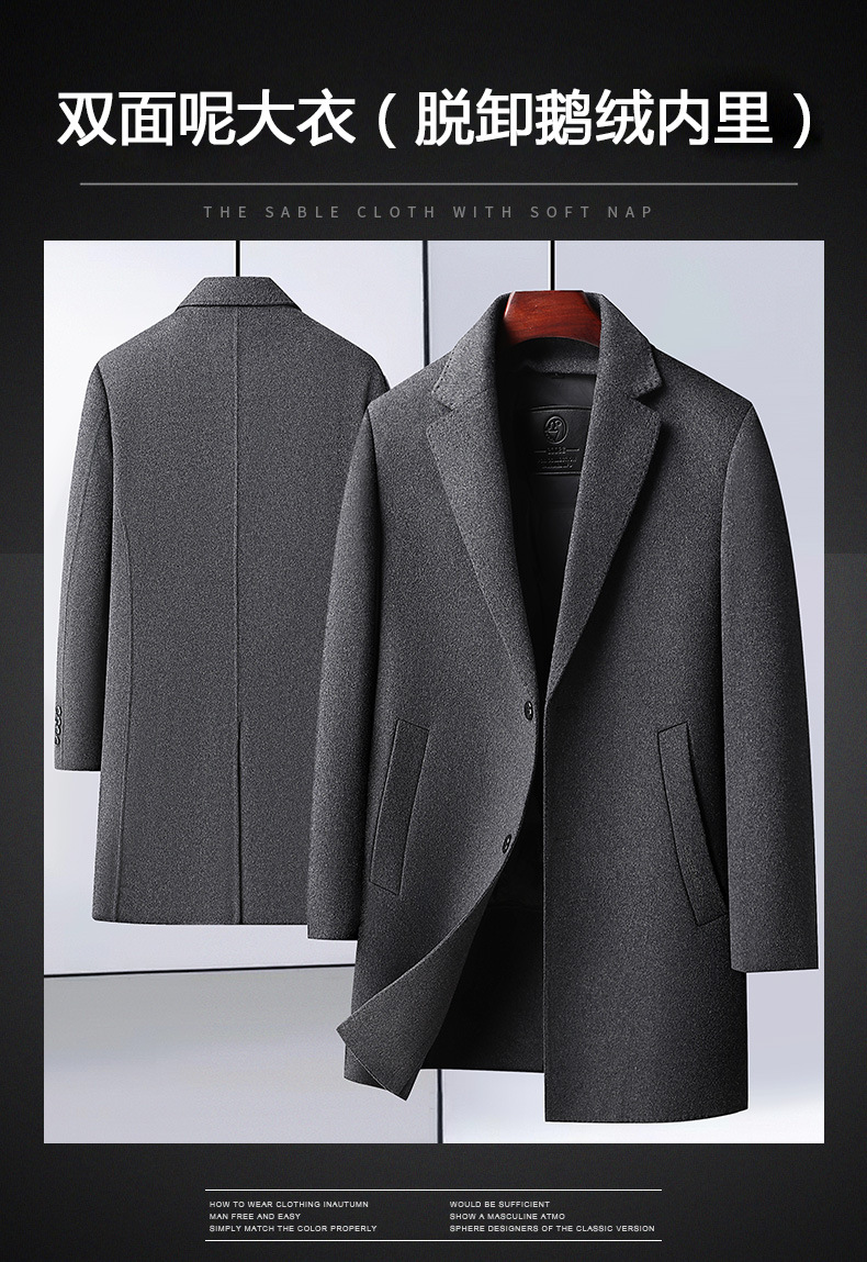 Зимнее новое двухстороннее шерстяное пальто ручной работы мужской средней и длинной однобортный