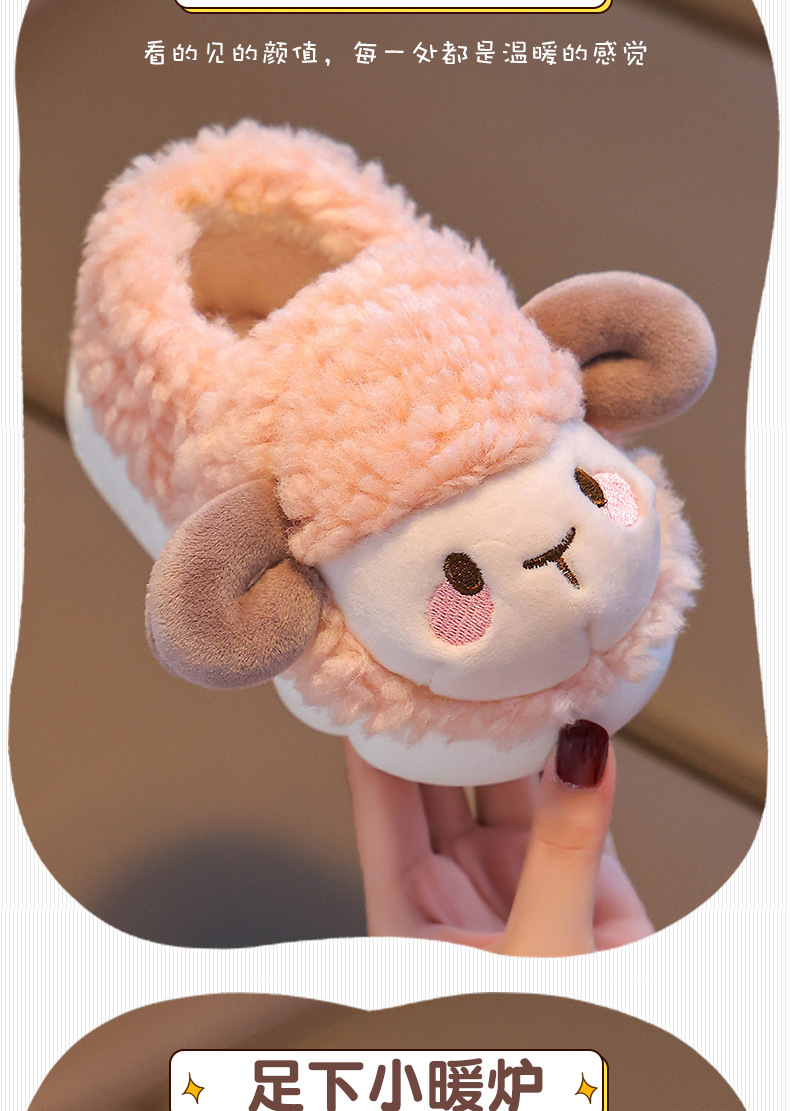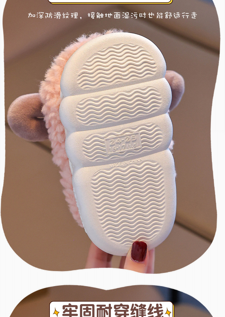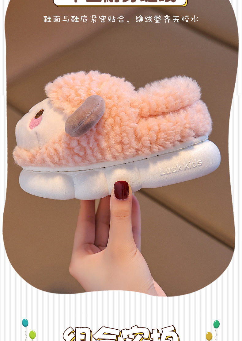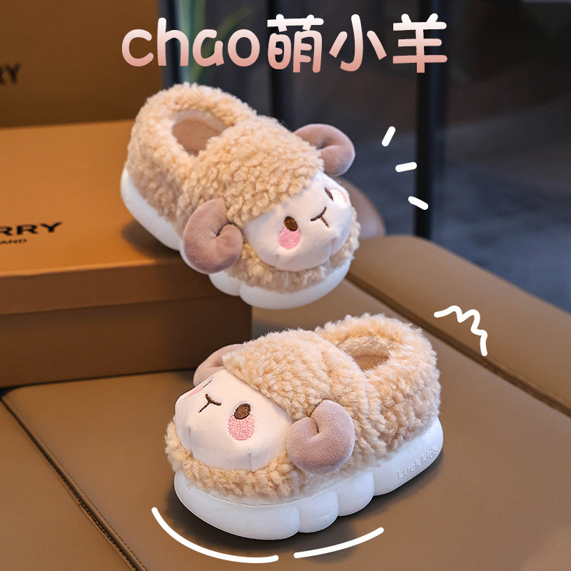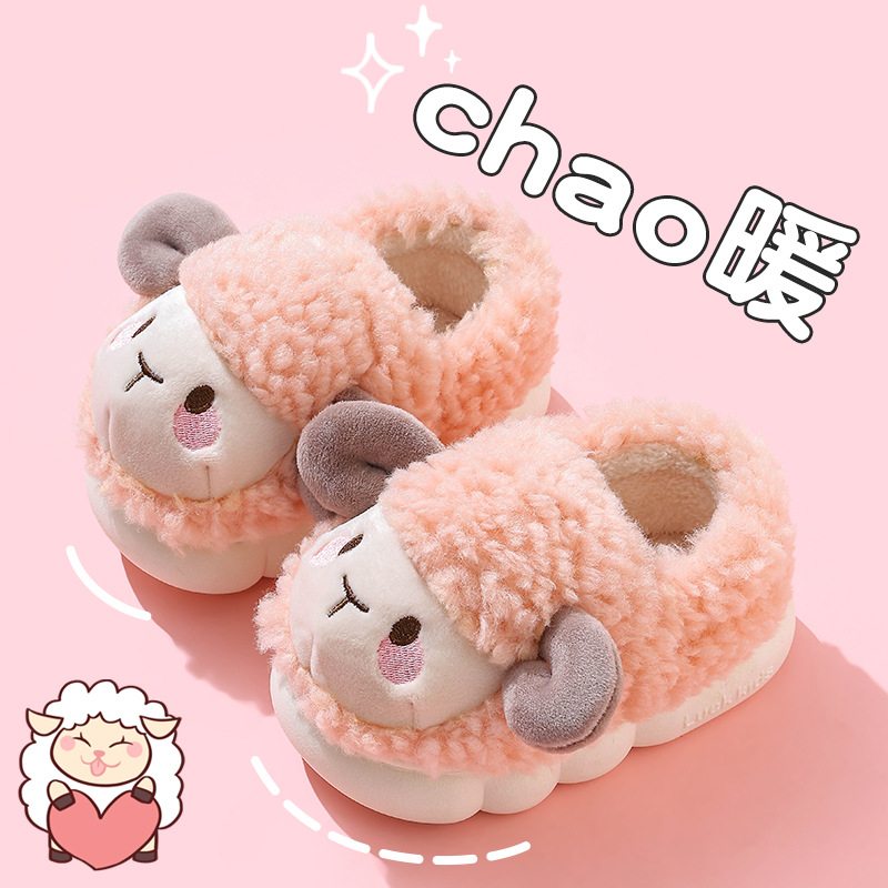 Зимняя хлопковая обувь для девочек и 2024 новые теплые и плюшевые детские хлопчатобумажные тапочки детские нескользящие меховые домашние туфли