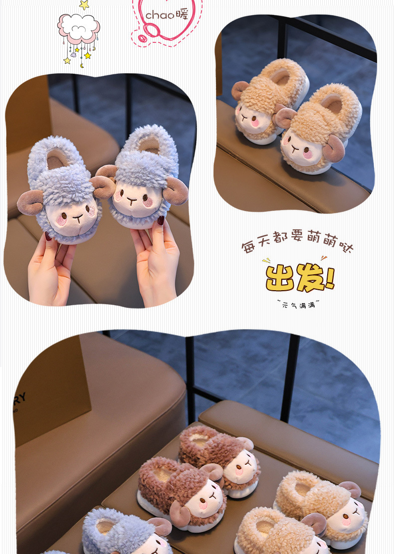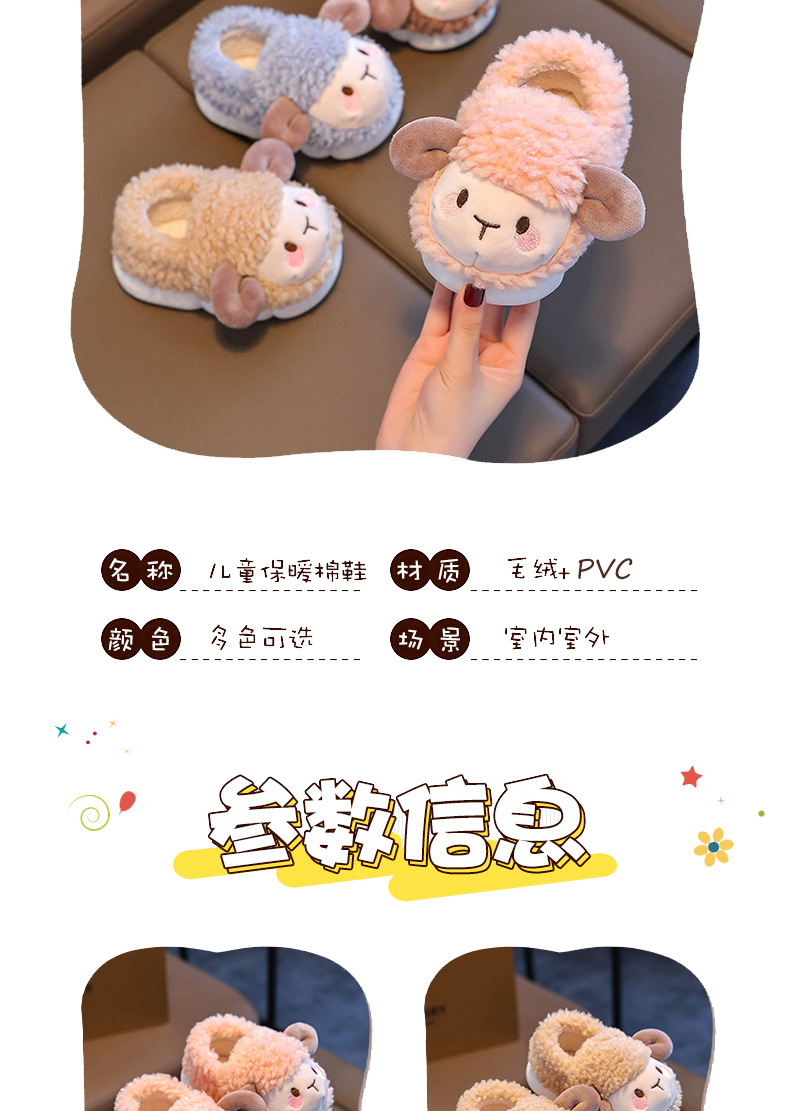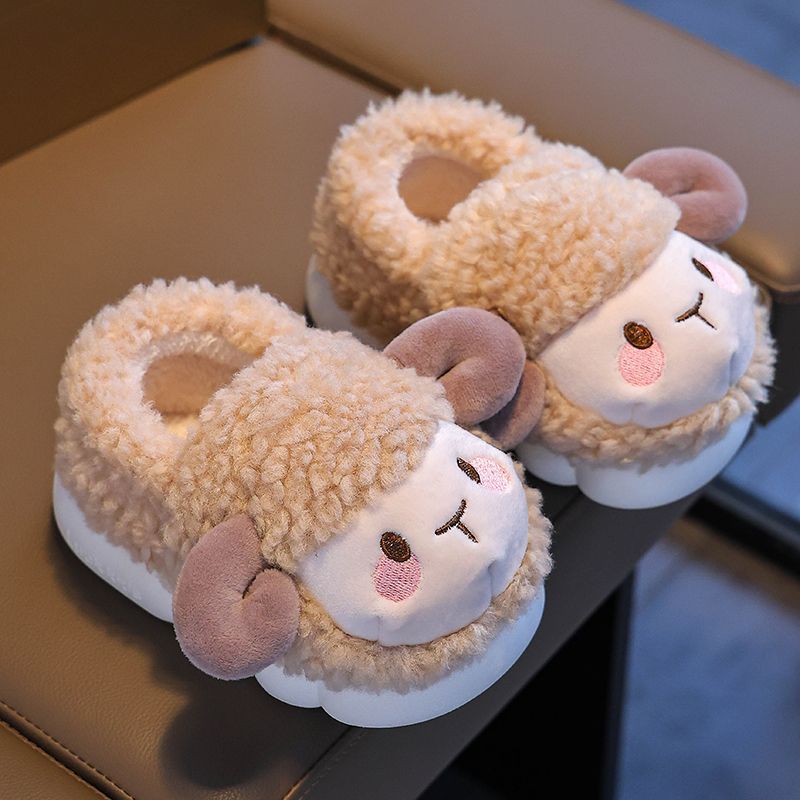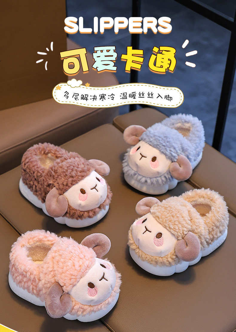 Зимняя хлопковая обувь для девочек и 2024 новые теплые и плюшевые детские хлопчатобумажные тапочки детские нескользящие меховые домашние туфли