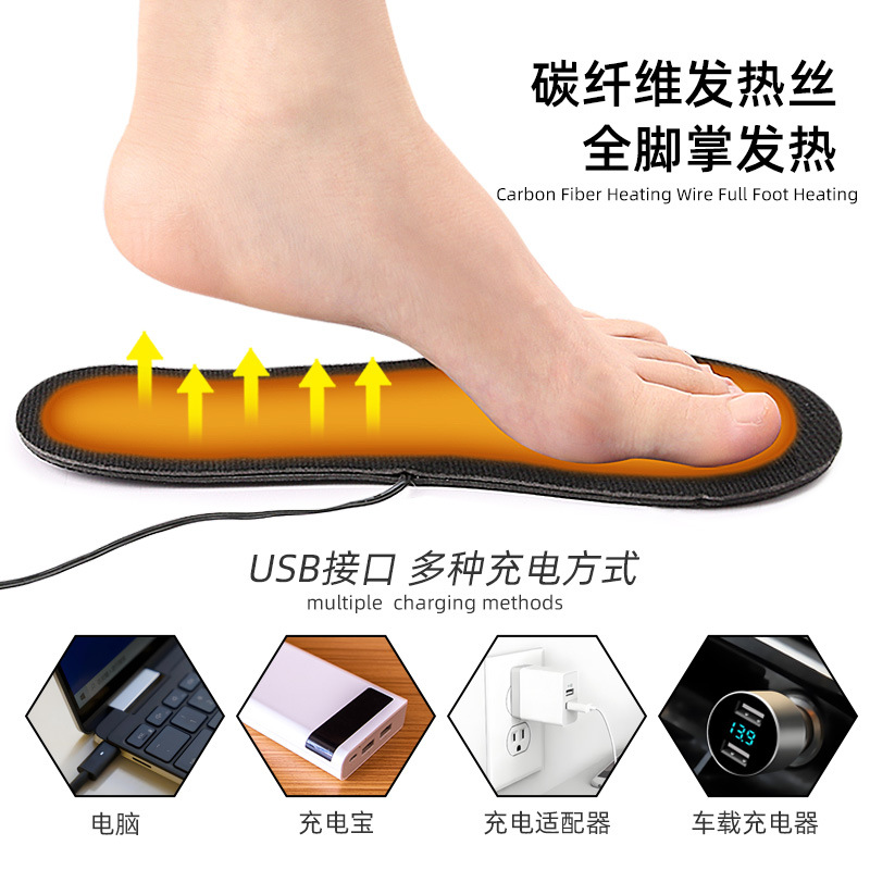 Стельки из ЭВА: теплые, с питанием от USB, регулируемые по размеру, с возможностью подогрева и обрезки, моющиеся горячей водой, унисекс, черные.