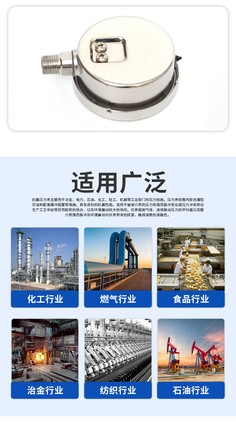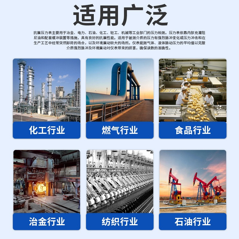 震动、以及突然卸荷场合。克服介质强烈脉冲及环境震动对仪表带来的损害,确
