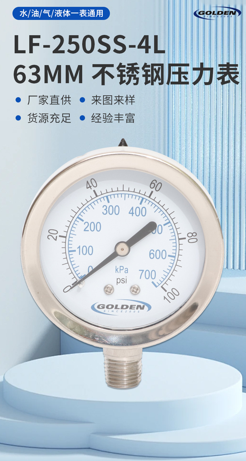 Y63 Манометр из нержавеющей стали 63MM Манометр из нержавеющей стали LF-250SS-4L
