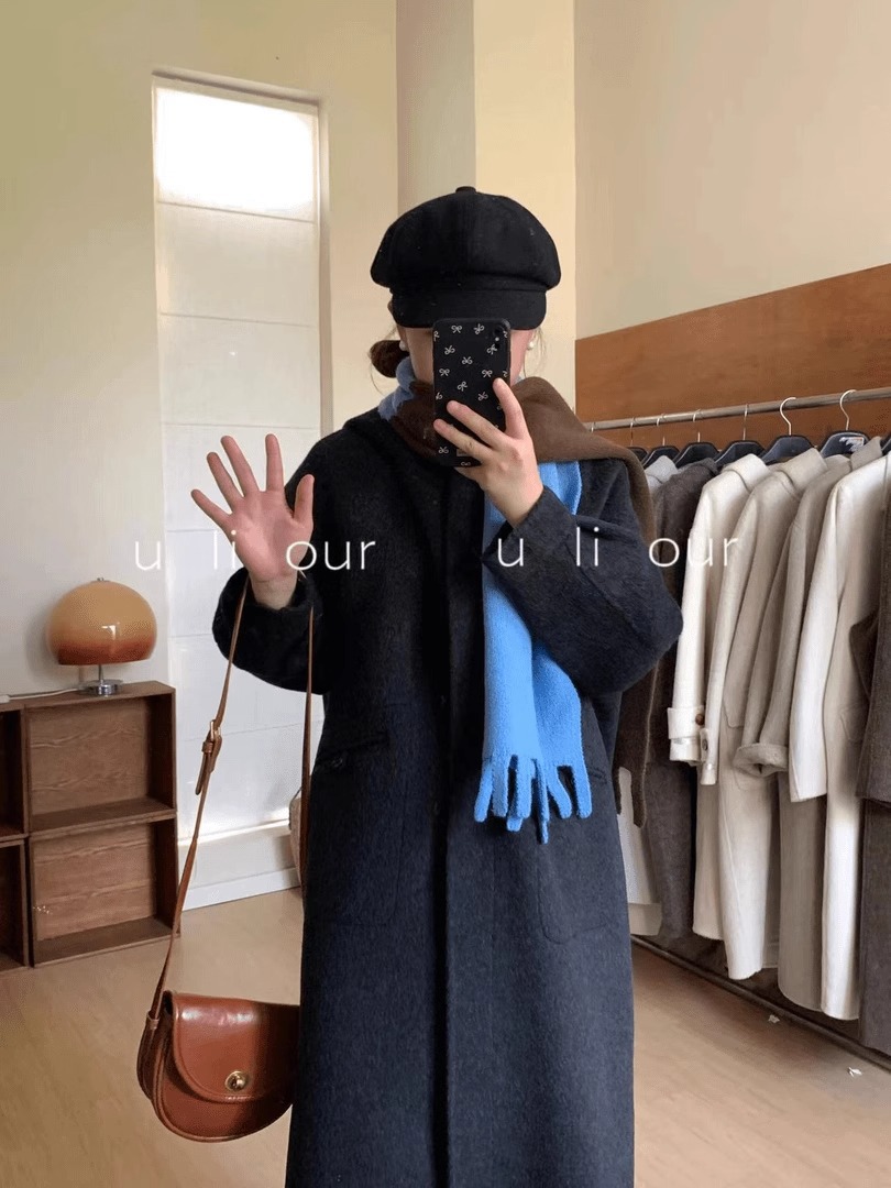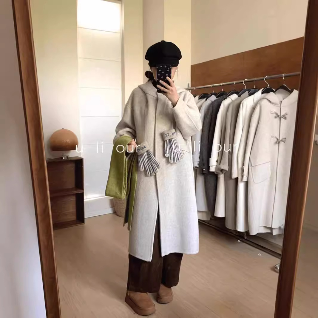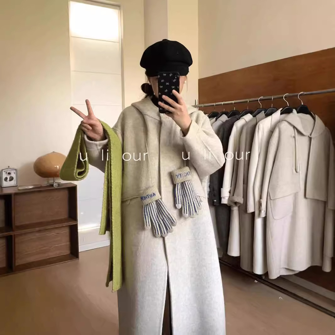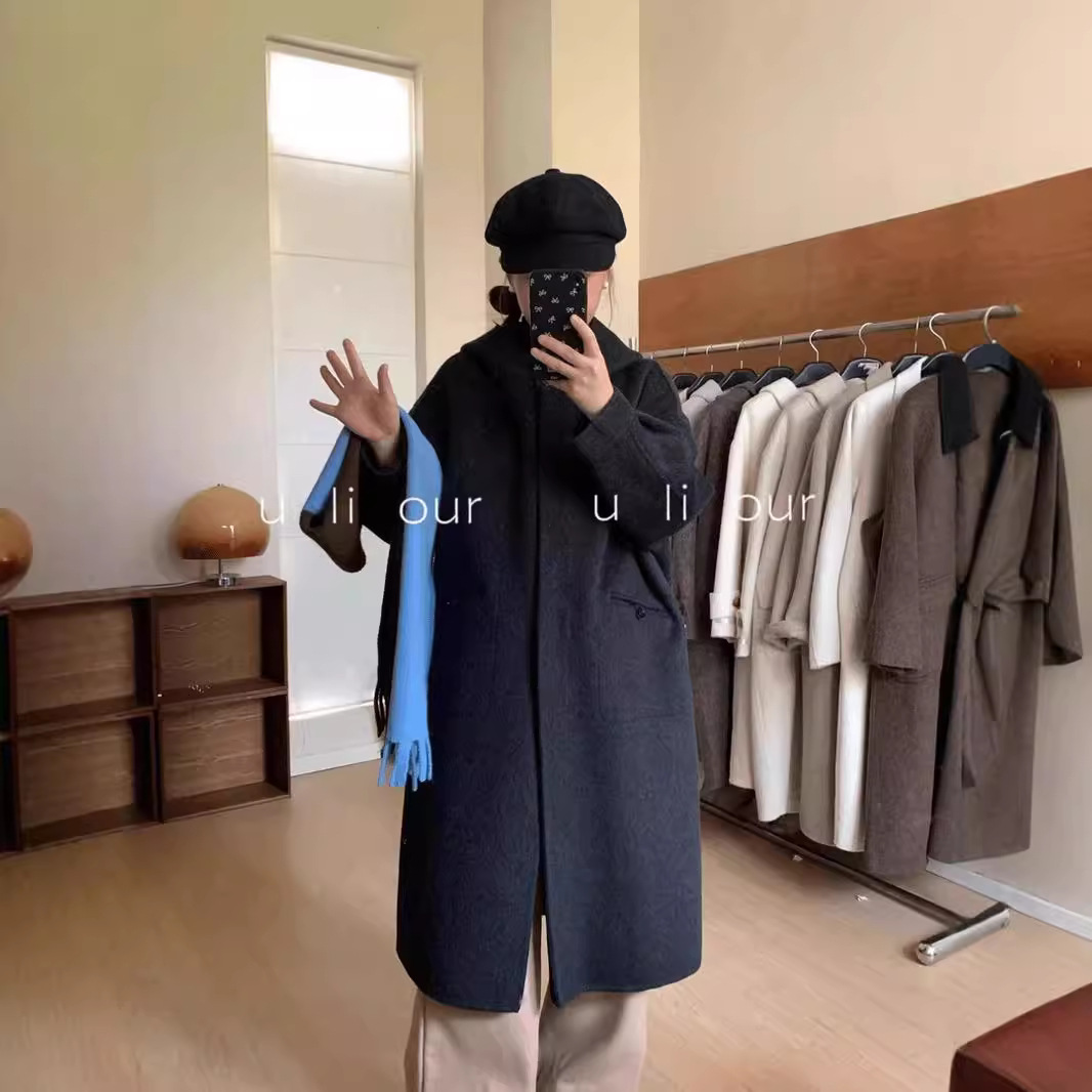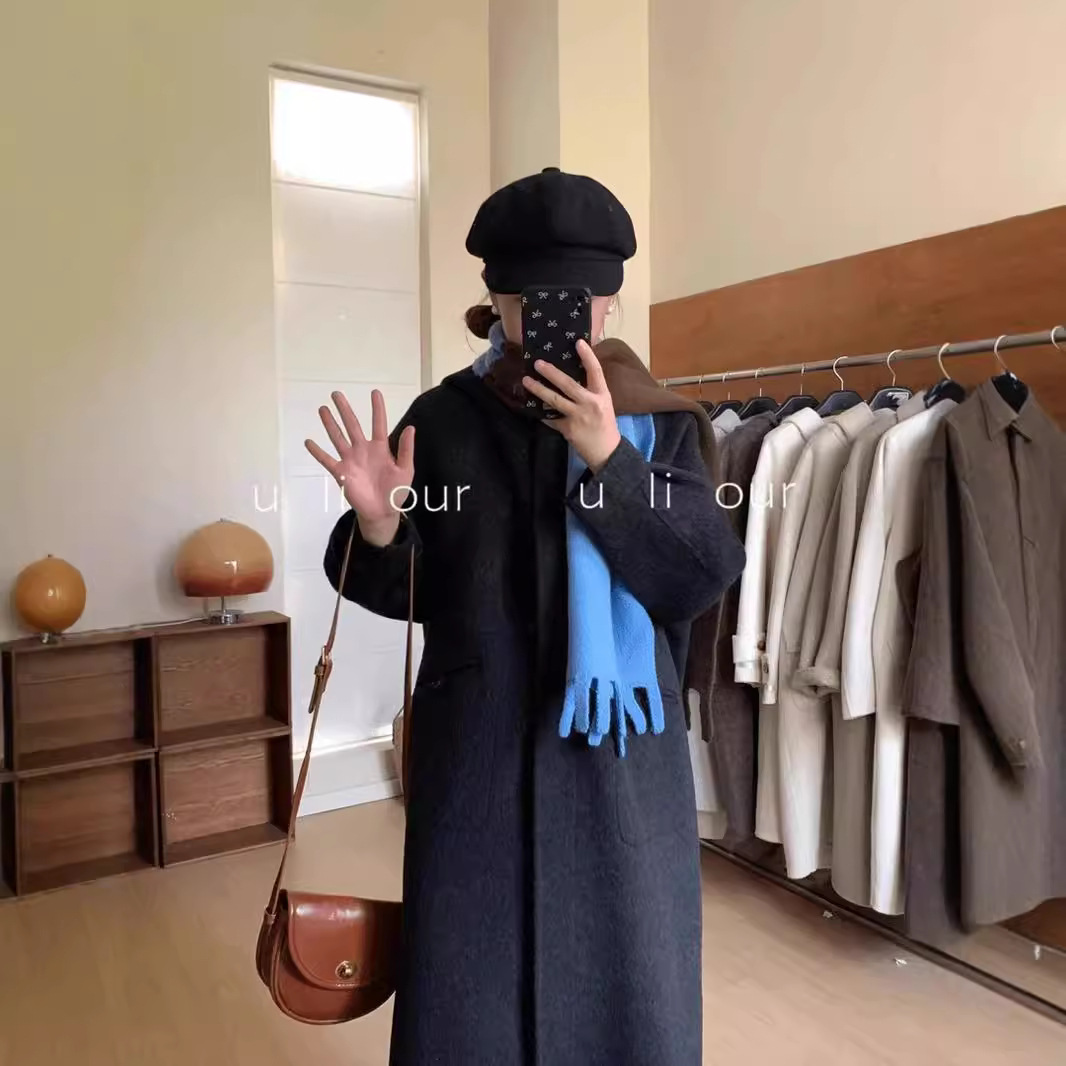 [Bubble Milk] Свободное шерстяное пальто корейское ретро ленивое двухстороное пальто высокого уровня