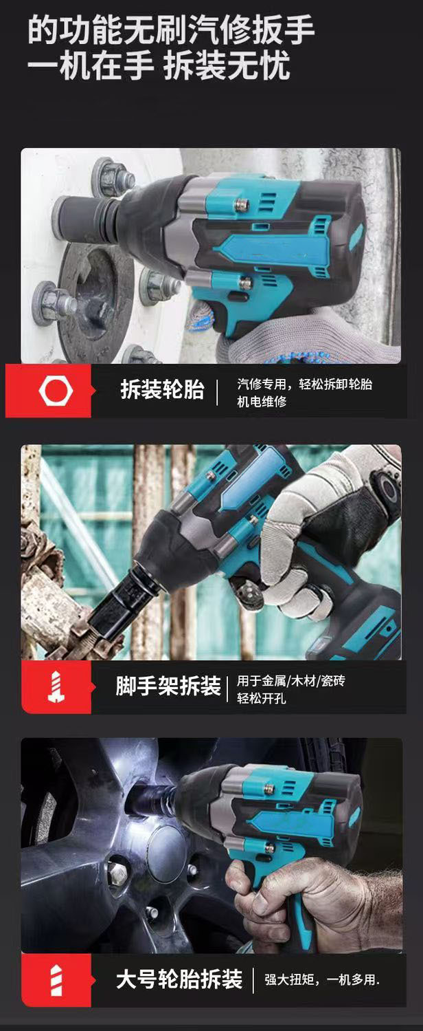 Бесщеточный электрический гайковерт с литиевой батареей, высокомоментный, набор инструментов для дома, ударный, для авторемонта, пневматический пистолет, литиевая батарея