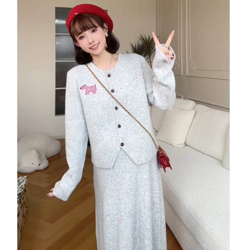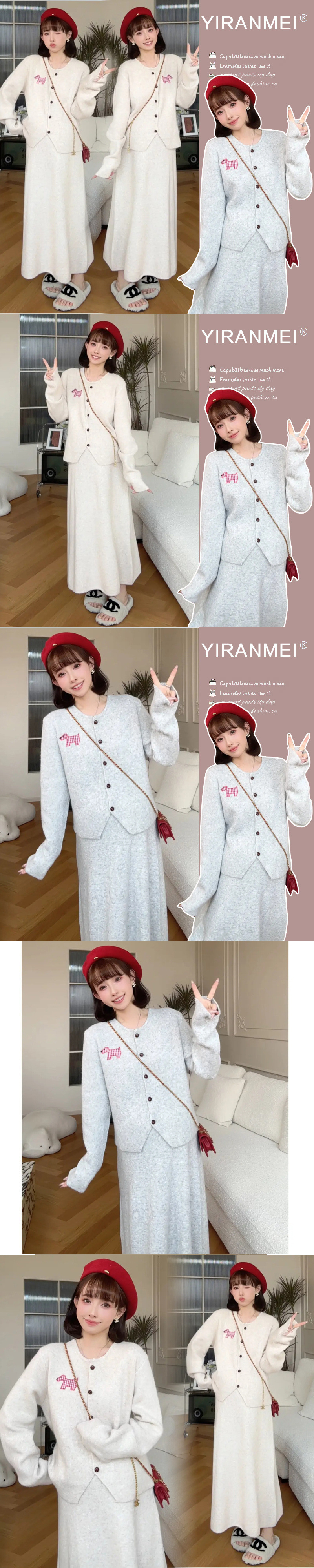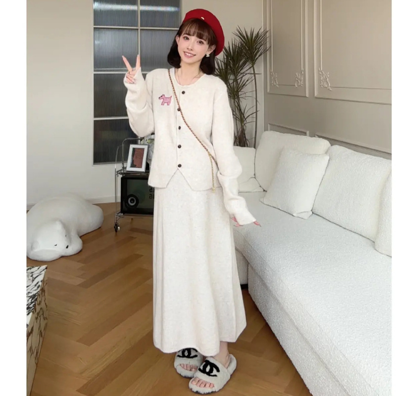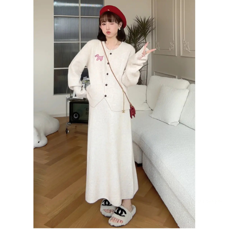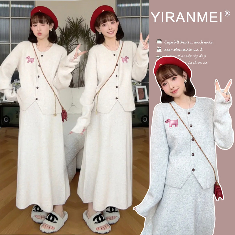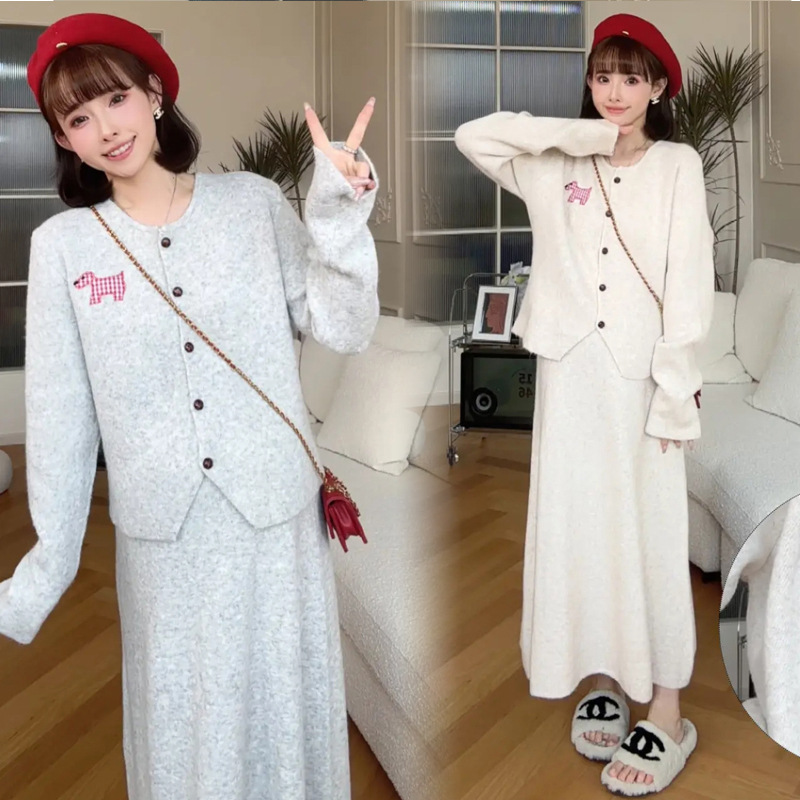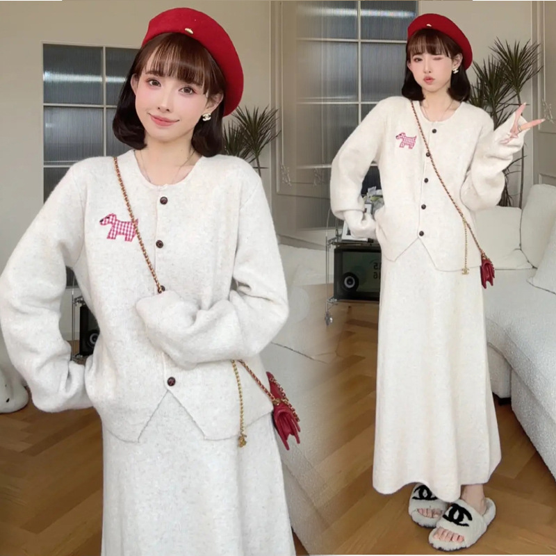 Пятно ~ 2024 интернет-красный тот же пони мода для беременных вязаный свитер полуюбка брюхо регулируемый набор